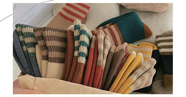 두꺼운 줄무늬 양말 여성용 투투 미드 사이즈 인즈 패셔너블 코튼 가을과 겨울 기모 따뜻한 일본 스타일 빈티지 트릴 양말스토어 가기
