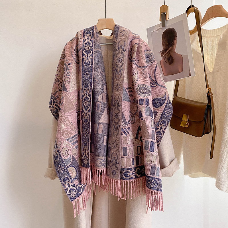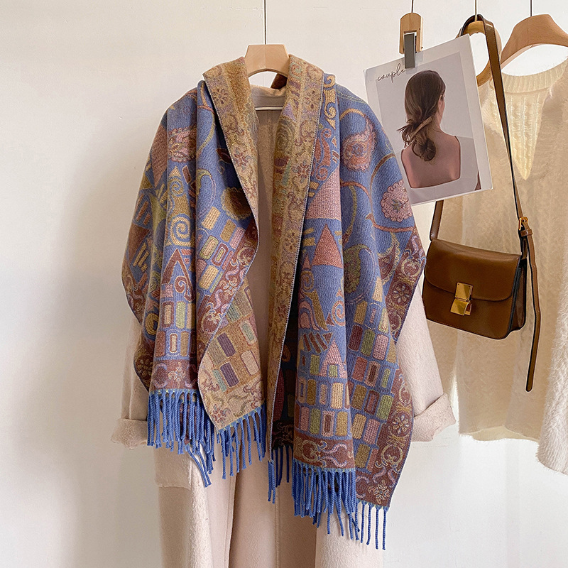 가을과 겨울 새로운 코어 스핀 원사 스카프 여자 올매치 두꺼운 술 민족 스타일 여행 목도리 따뜻한 모방 캐시미어 스카프스토어 가기