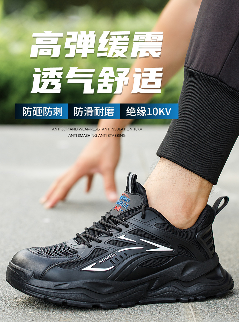 GB 플라스틱 발가락 안전 신발 남성용 스매싱 방지 및 피어싱 방지 높은 탄성 충격 쿠션 통기성 편안한 10KV 안전 신발
