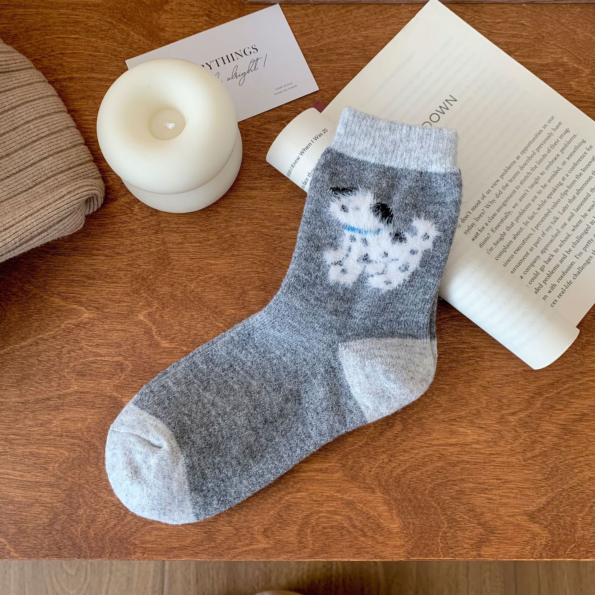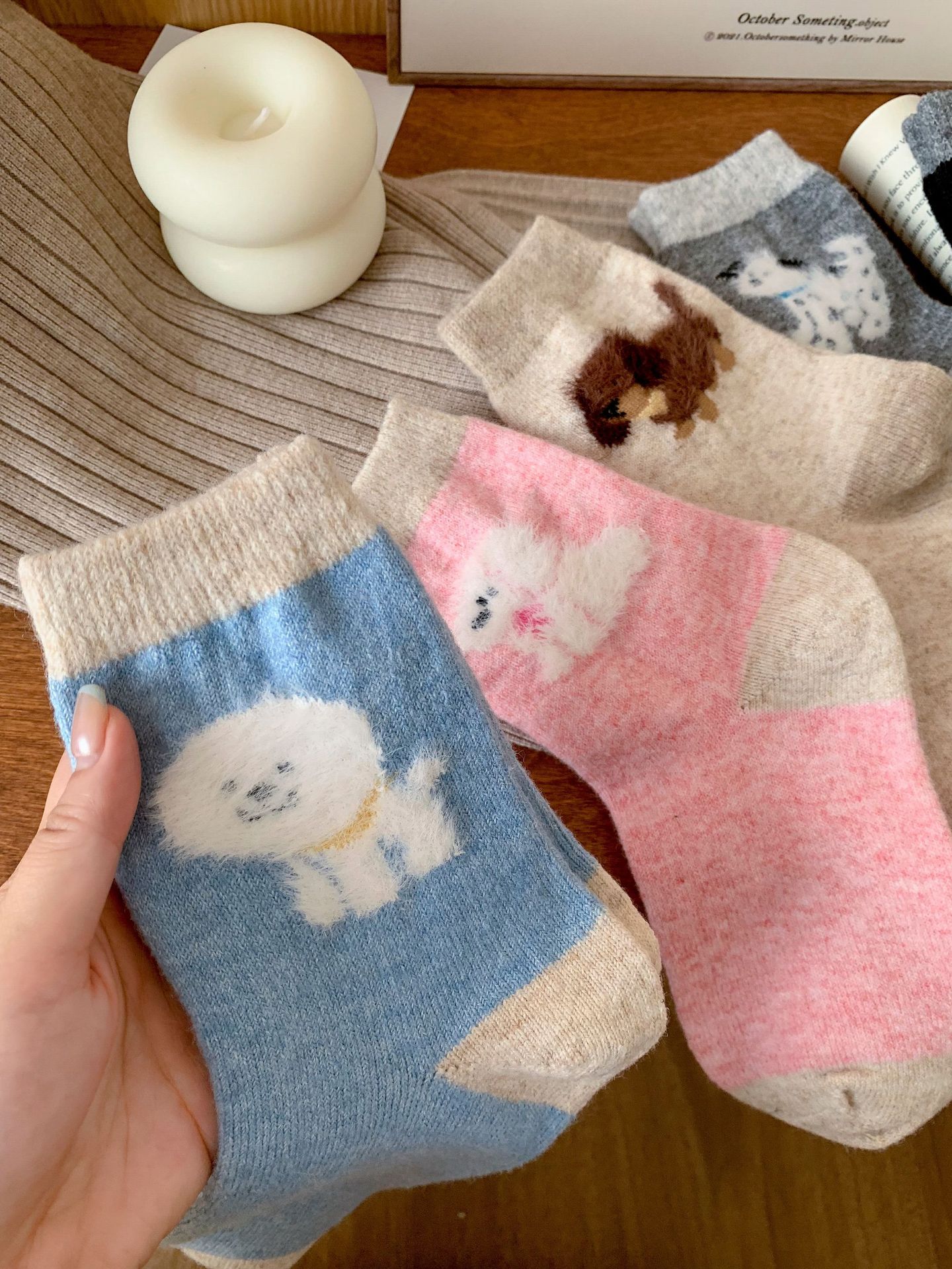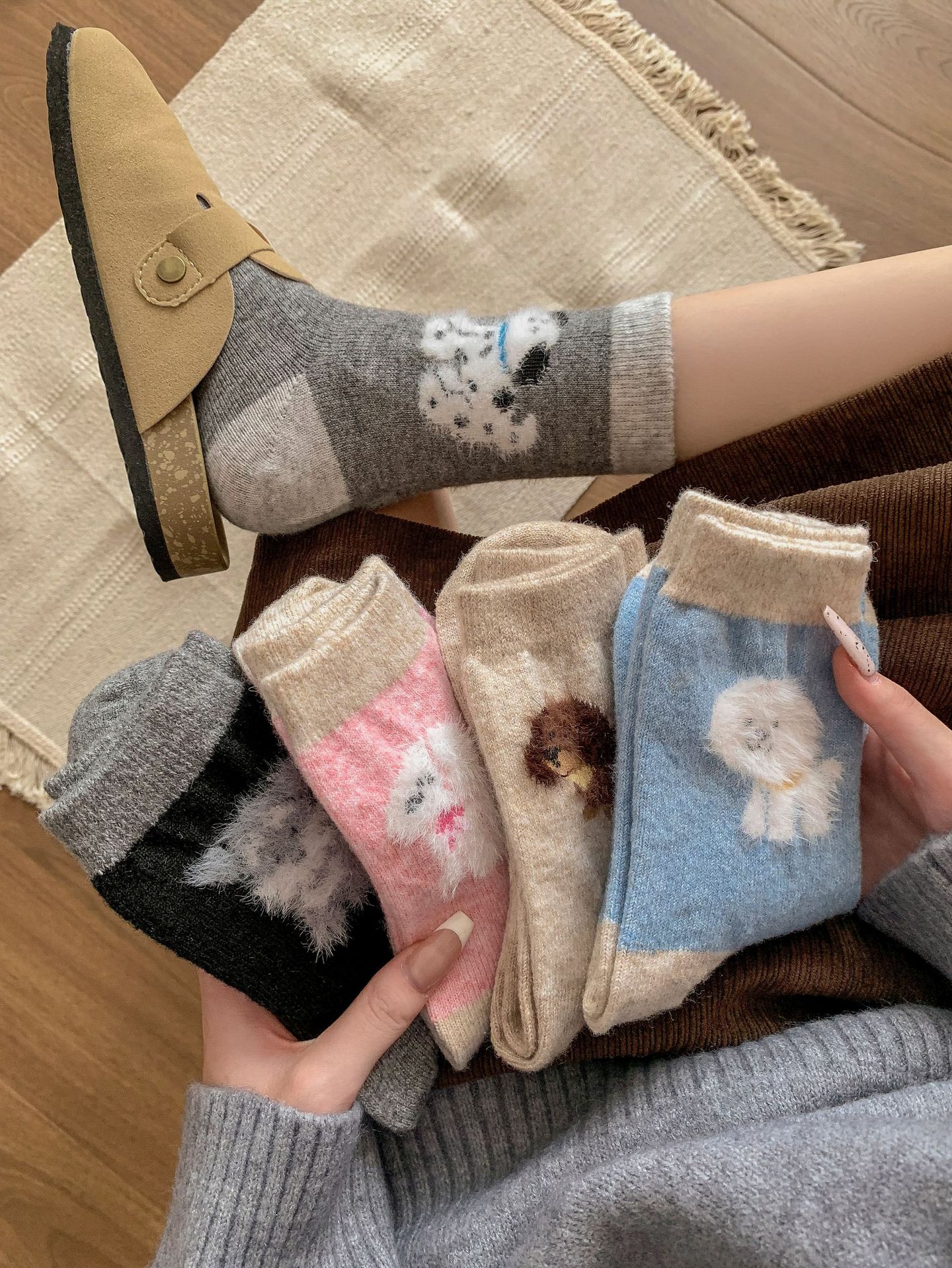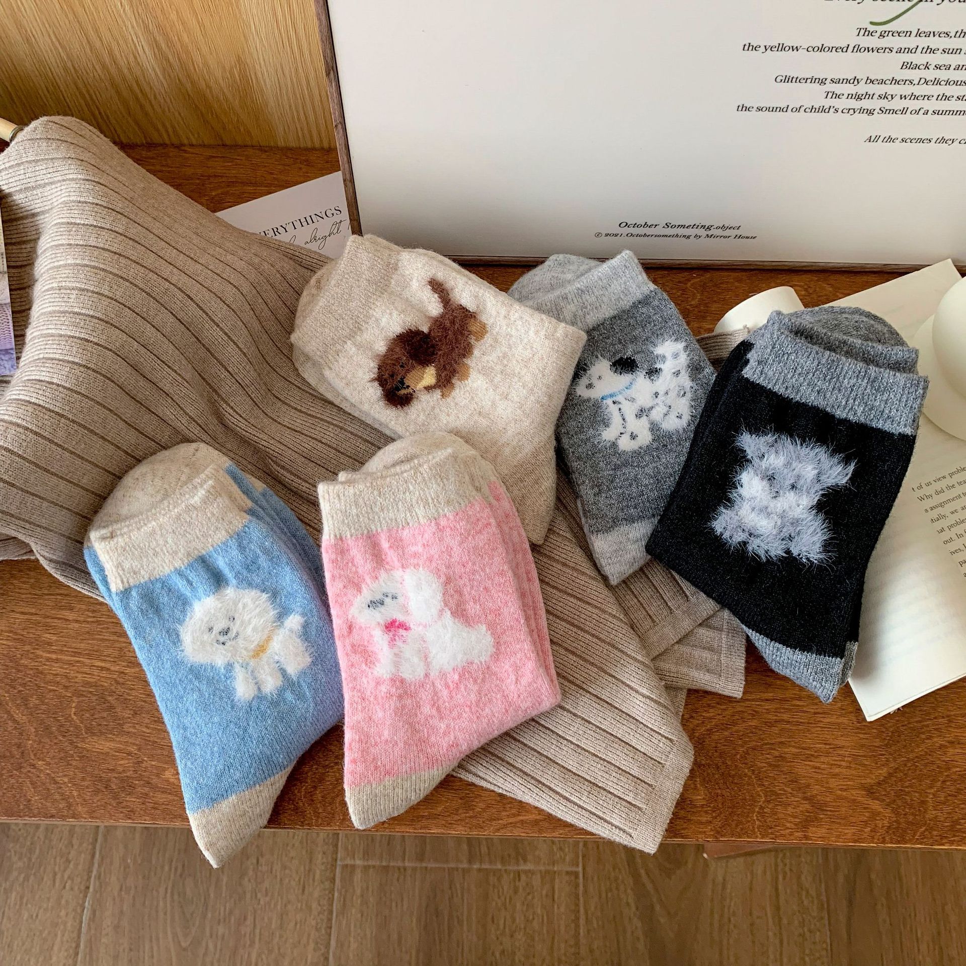 강아지 양말 여성의 중간 튜브 양말 가을과 겨울 양모 두꺼운 따뜻한 인 스타일 일본 귀여운 만화 더미 양말