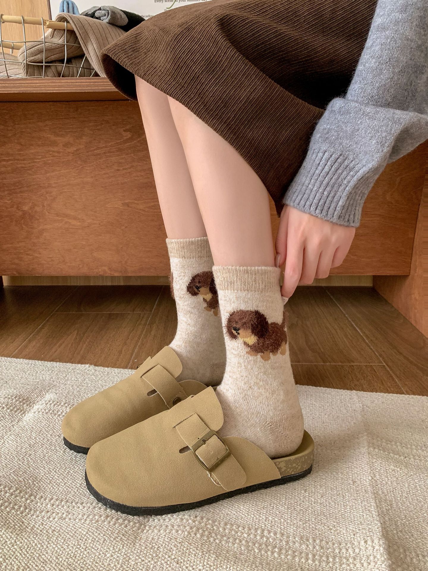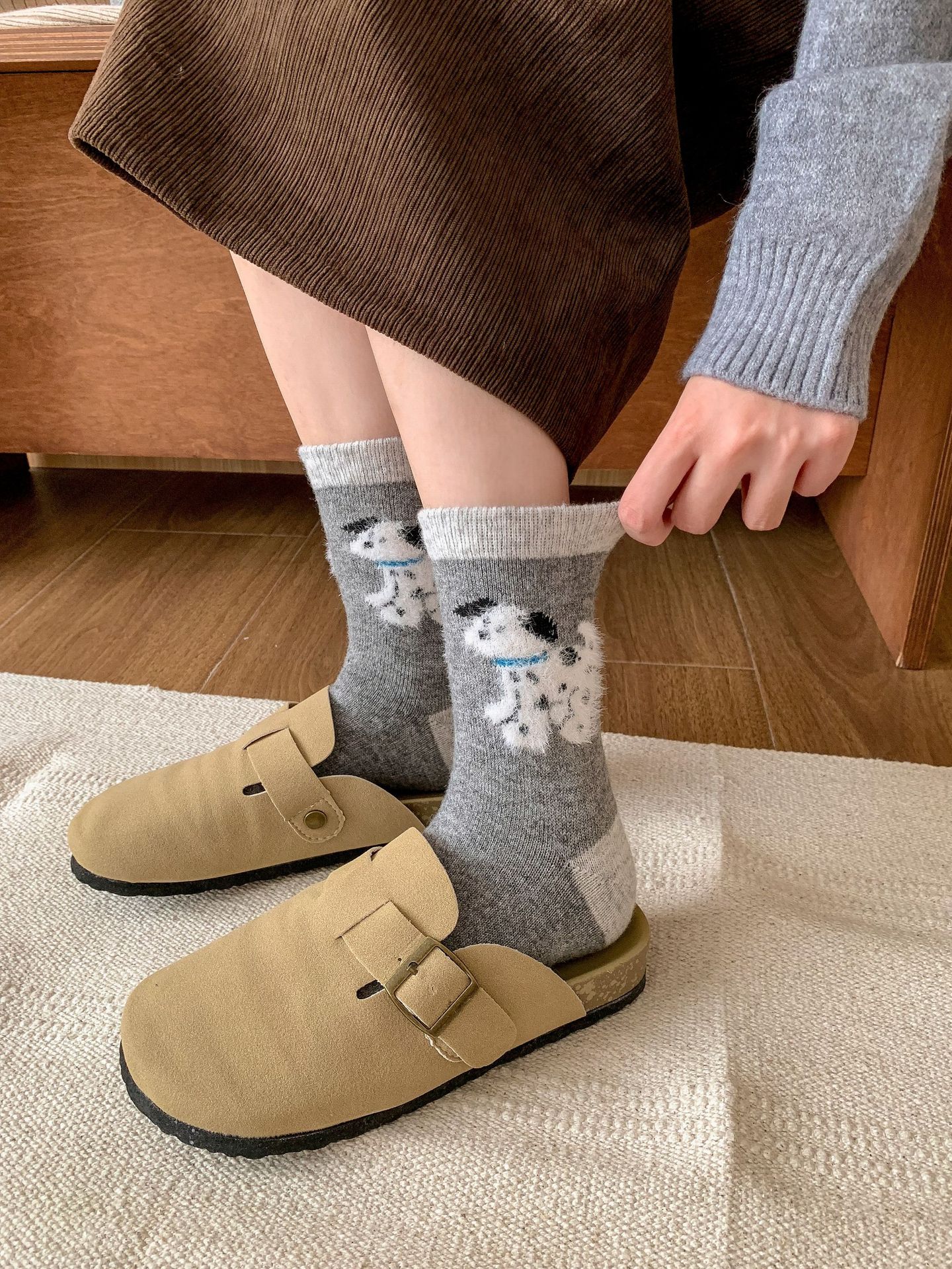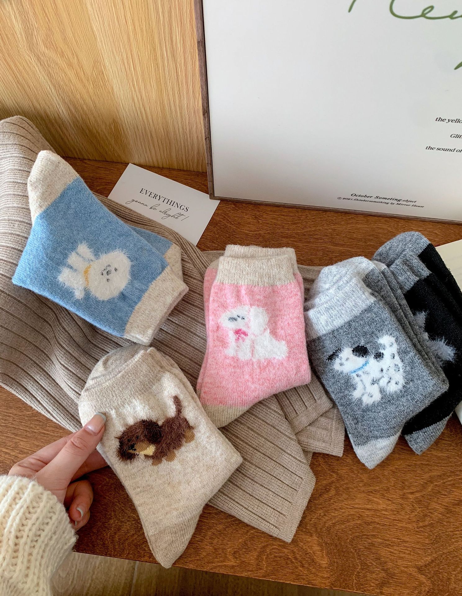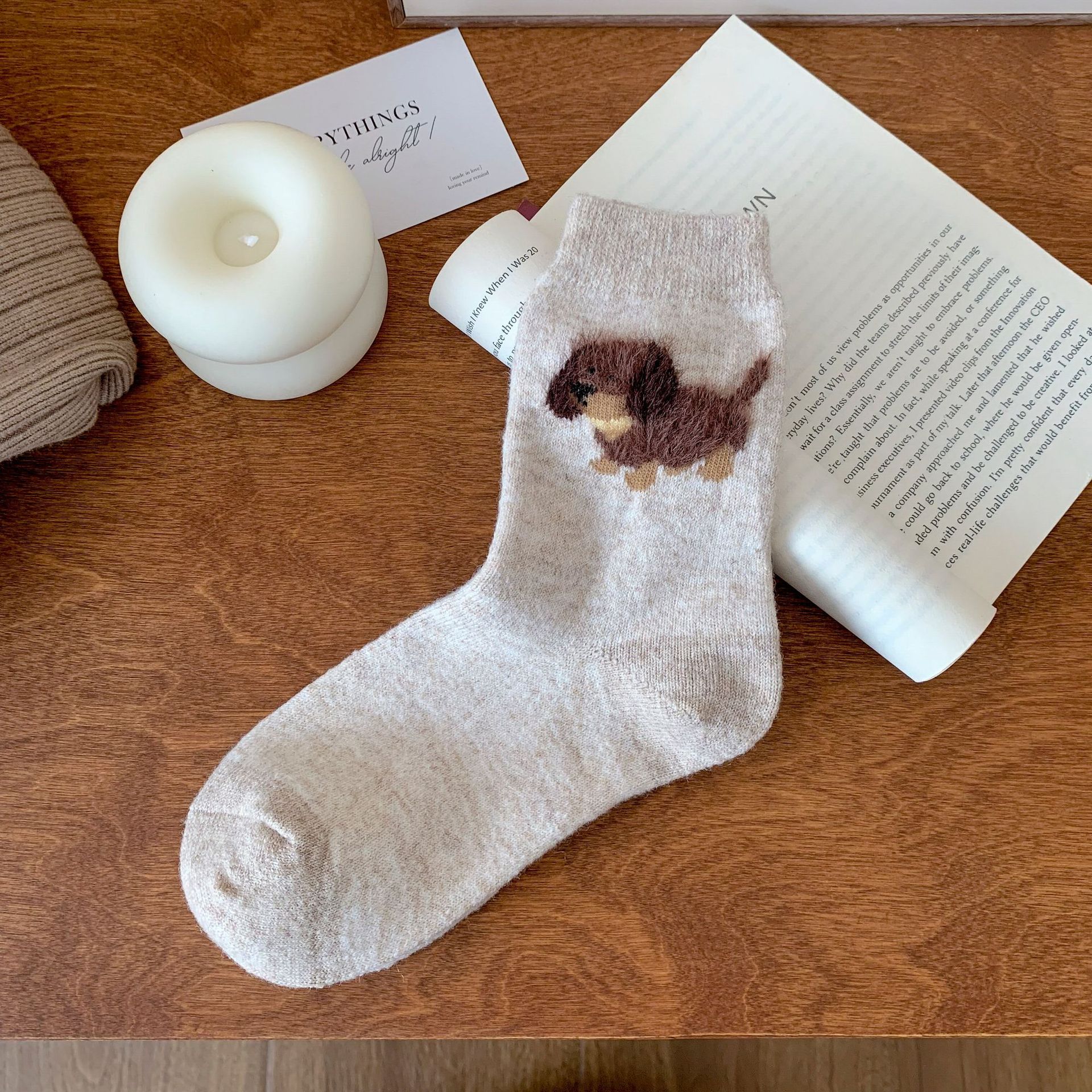 강아지 양말 여성의 중간 튜브 양말 가을과 겨울 양모 두꺼운 따뜻한 인 스타일 일본 귀여운 만화 더미 양말