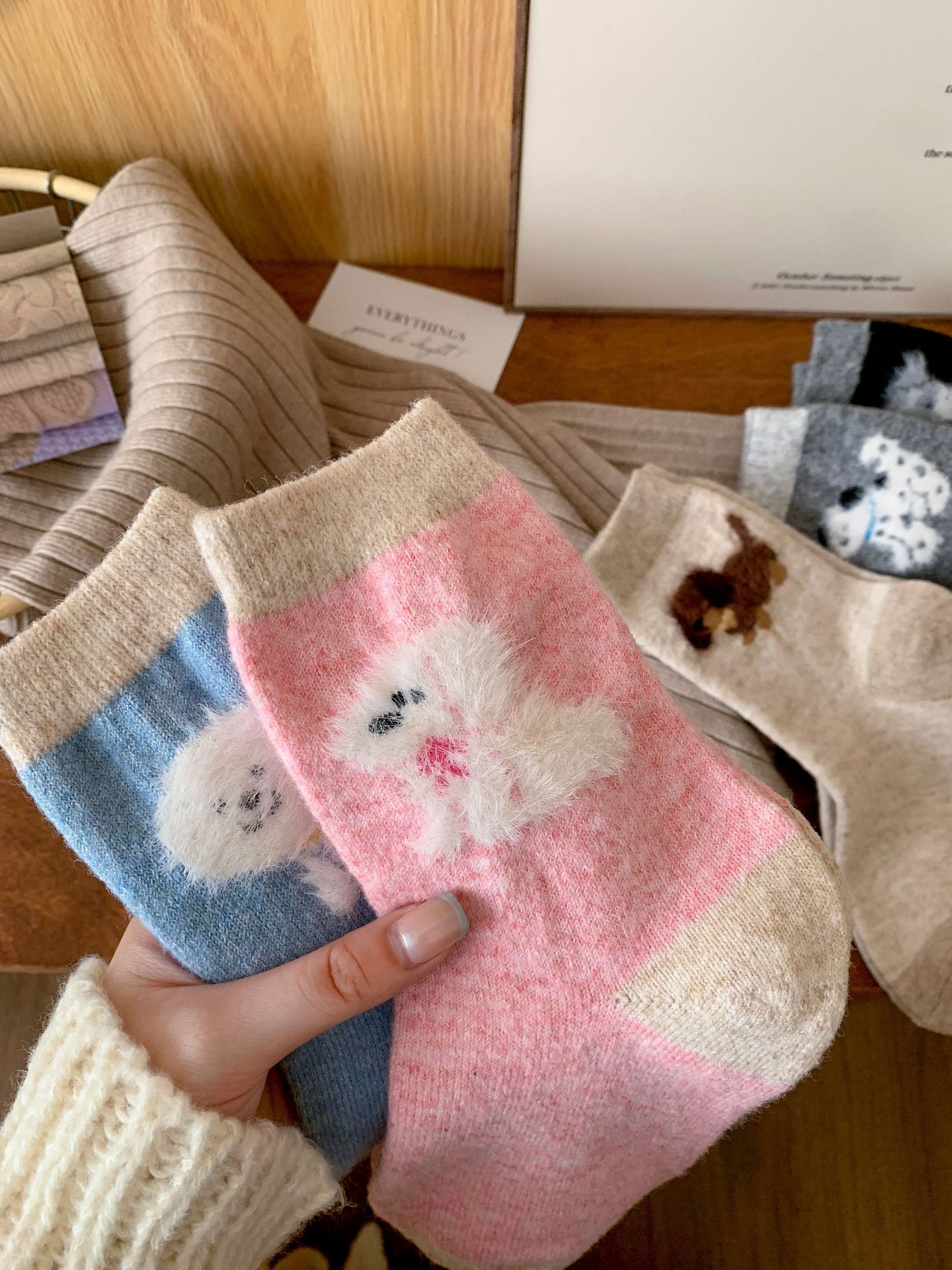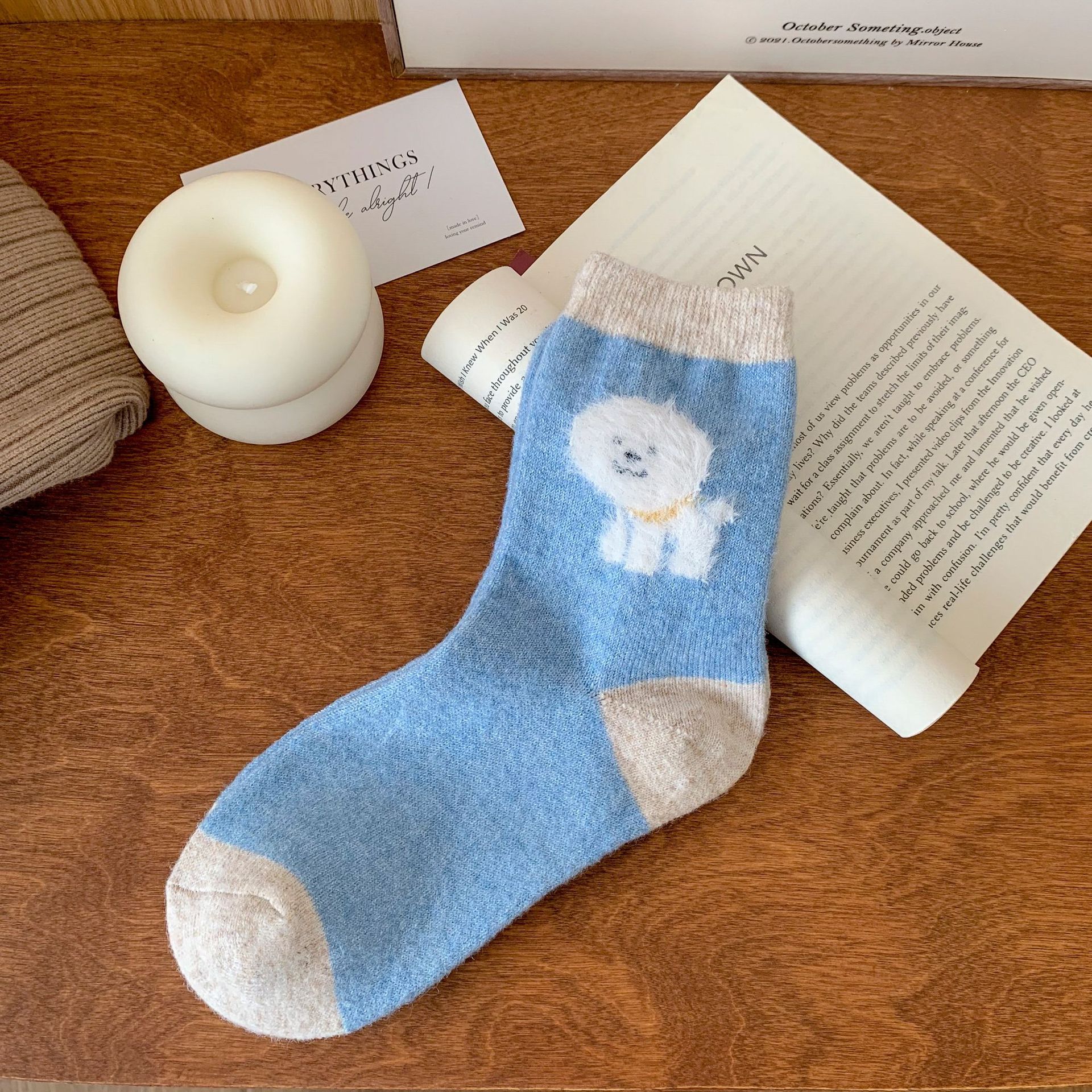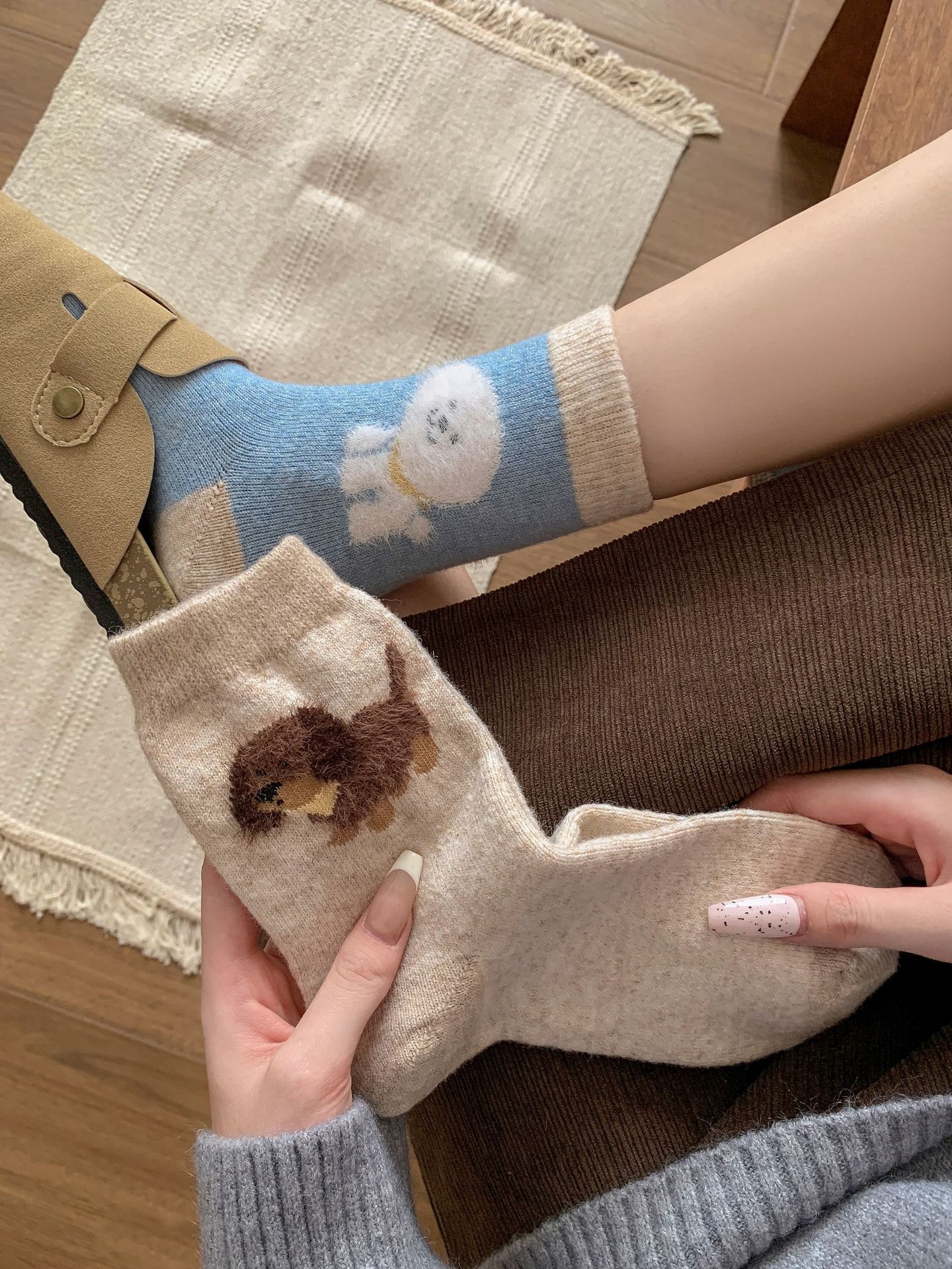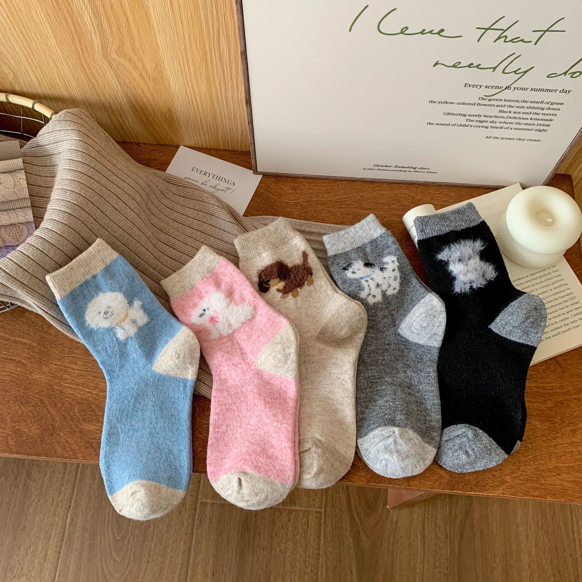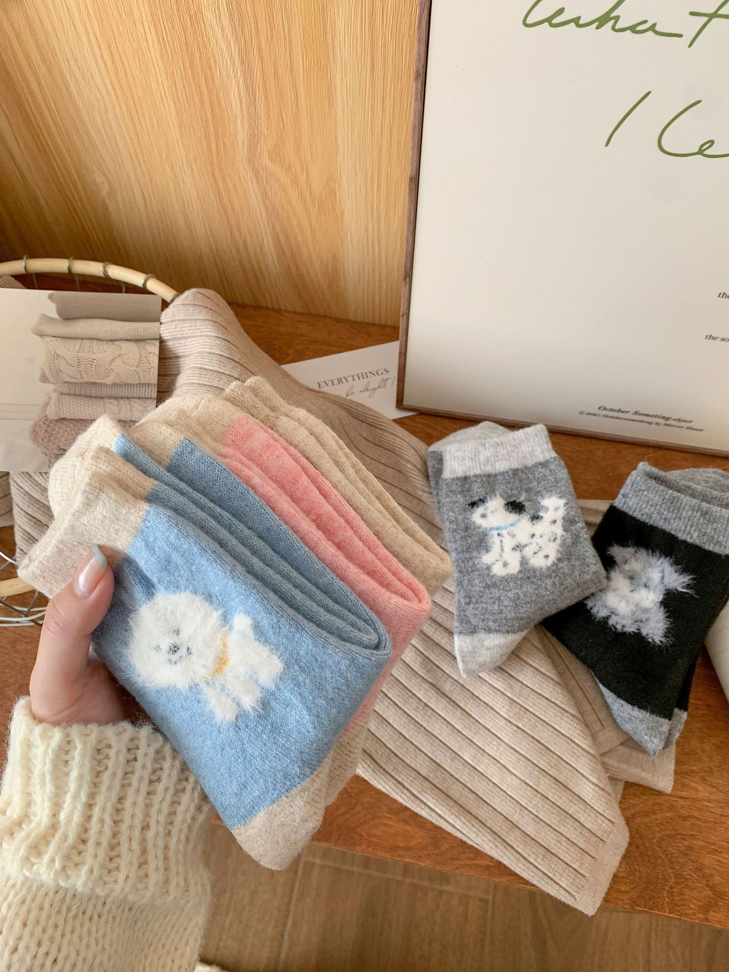 강아지 양말 여성의 중간 튜브 양말 가을과 겨울 양모 두꺼운 따뜻한 인 스타일 일본 귀여운 만화 더미 양말