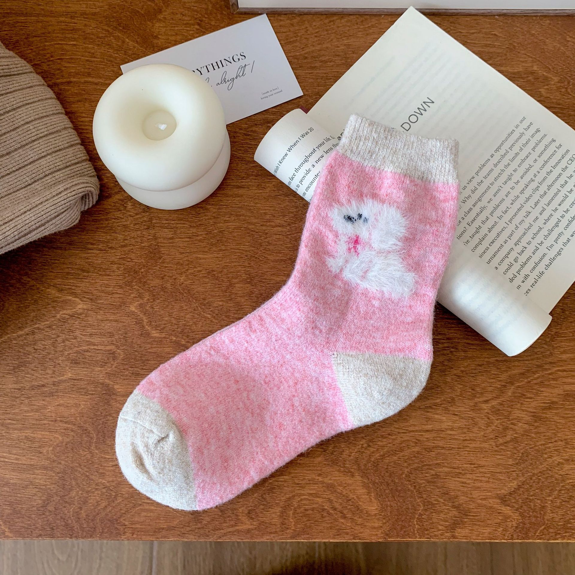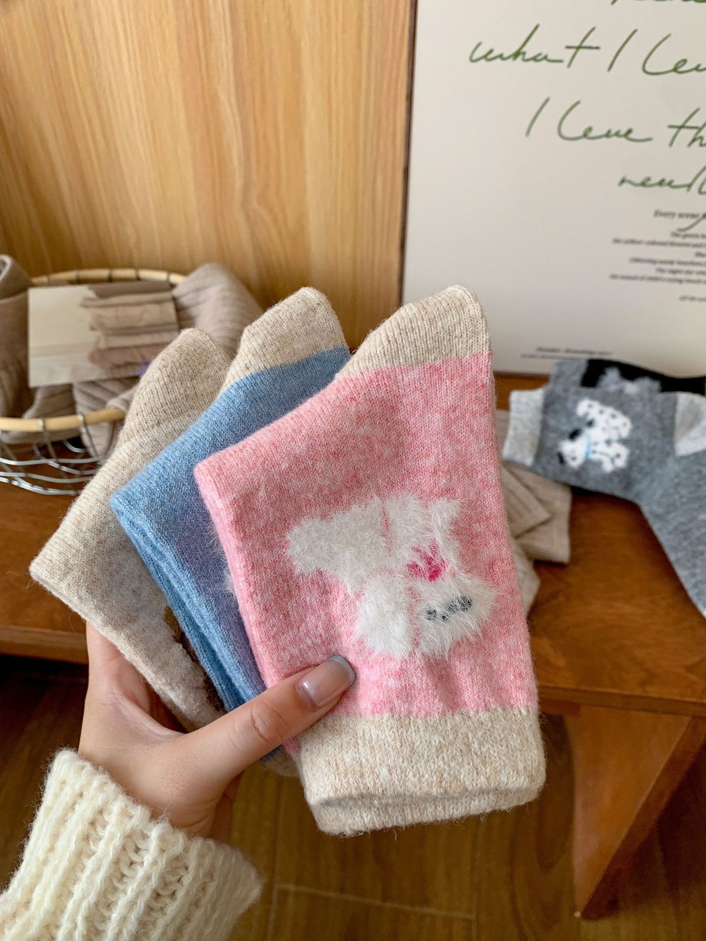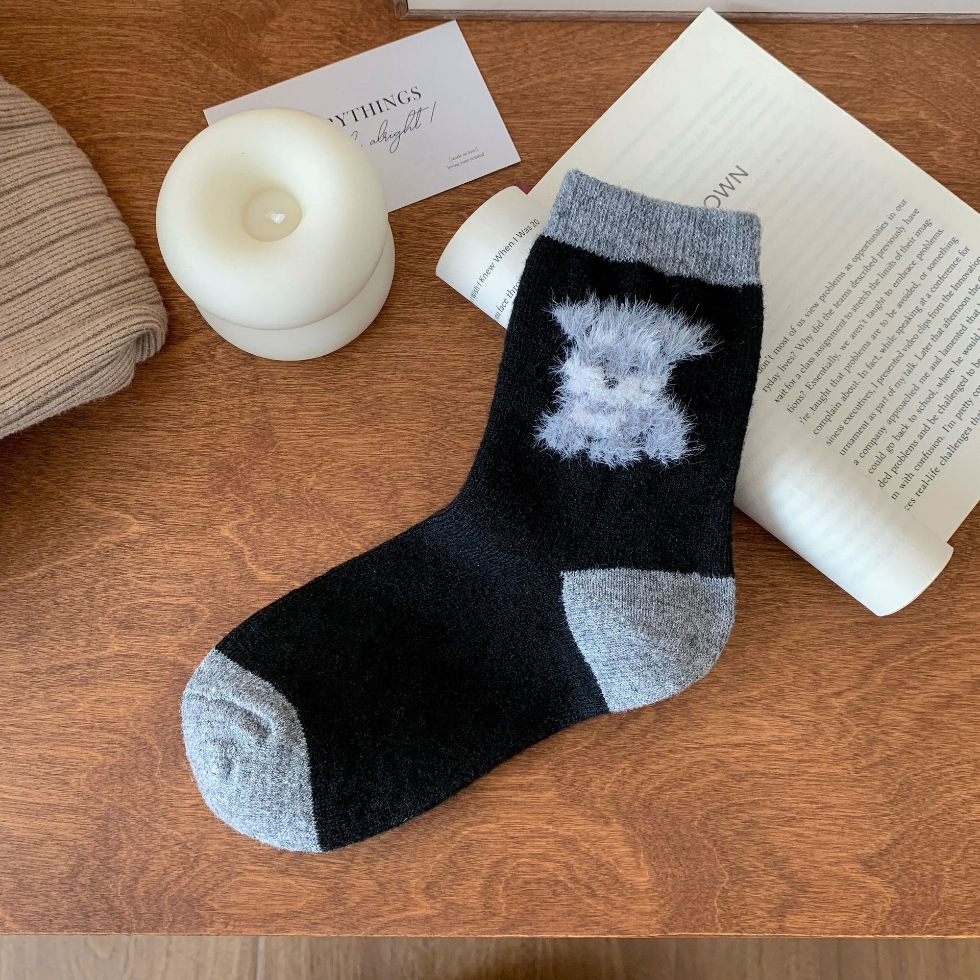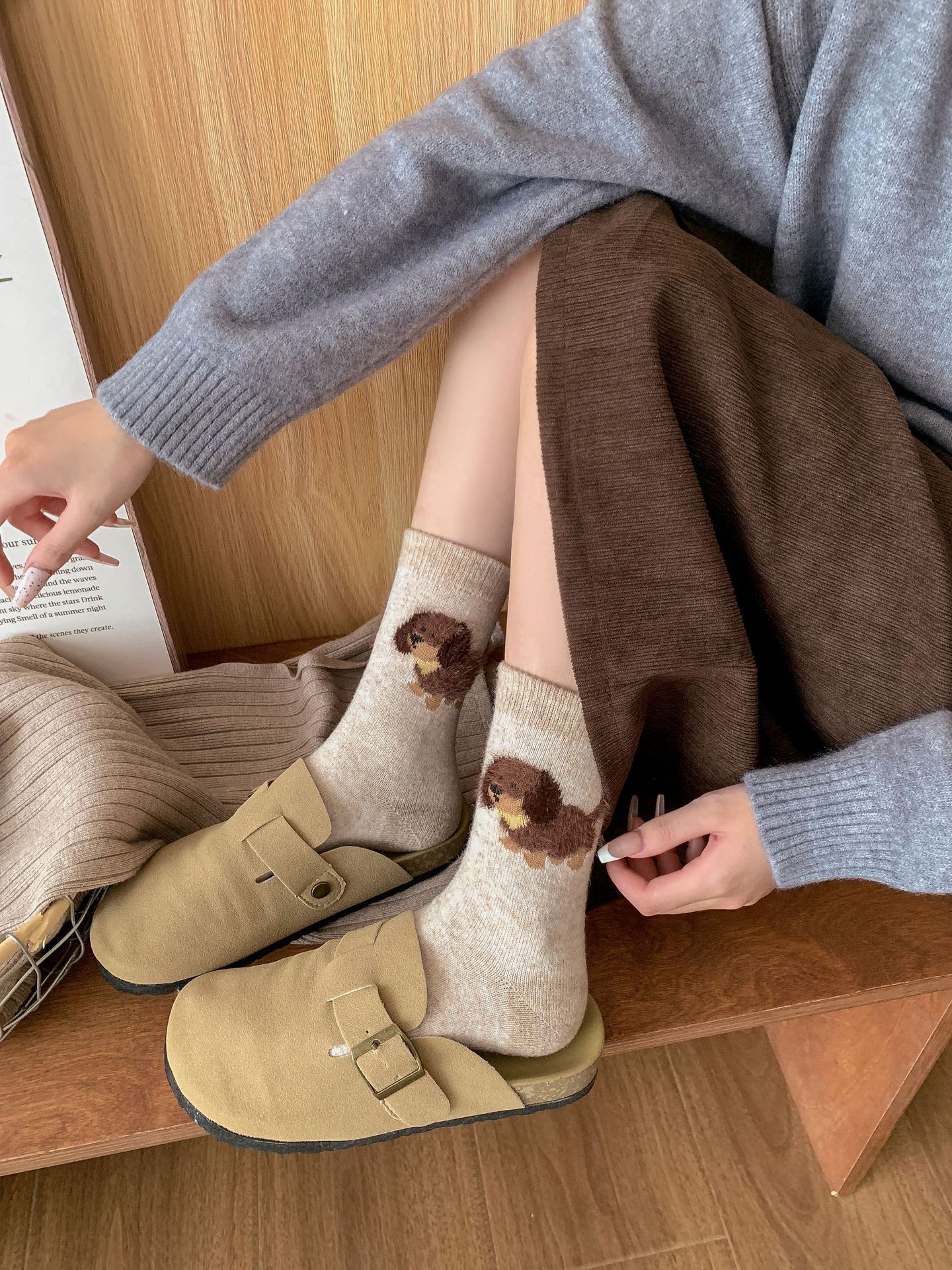 강아지 양말 여성의 중간 튜브 양말 가을과 겨울 양모 두꺼운 따뜻한 인 스타일 일본 귀여운 만화 더미 양말
