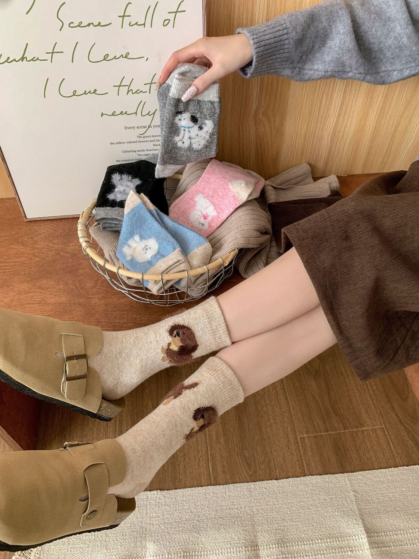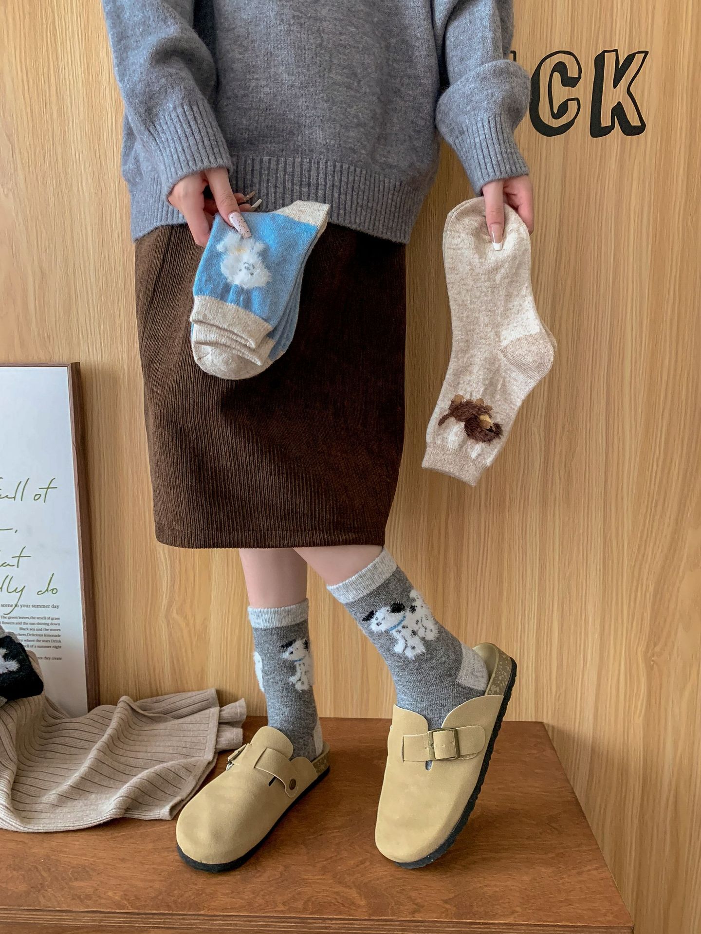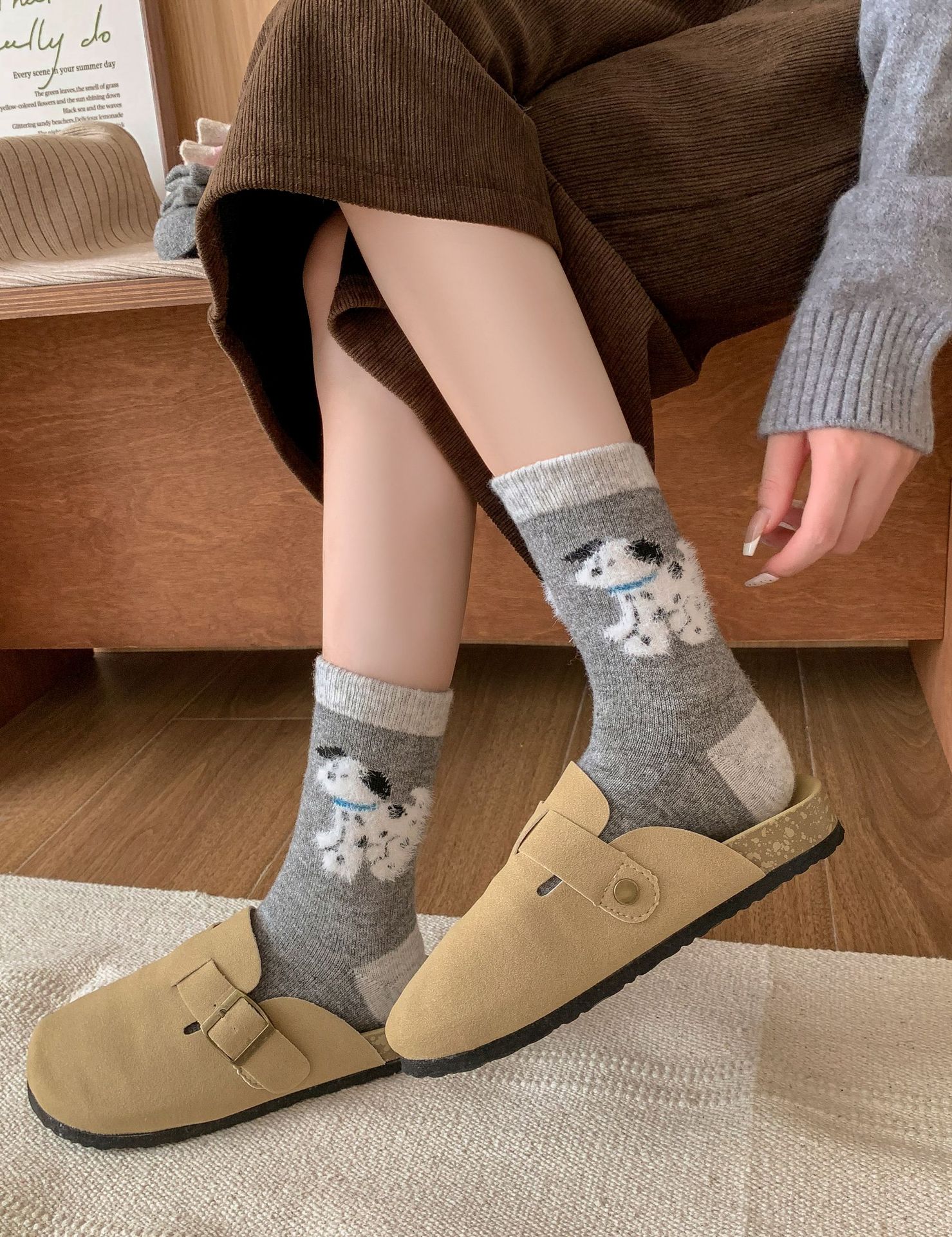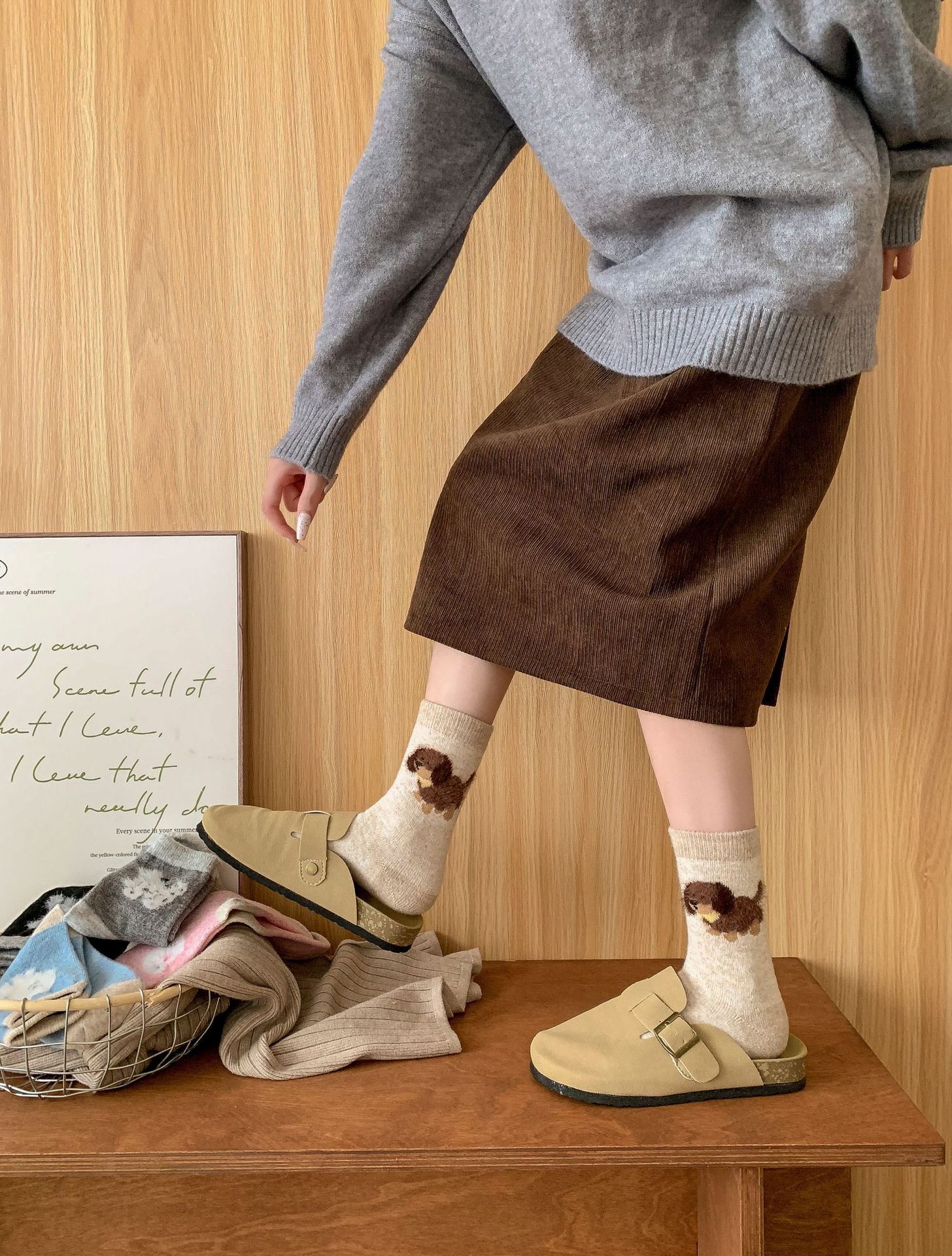 강아지 양말 여성의 중간 튜브 양말 가을과 겨울 양모 두꺼운 따뜻한 인 스타일 일본 귀여운 만화 더미 양말스토어 가기