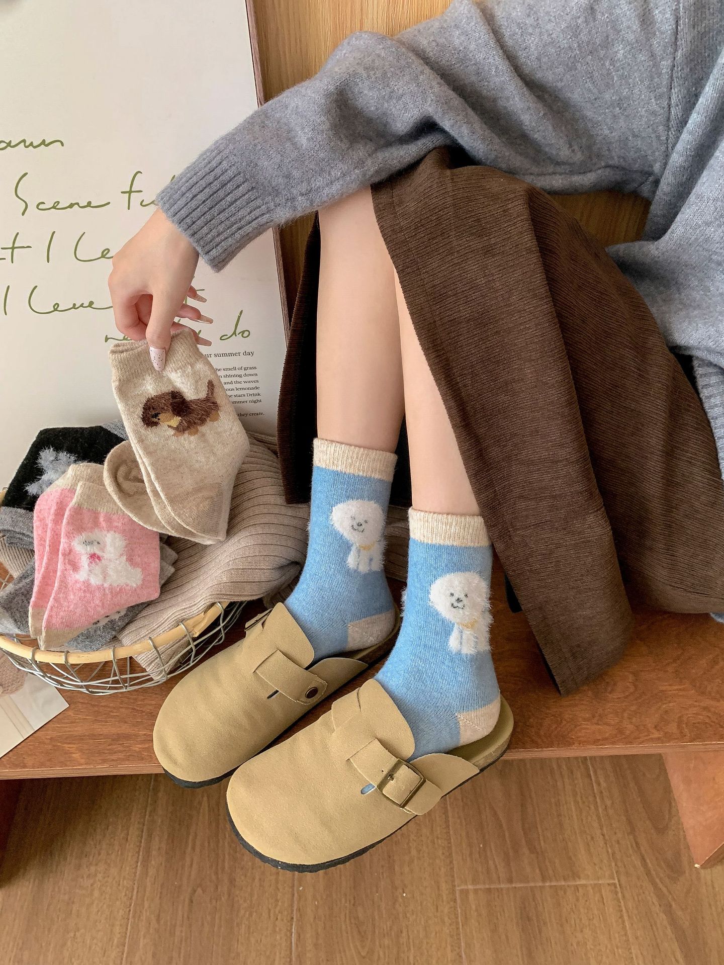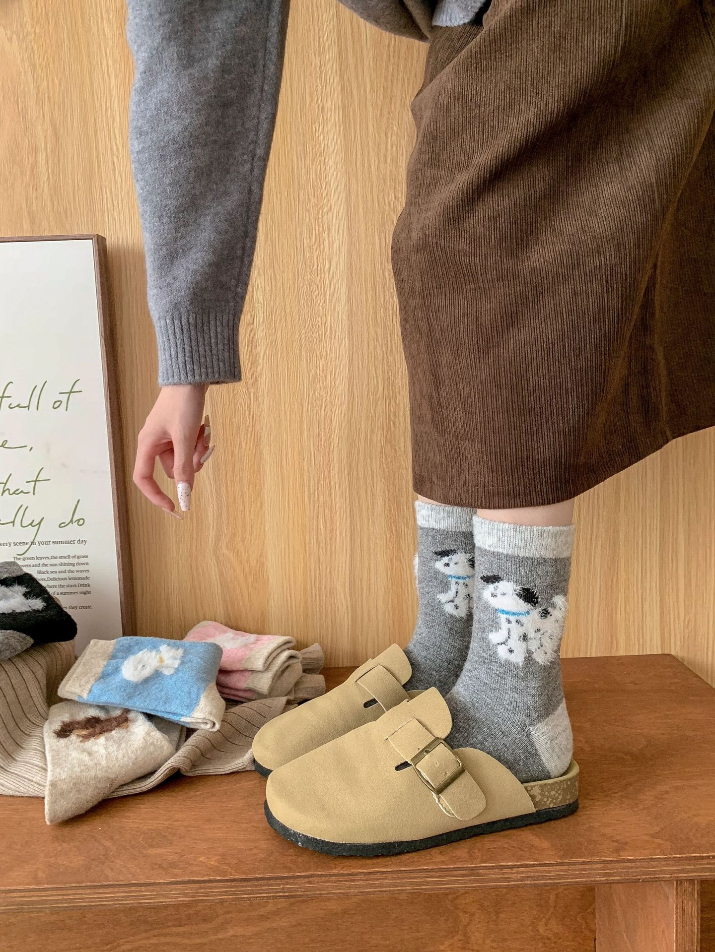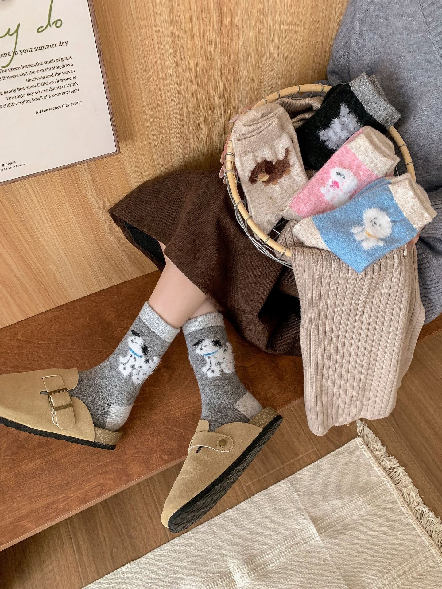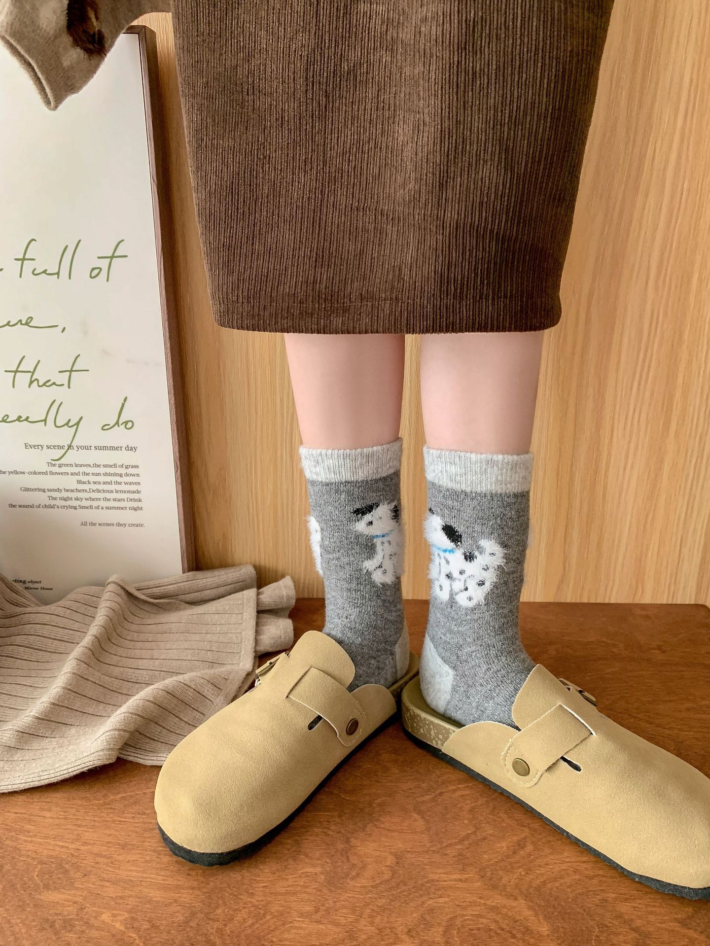 강아지 양말 여성의 중간 튜브 양말 가을과 겨울 양모 두꺼운 따뜻한 인 스타일 일본 귀여운 만화 더미 양말스토어 가기