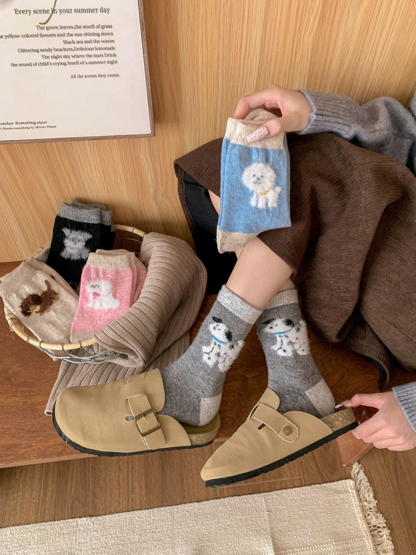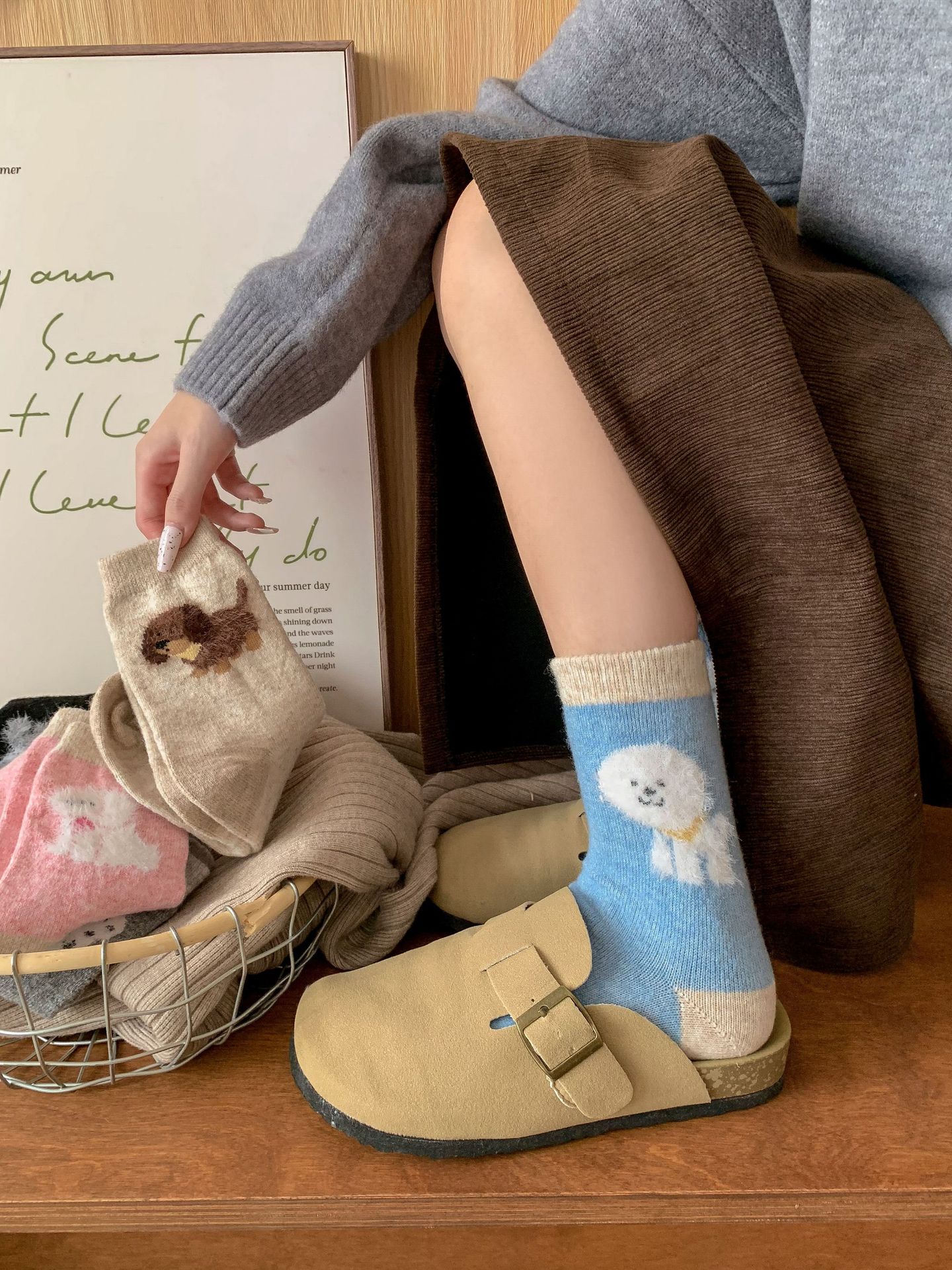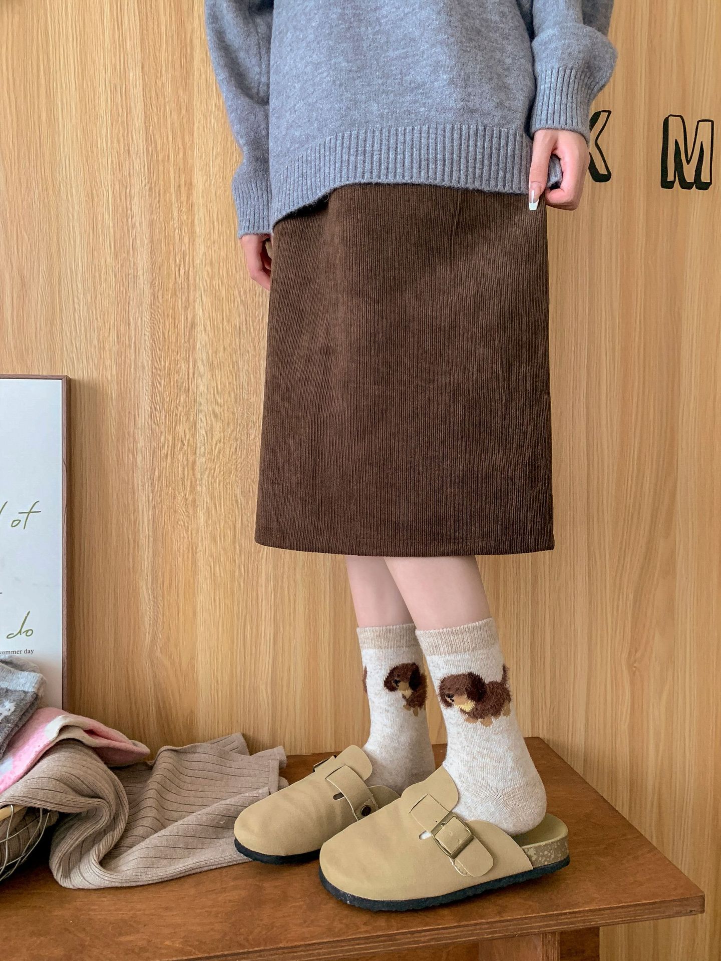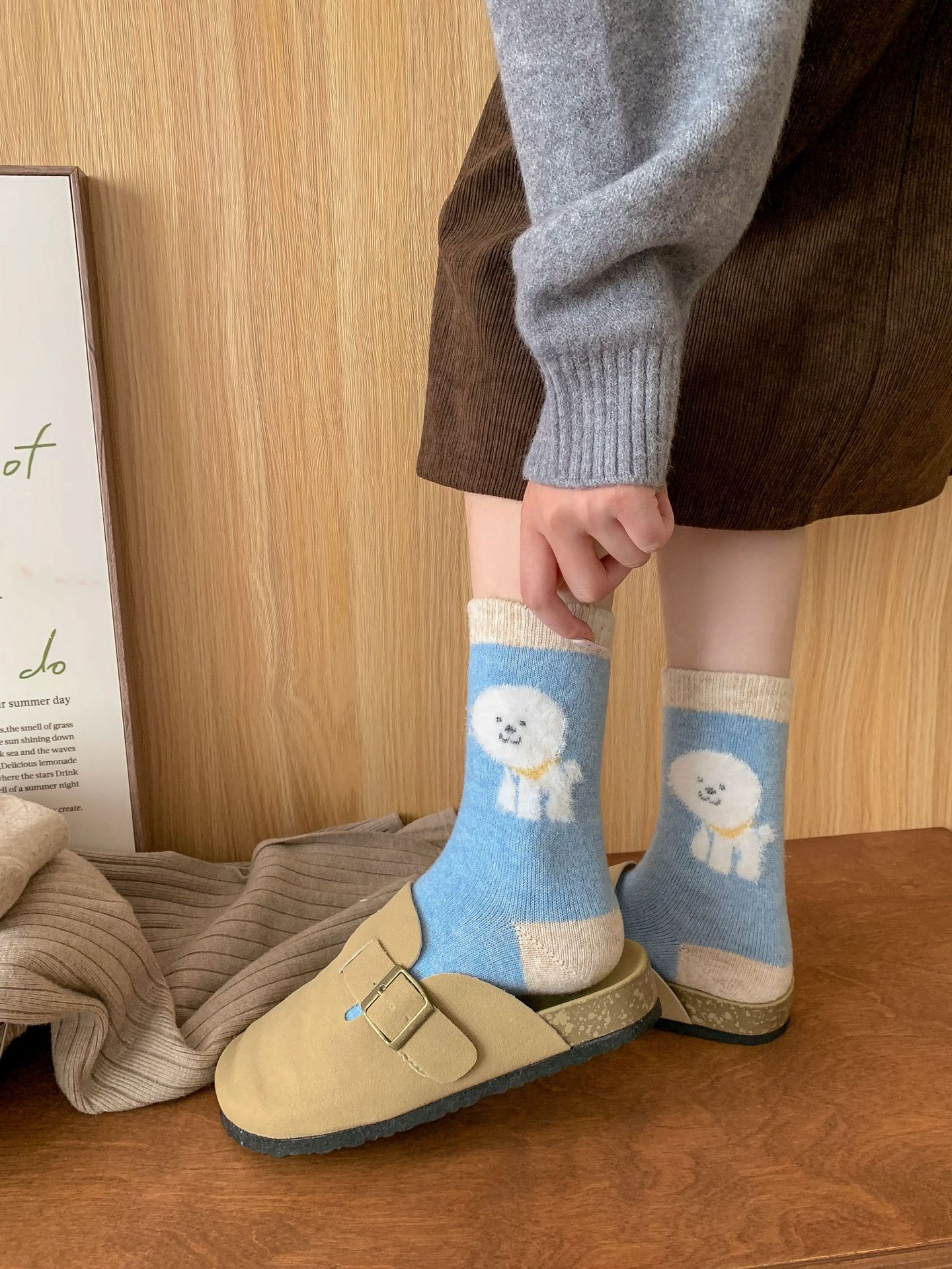 강아지 양말 여성의 중간 튜브 양말 가을과 겨울 양모 두꺼운 따뜻한 인 스타일 일본 귀여운 만화 더미 양말스토어 가기