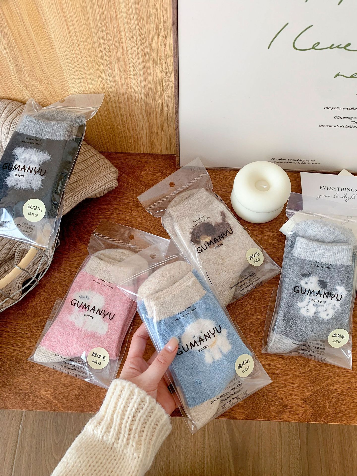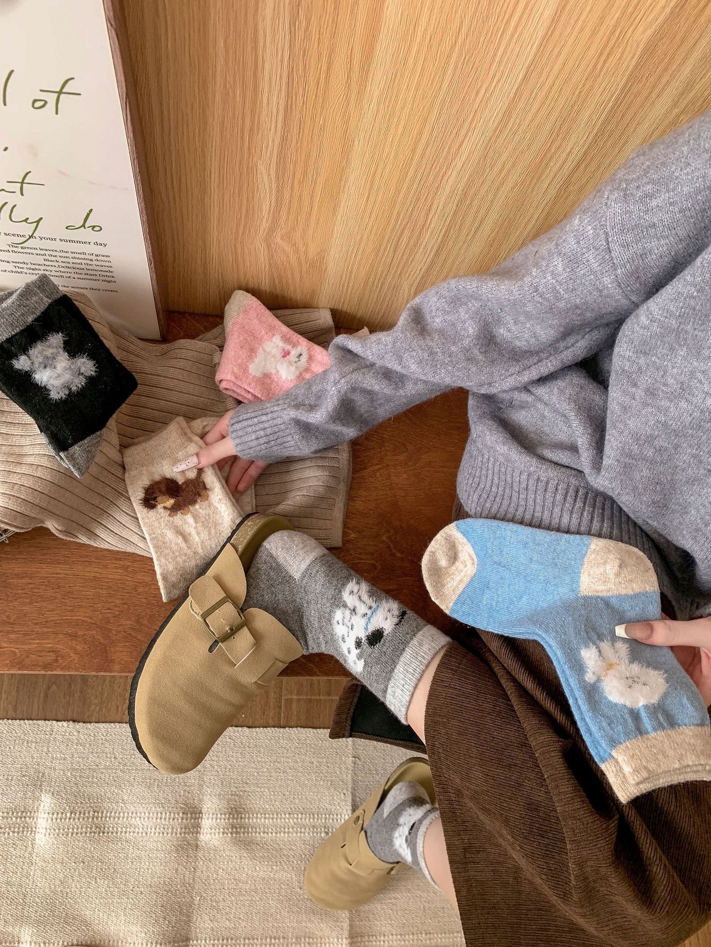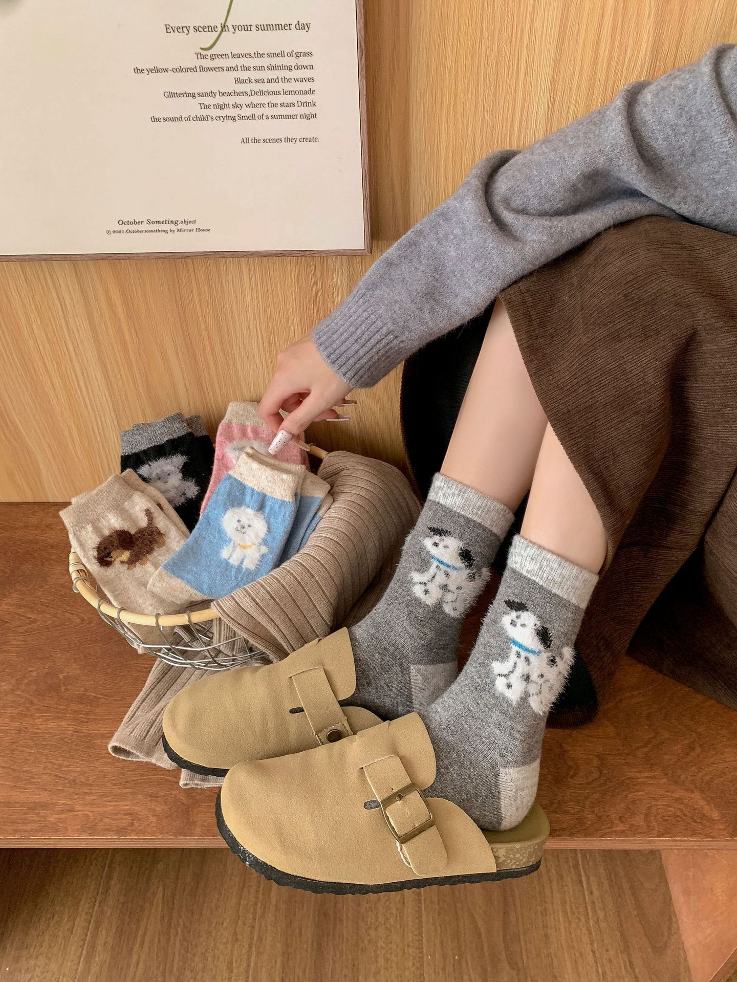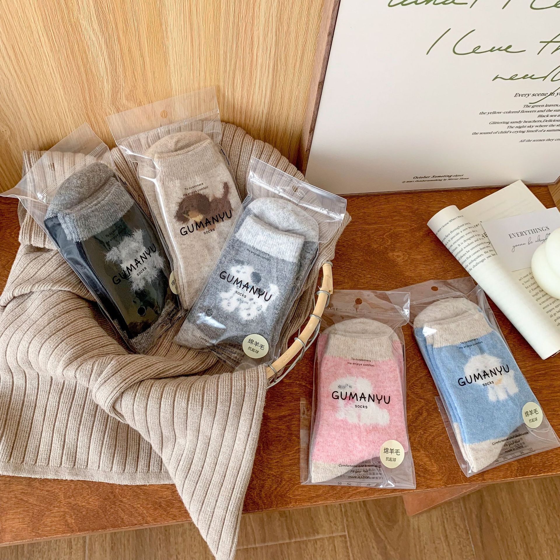 강아지 양말 여성의 중간 튜브 양말 가을과 겨울 양모 두꺼운 따뜻한 인 스타일 일본 귀여운 만화 더미 양말스토어 가기