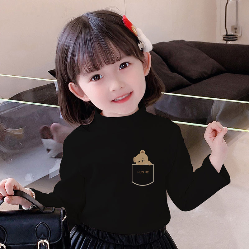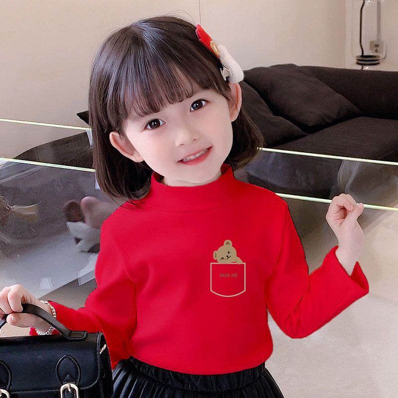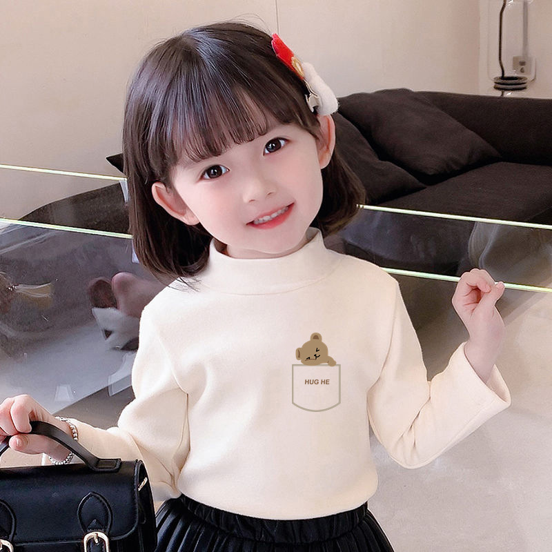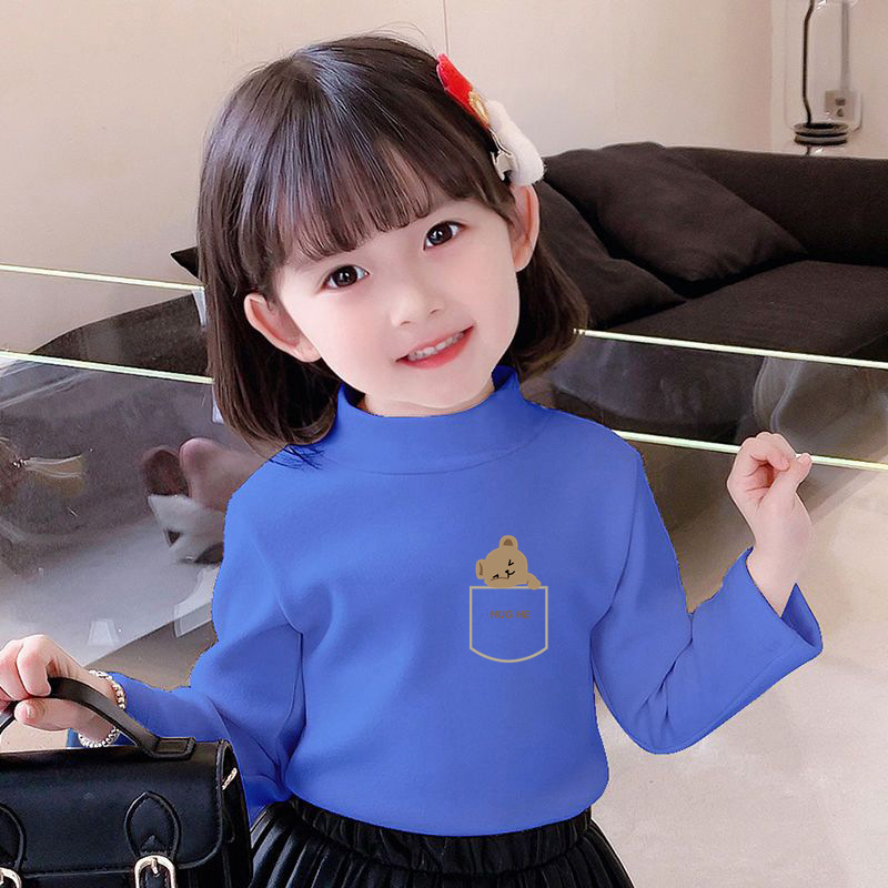 Y2556 # 어린이 벨벳 세미 하이 칼라 바닥 셔츠 가을과 겨울 소녀 소년 긴 소매 중대형 어린이 기모 따뜻한 조수스토어 가기