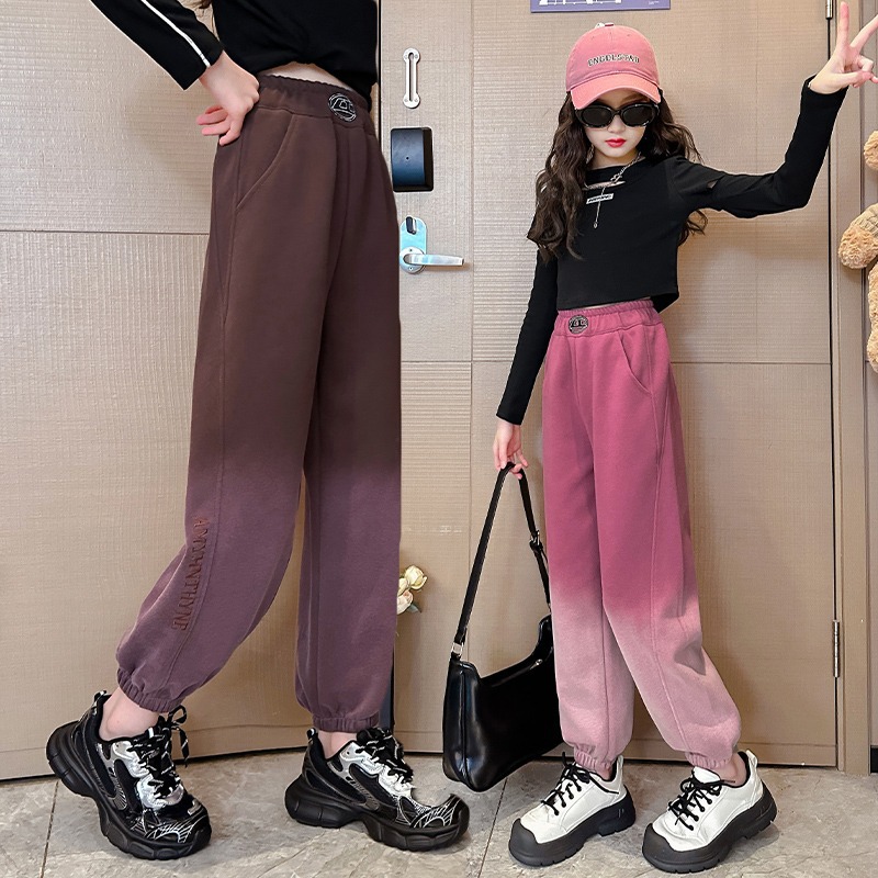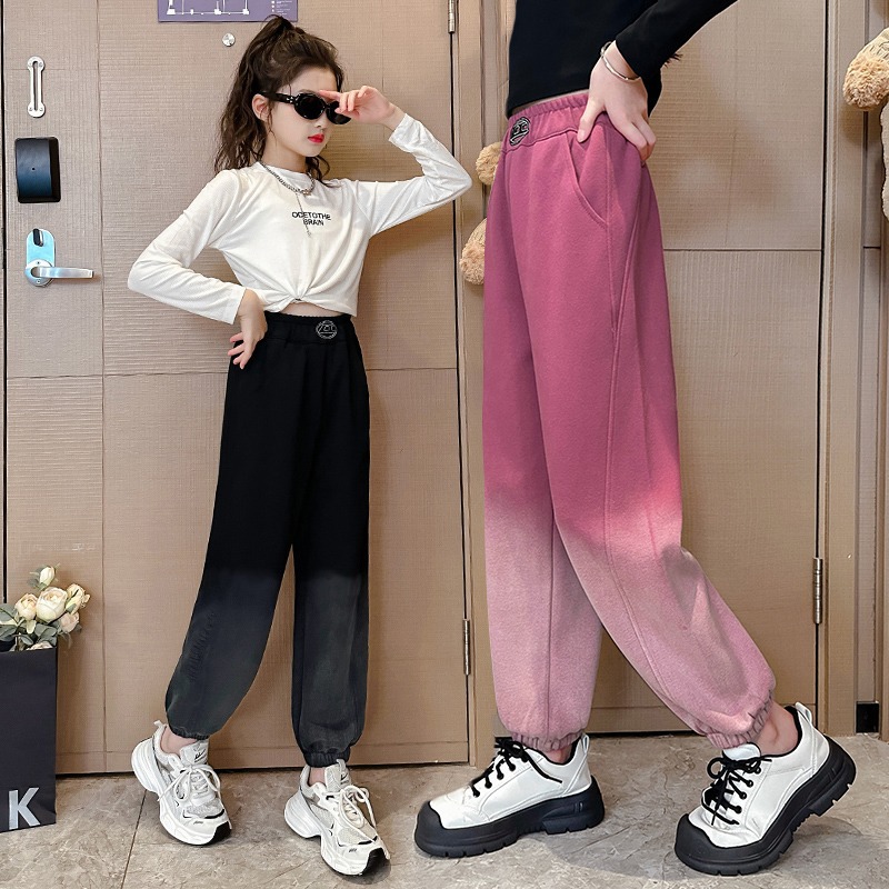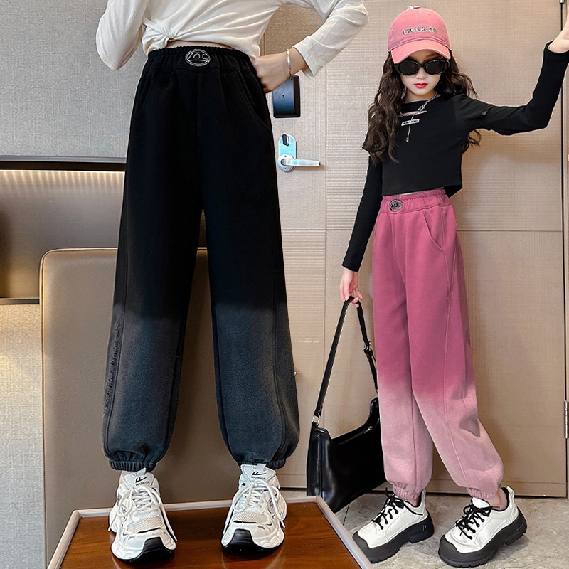 소녀 바지 봄과 가을 외부 착용 2024 새로운 유행 대형 어린이 느슨한 운동복 소녀 가을 어린이 스포츠 바지스토어 가기