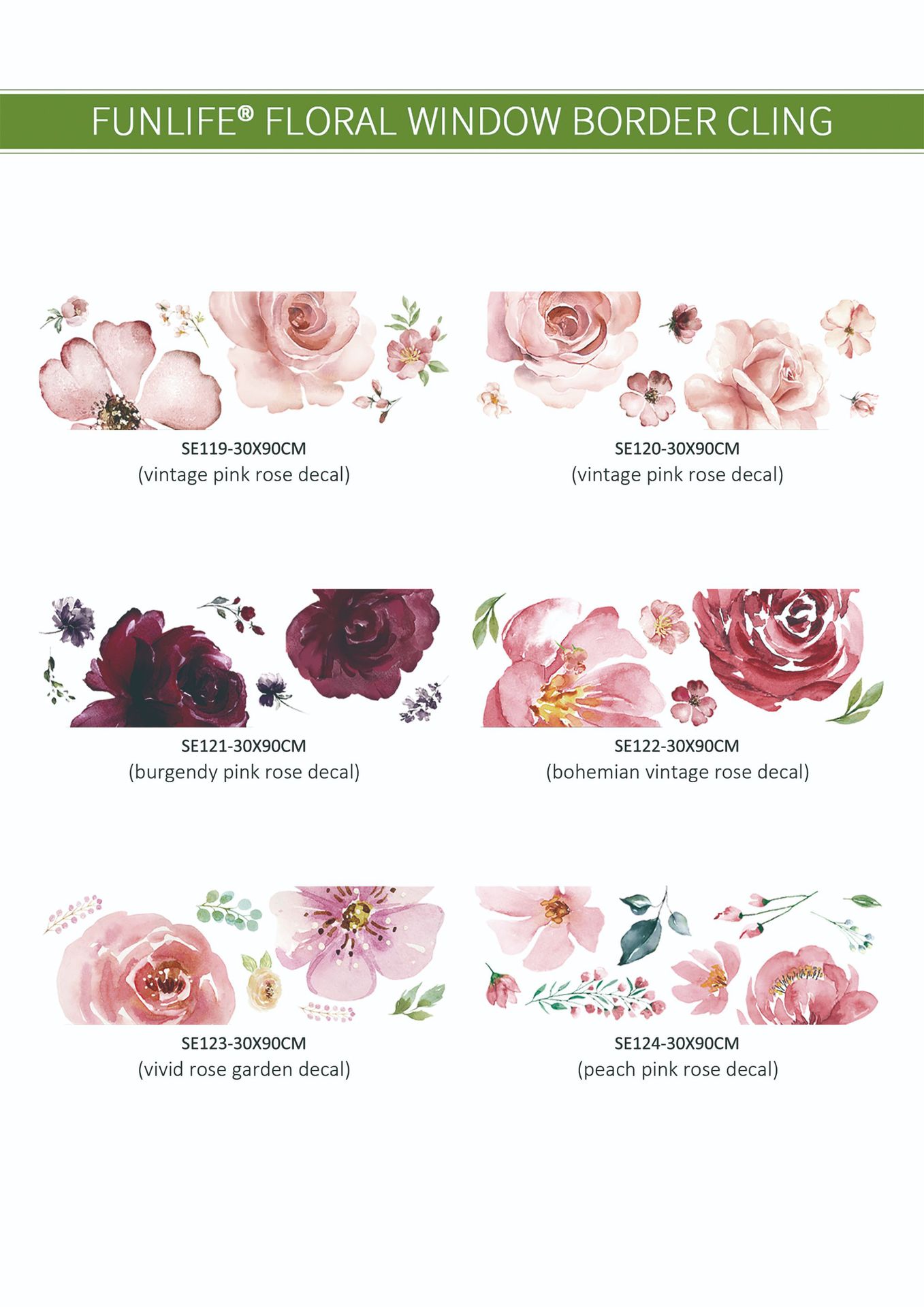 Funlife2024 새로운 팝 장미 창 꽃 수채화 접착제 무료 정전기 실용적인 투명 창 스티커 SE122스토어 가기