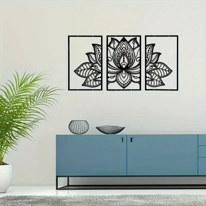 크로스 국경 복고풍 스타일 금속 연꽃 벽 예술 세트: 홈 장식 원래 예술 장식