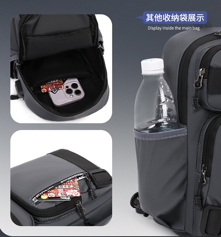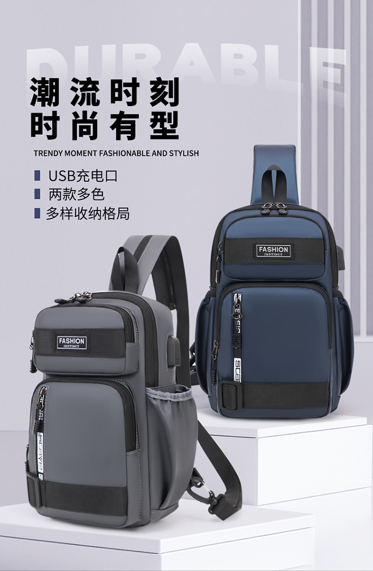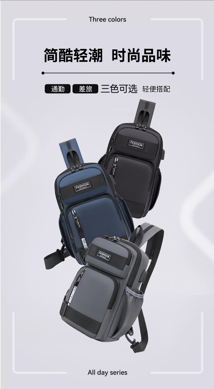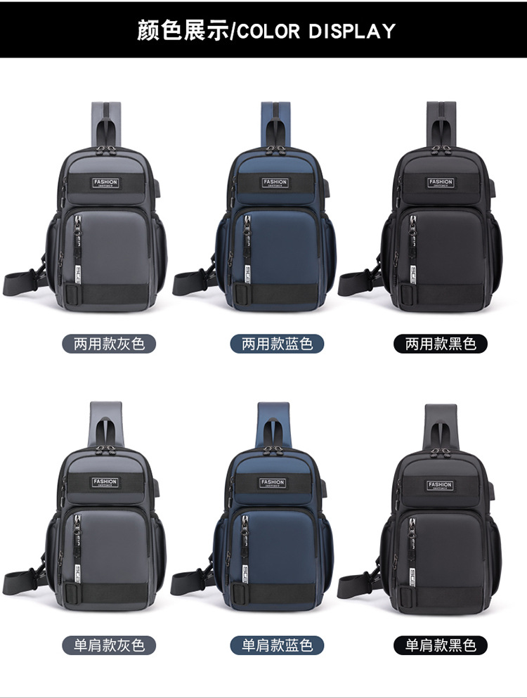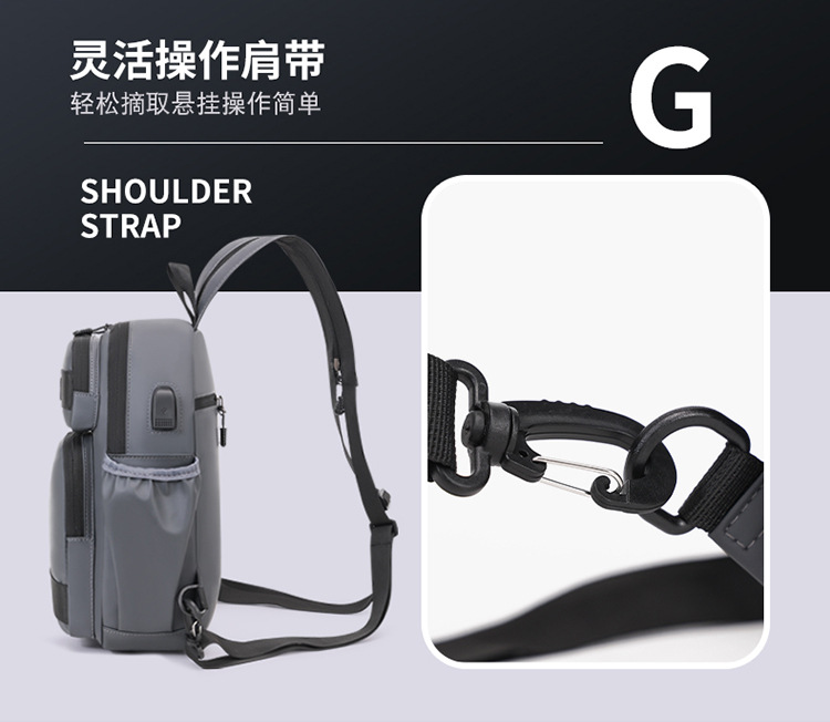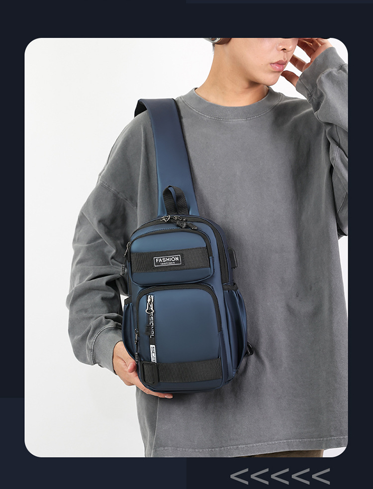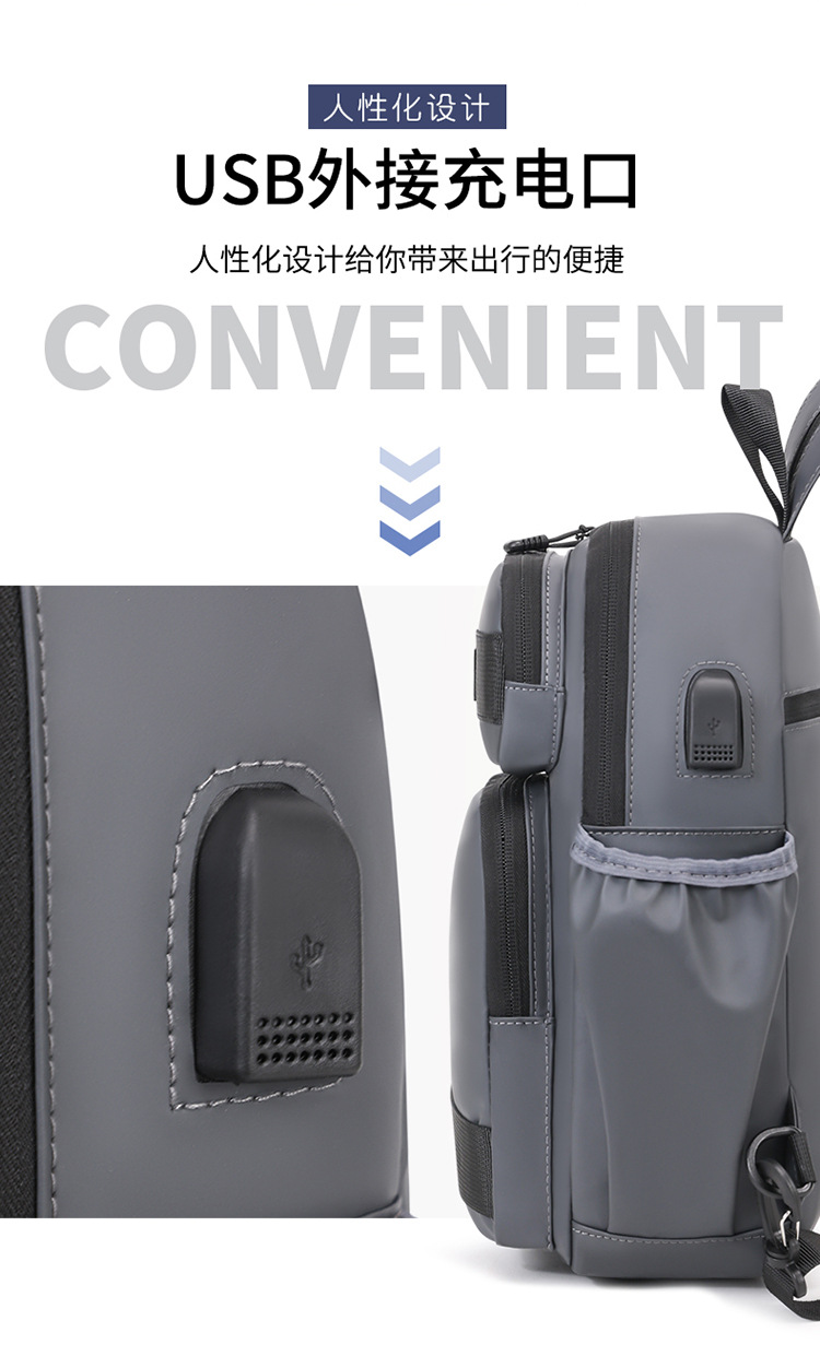 국경 간 새로운 USB 충전 가슴 가방 어깨 가방 방수 내마모성 배낭 비즈니스 휴대용 크로스 바디 백