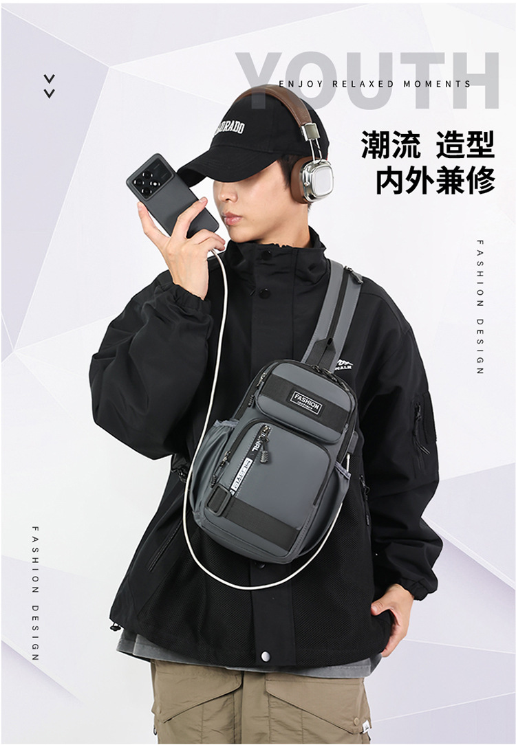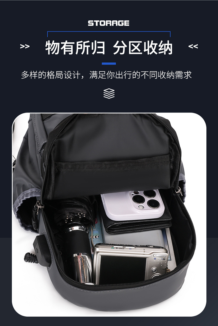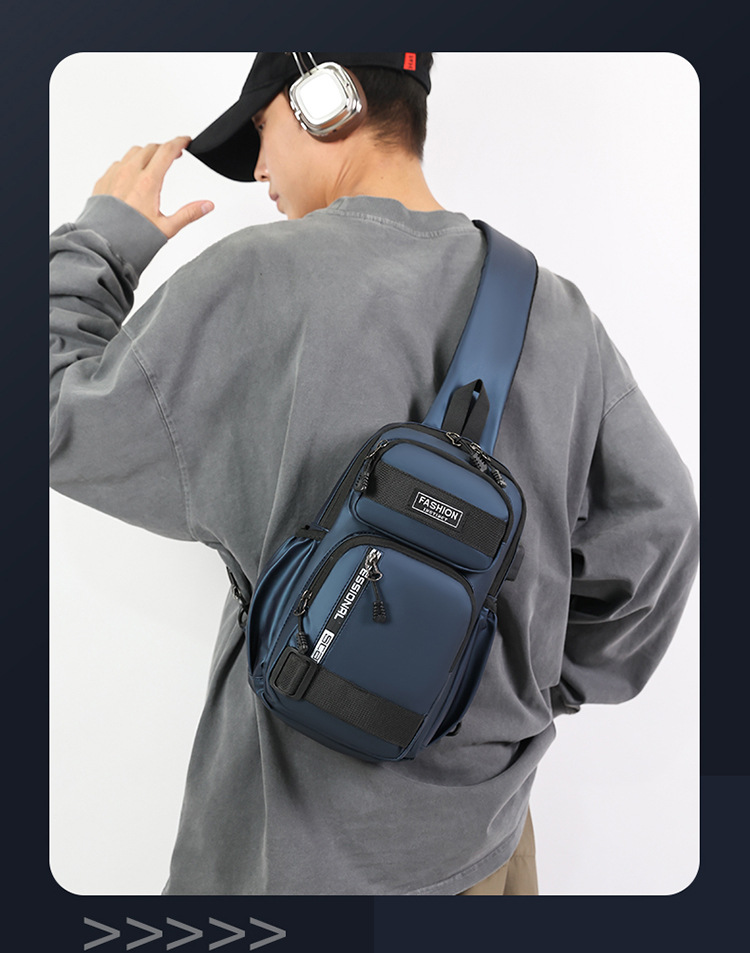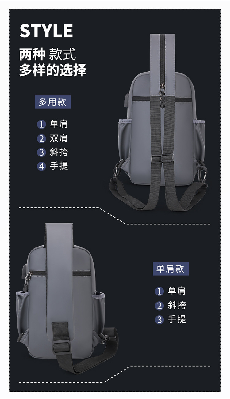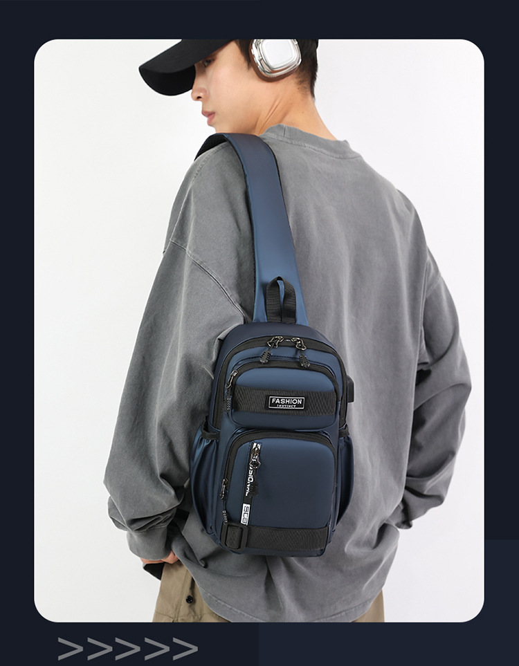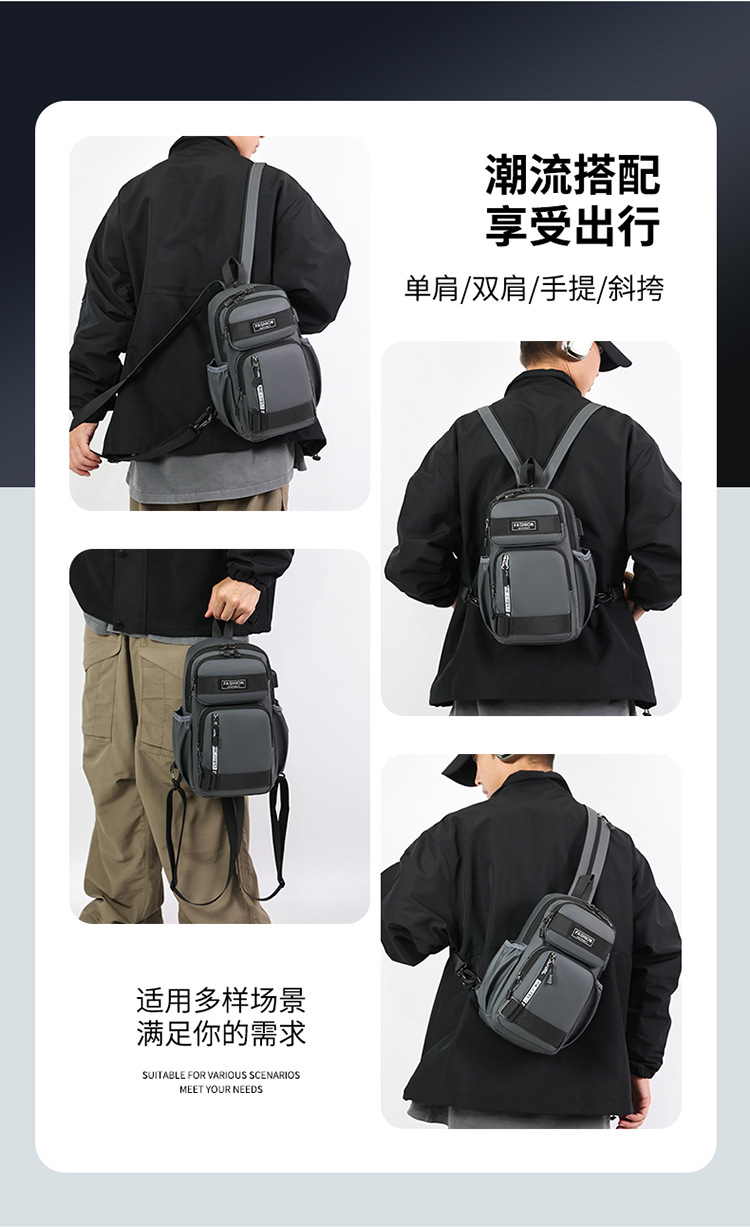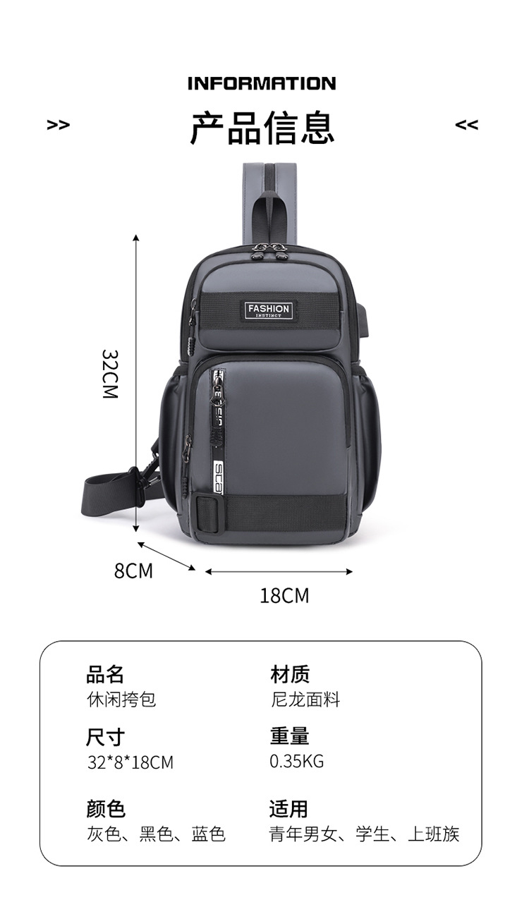 국경 간 새로운 USB 충전 가슴 가방 어깨 가방 방수 내마모성 배낭 비즈니스 휴대용 크로스 바디 백