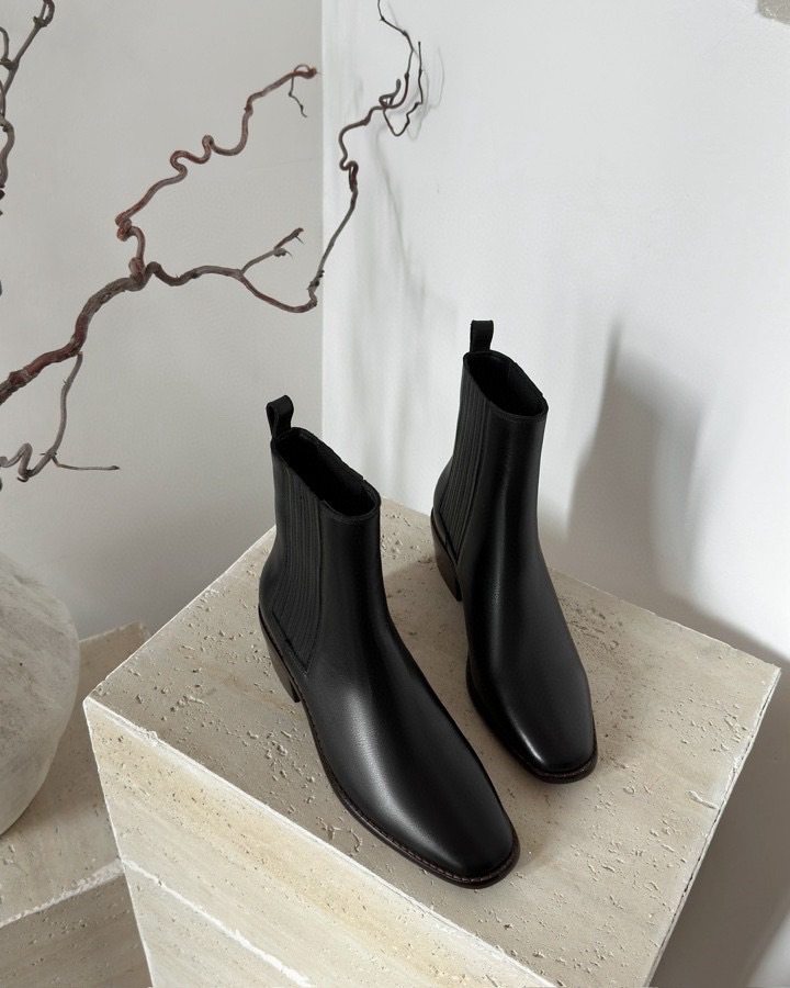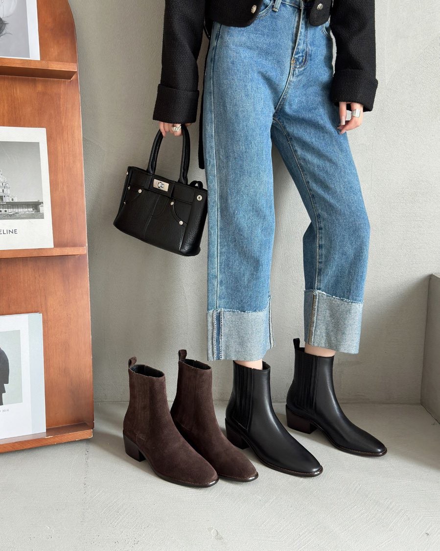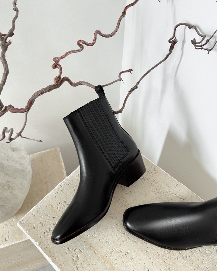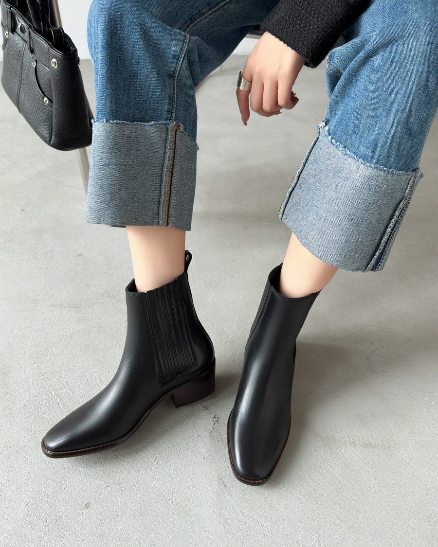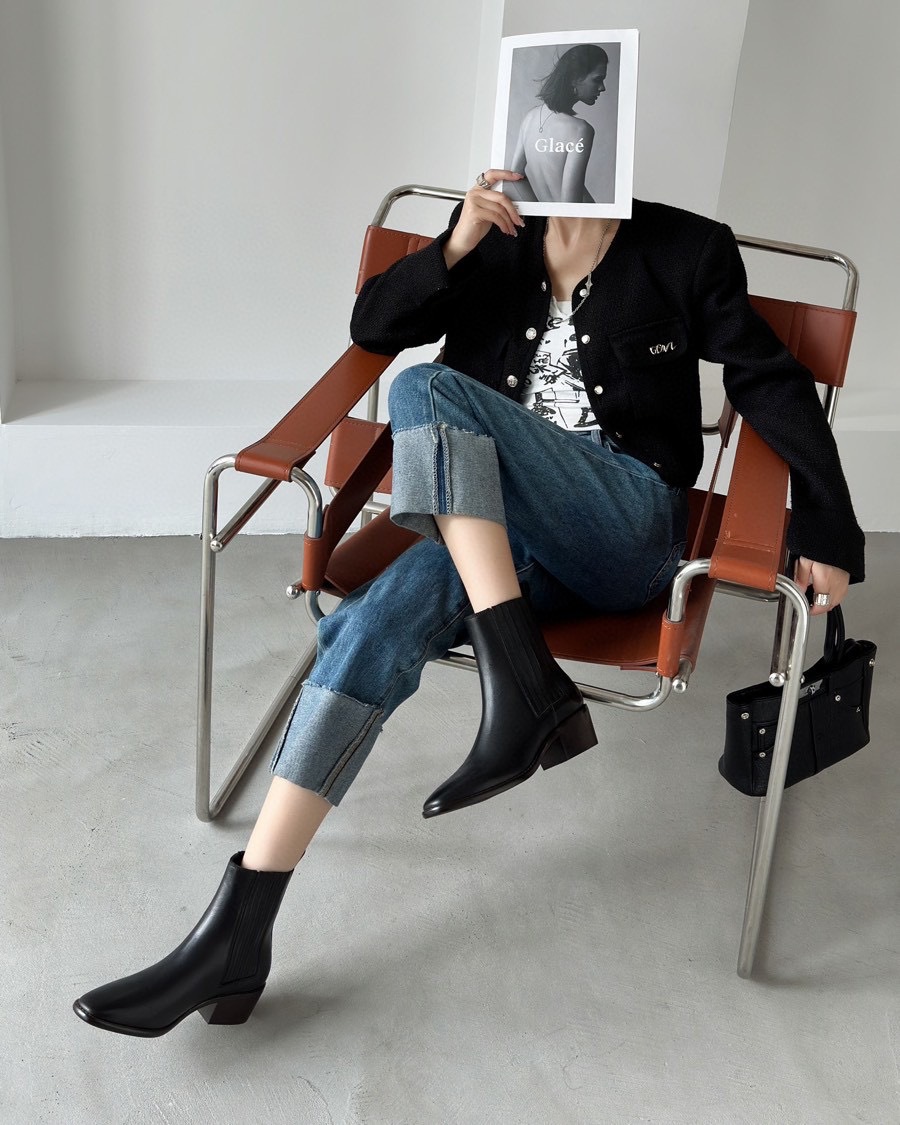 새로운 여성 신발 미니멀리스트 올드 머니 스타일 프렌치 스퀘어 토이와 미드 힐 씬 부츠 스택 레트로 라이트 통근자 마틴 부츠 여성스토어 가기