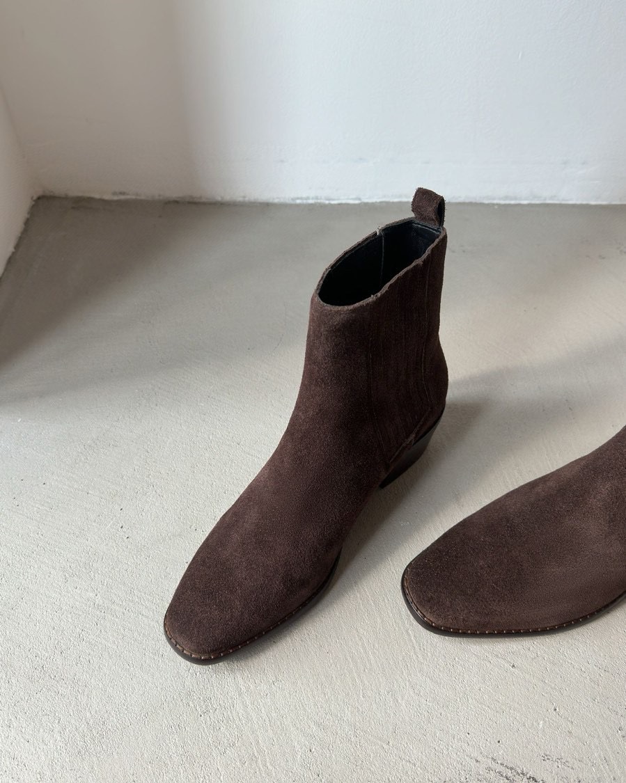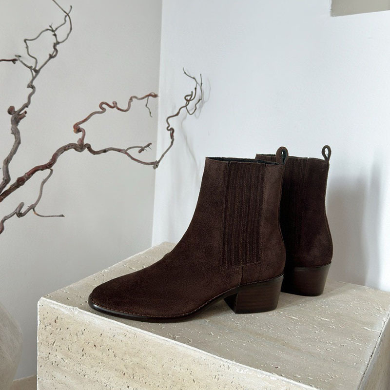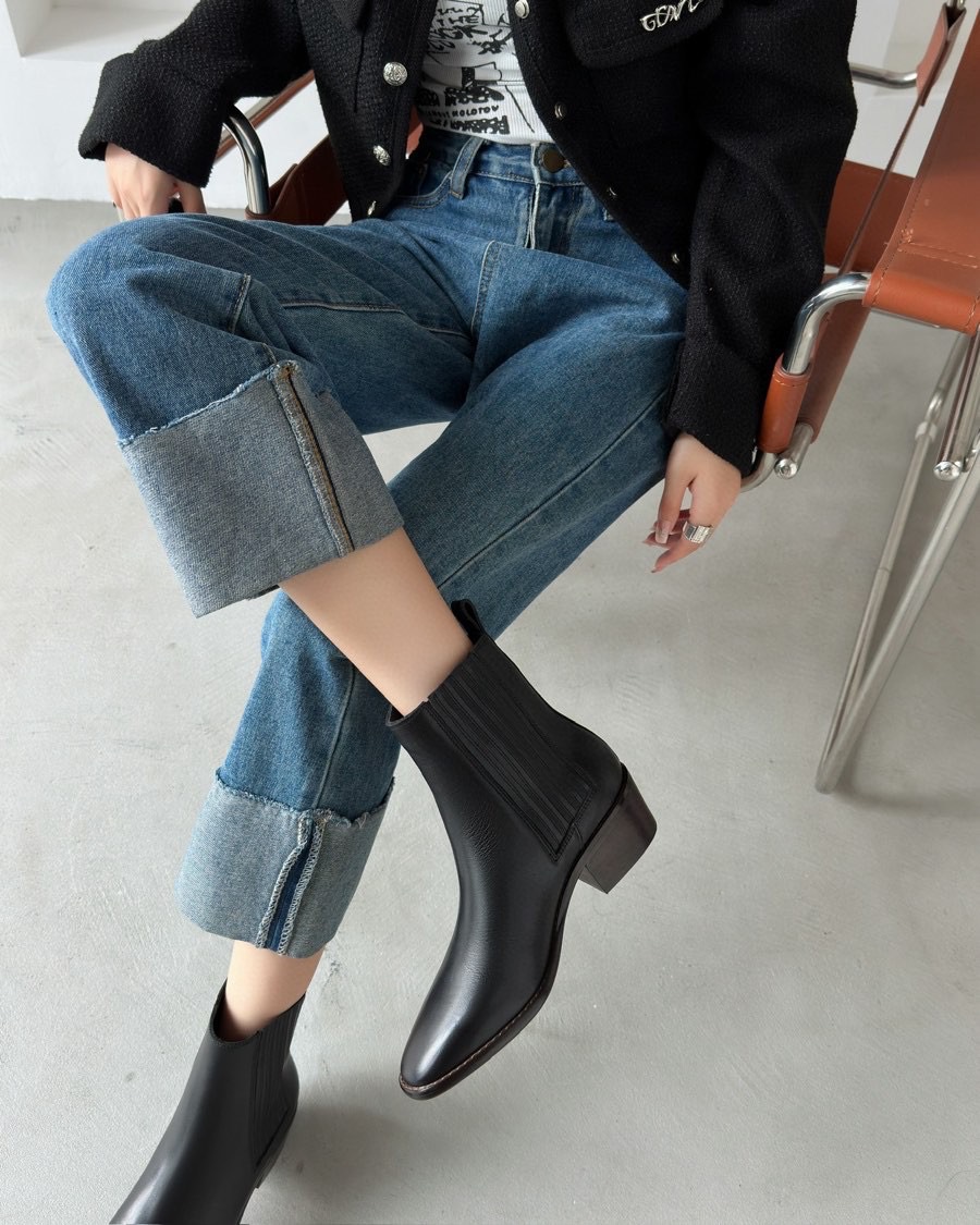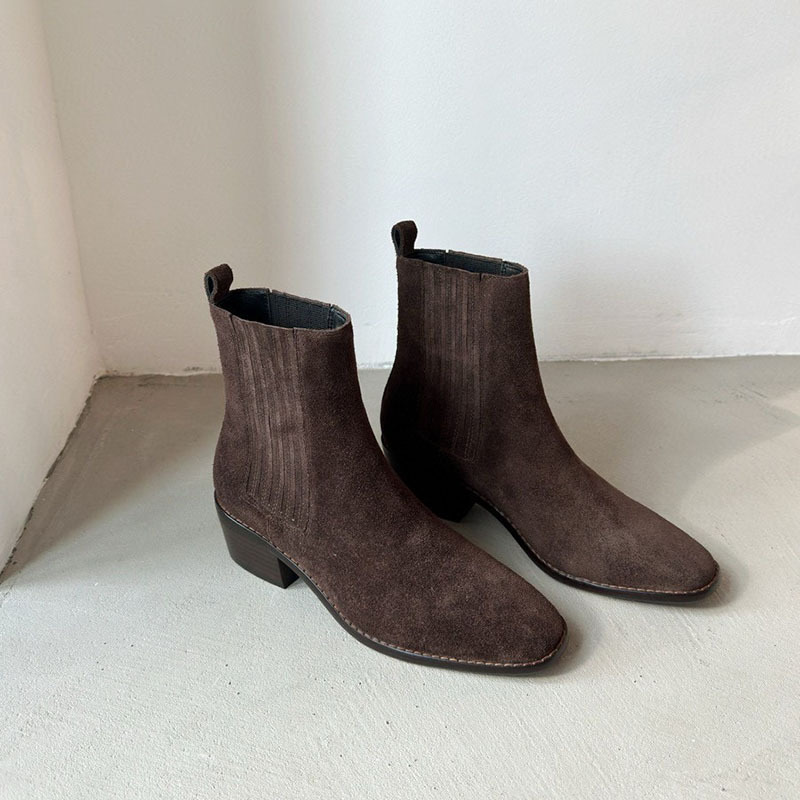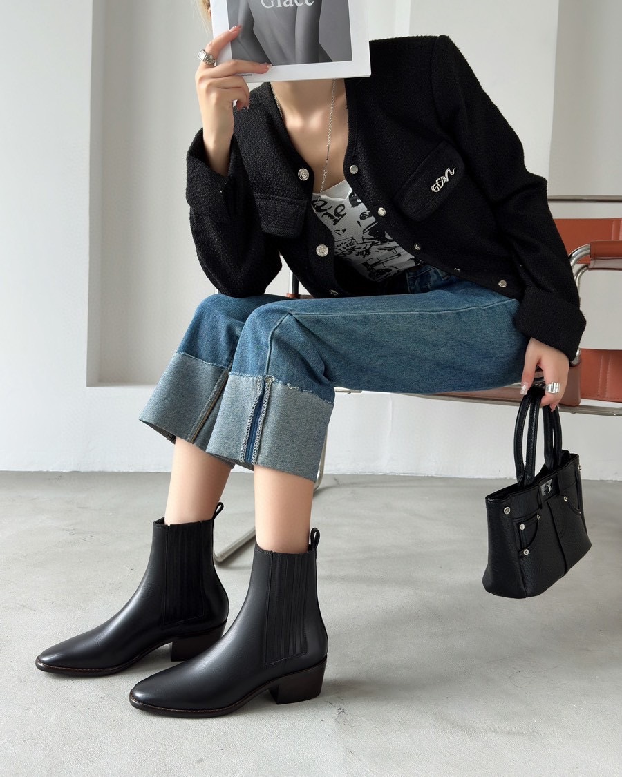 새로운 여성 신발 미니멀리스트 올드 머니 스타일 프렌치 스퀘어 토이와 미드 힐 씬 부츠 스택 레트로 라이트 통근자 마틴 부츠 여성스토어 가기