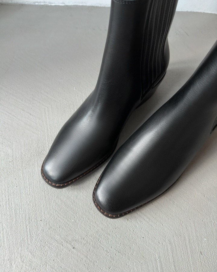새로운 여성 신발 미니멀리스트 올드 머니 스타일 프렌치 스퀘어 토이와 미드 힐 씬 부츠 스택 레트로 라이트 통근자 마틴 부츠 여성
