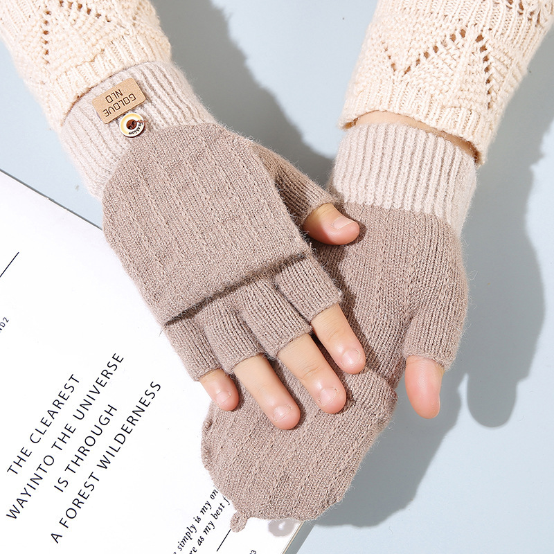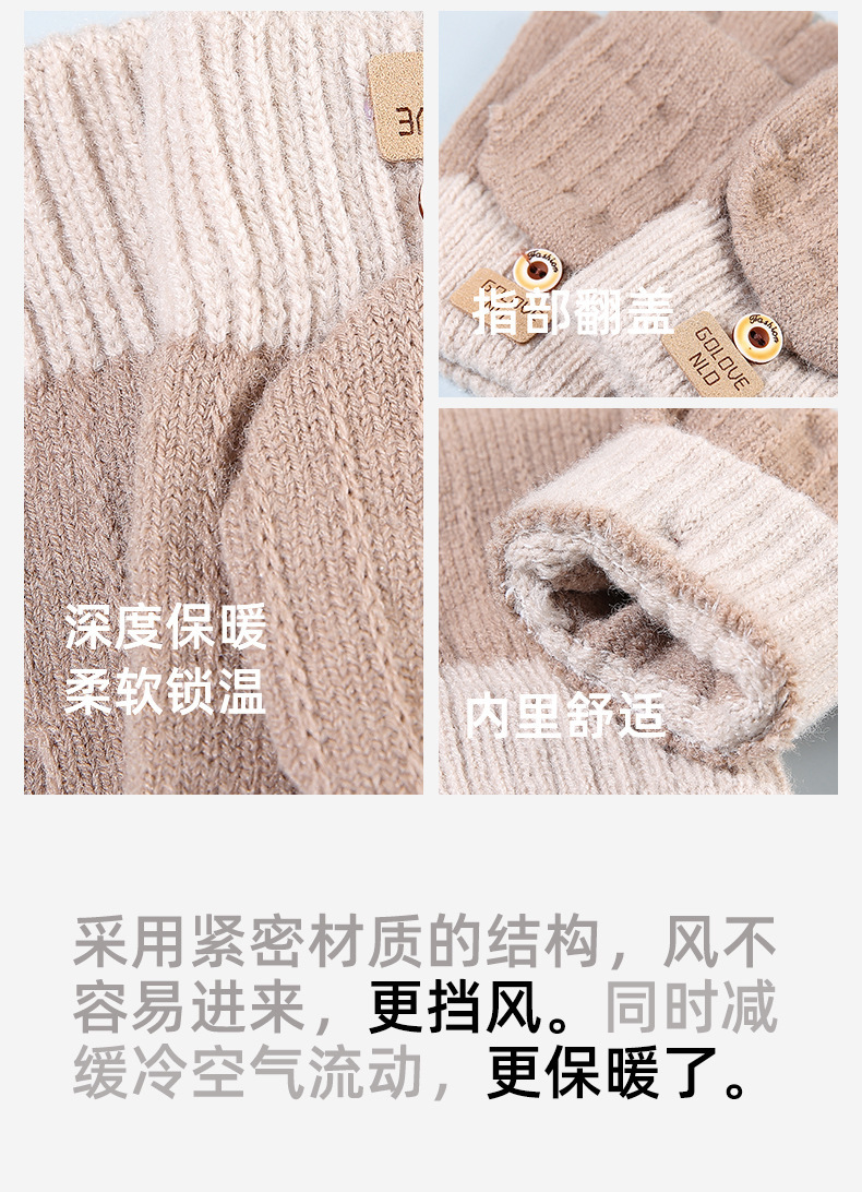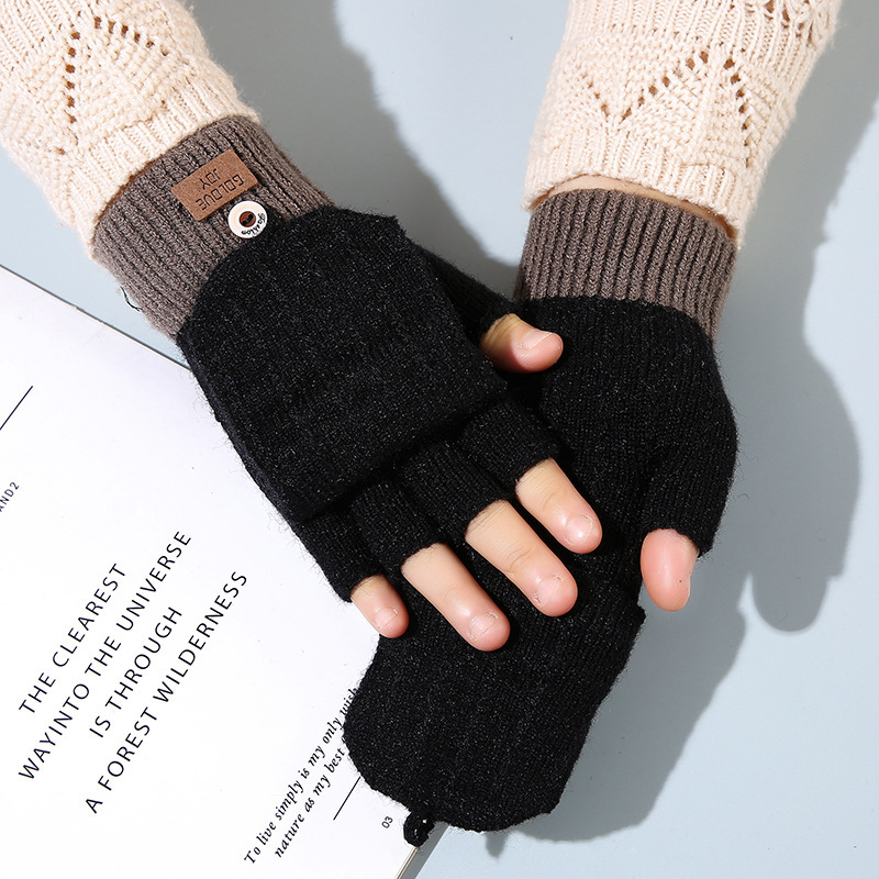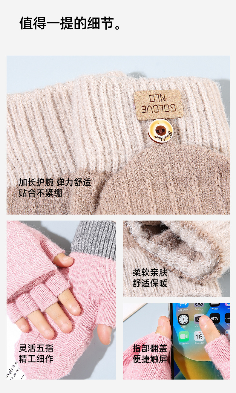 加厚内拉绒冬保暖半指手套男女半截翻盖成人学生写字开车玩手机新