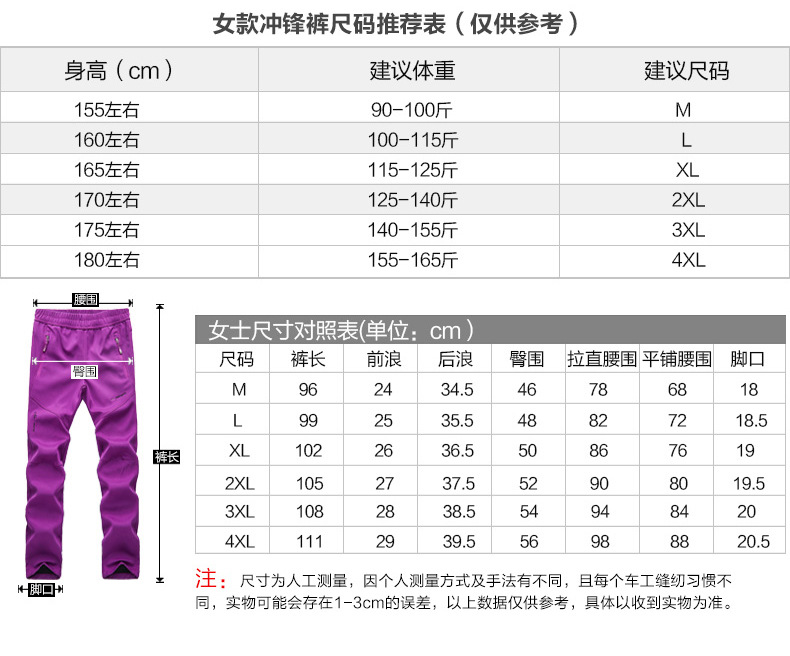 남성과 여성을위한 새로운 야외 기모 따뜻한 충전 바지 겨울 두꺼운 등산 스키