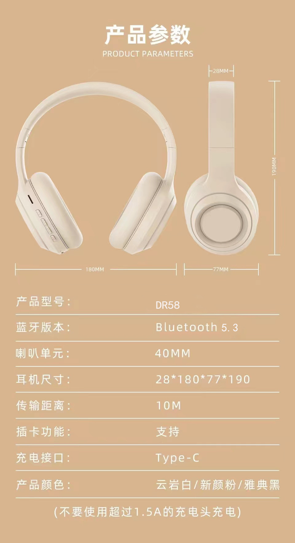 DR58 헤드셋 무선 블루투스 헤드셋 국경 간 폭발 활성 소음 감소 핫 E 스포츠 헤드셋이 장착 된 작은 빨간 책