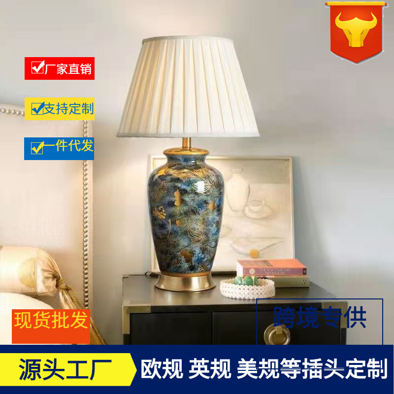 아메리칸 스타일 세라믹 테이블 램프 복고풍 침실 연구 침실 모델 룸 장식 테이블 램프 간단한 빌라 창조적 인 테이블 램프