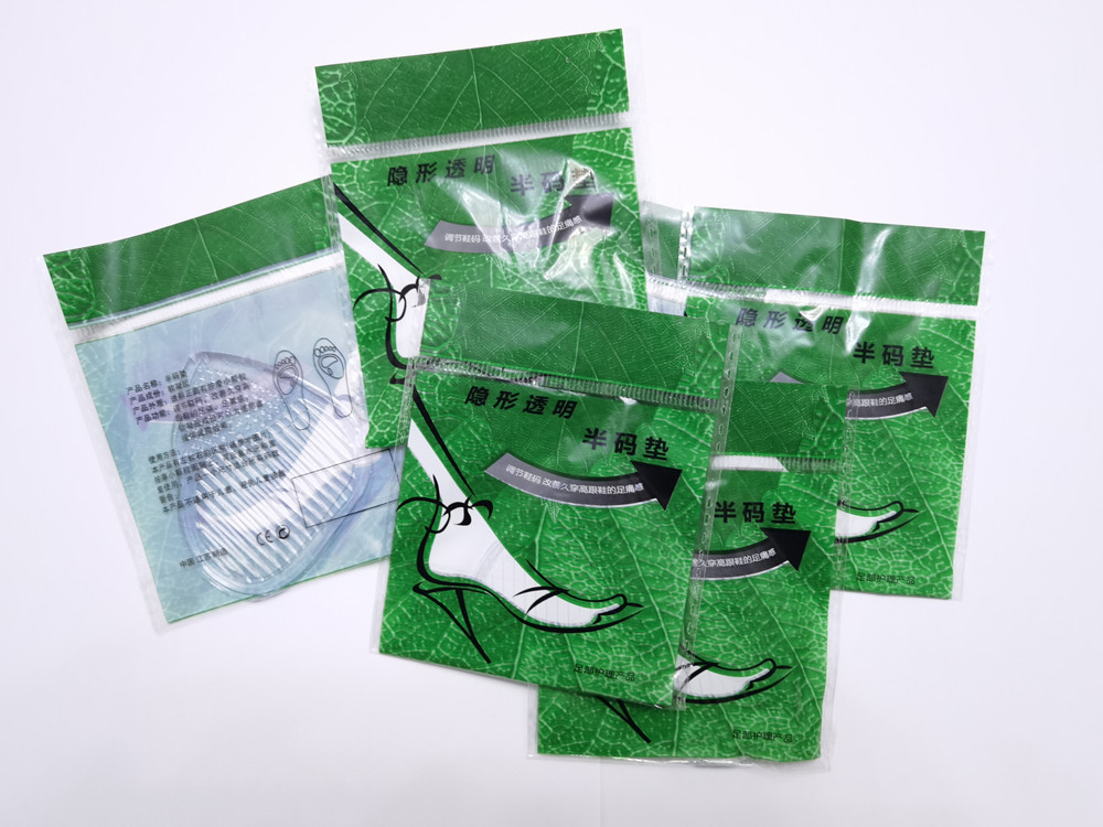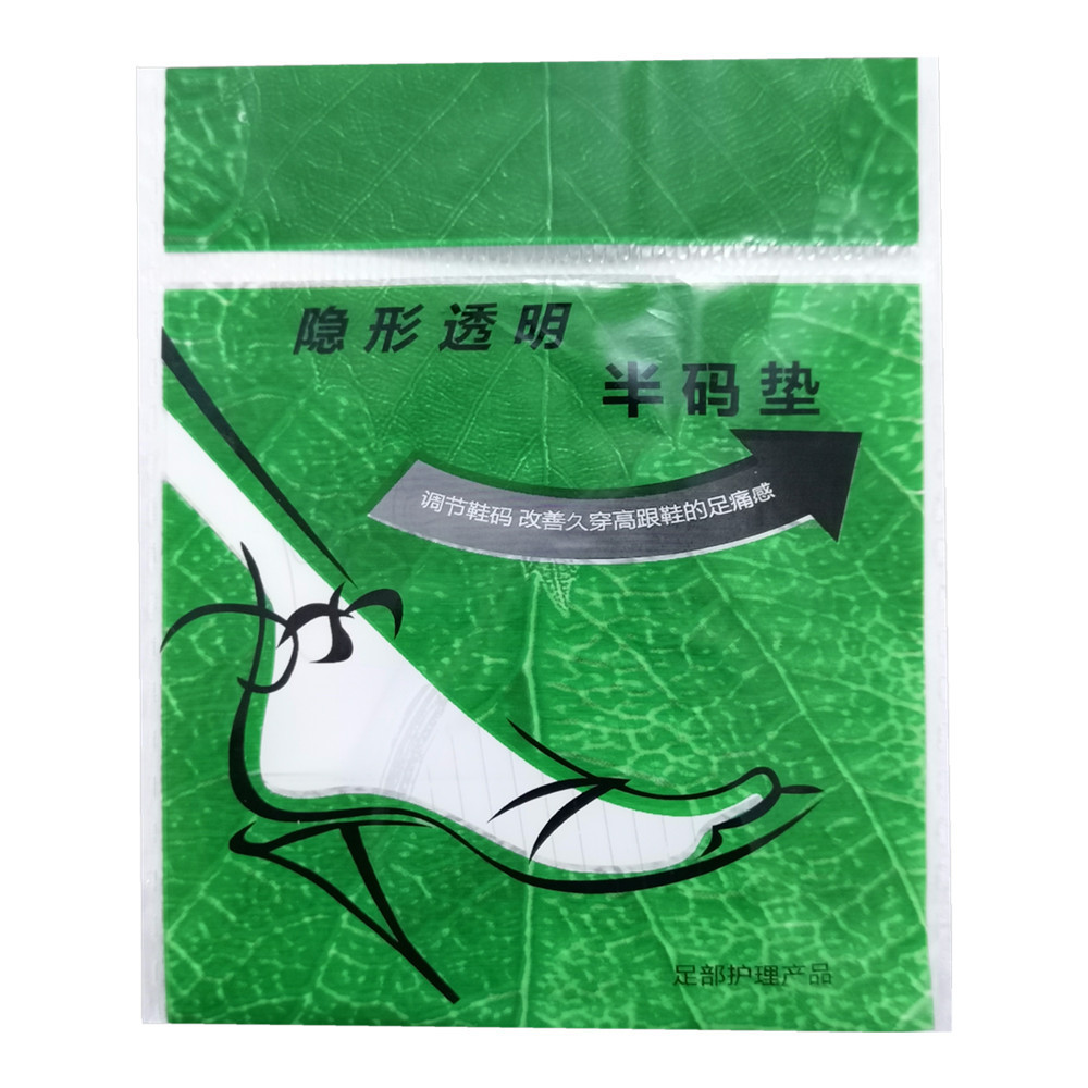 녹색 가방 투명 실리콘 앞발 패드 크리스탈 깔창 절반 크기 패드 보이지 않는 조정 가능한 신발 크기 제조 업체 도매 숙녀 신발스토어 가기