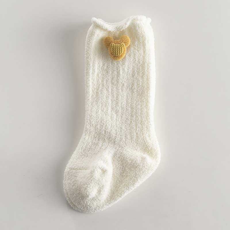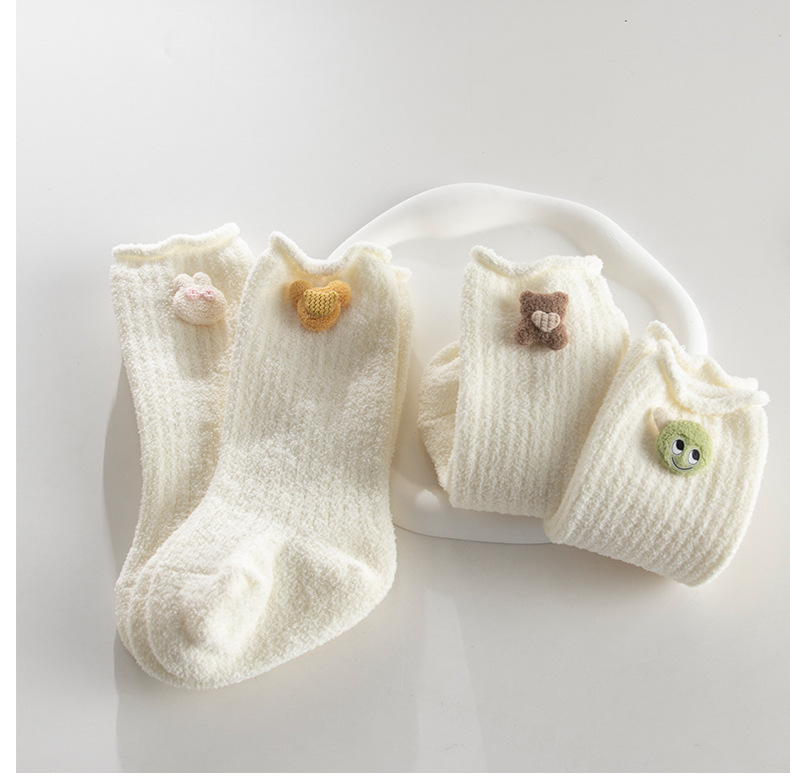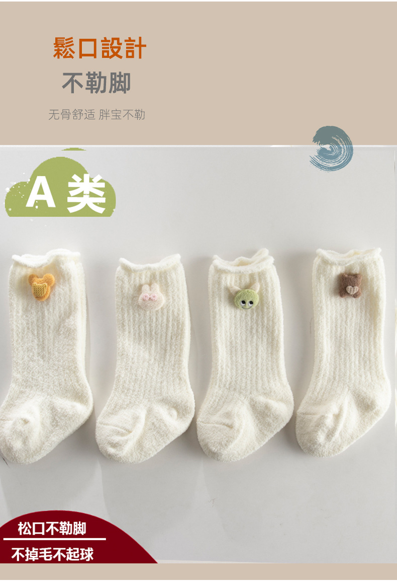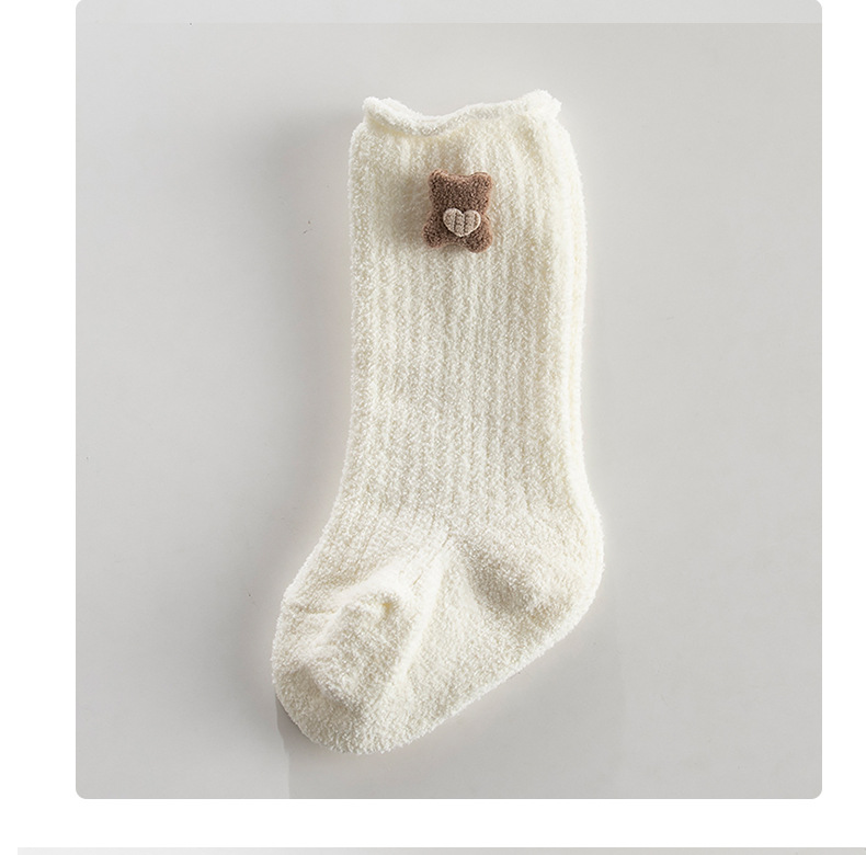 宝宝袜跨境立体小熊棉袜儿童防滑地板袜DIY中筒袜春秋松口袜复古
