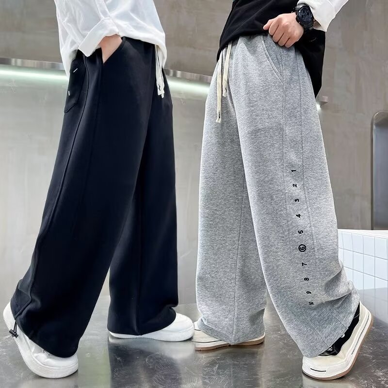 소년 스포츠 바지 2024 봄과 가을 새로운 중대형 어린이 와이드 레그 바지 소년 가을 올 매치 캐주얼 발 바지