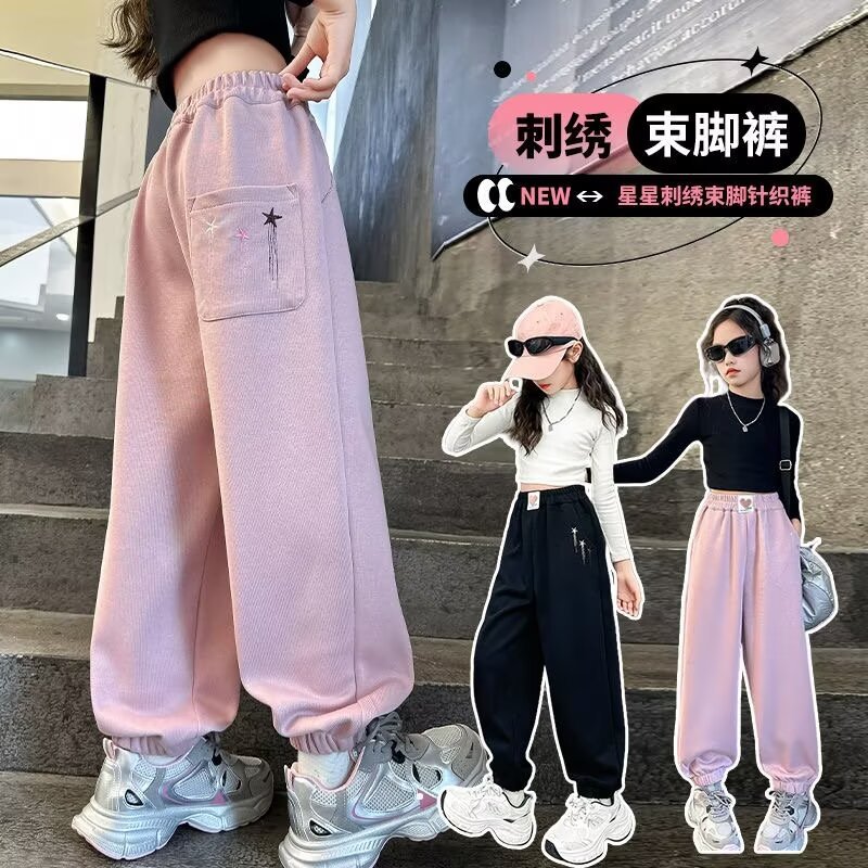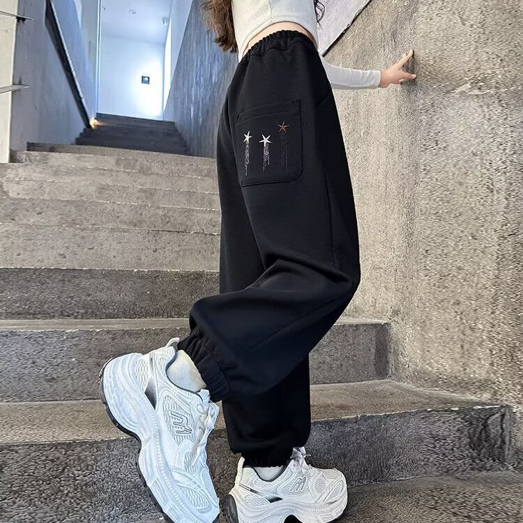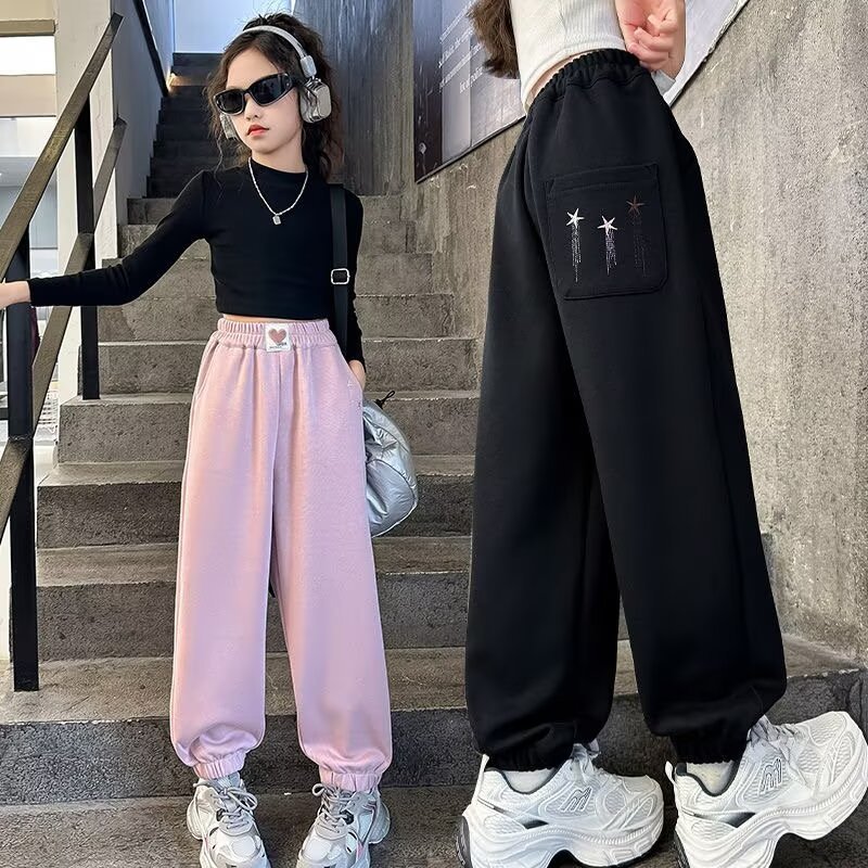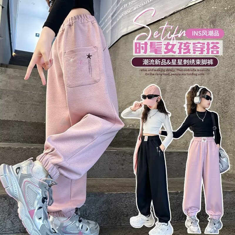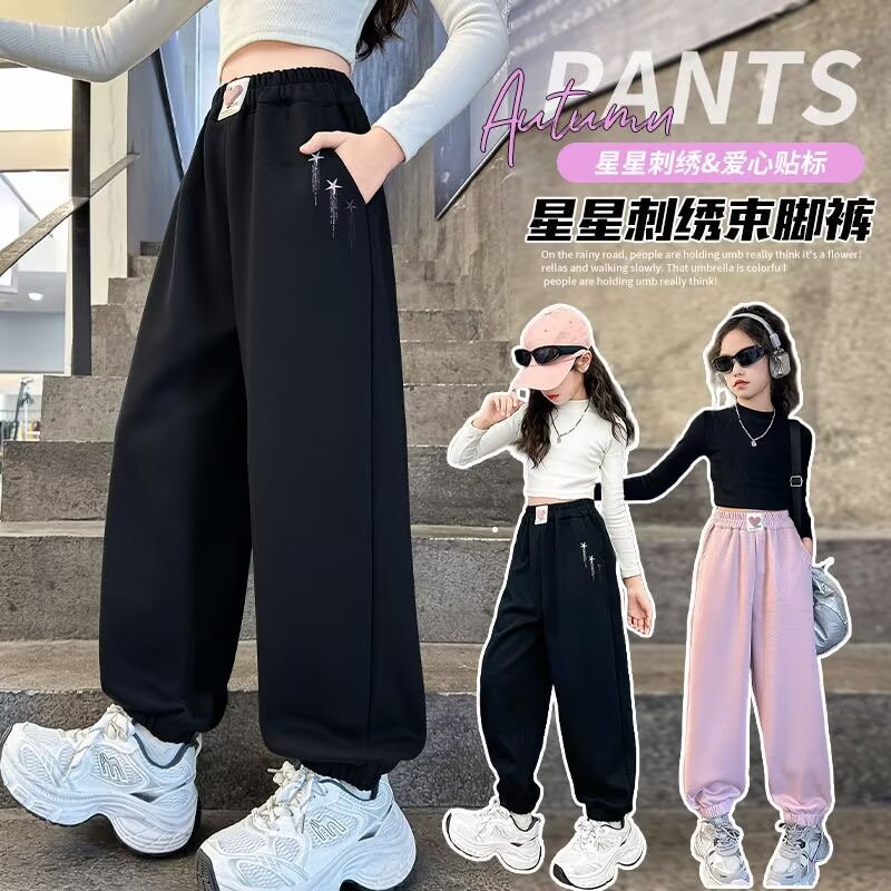 소녀 스웨트 팬츠 가을 2024 새로운 서양식 어린이 느슨한 캐주얼 바지 소녀의 봄과 가을 스포츠 바지스토어 가기