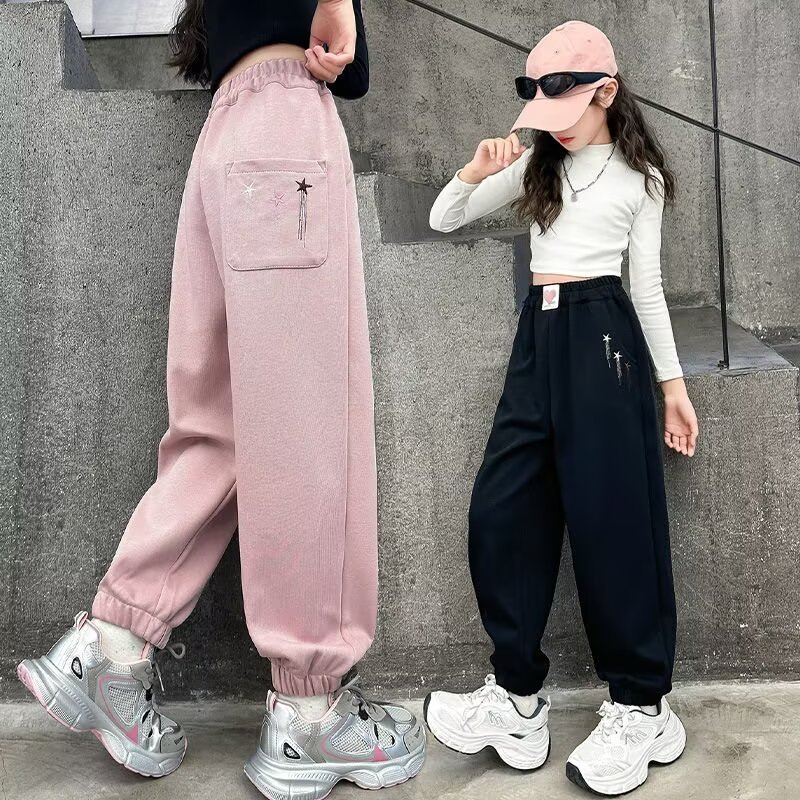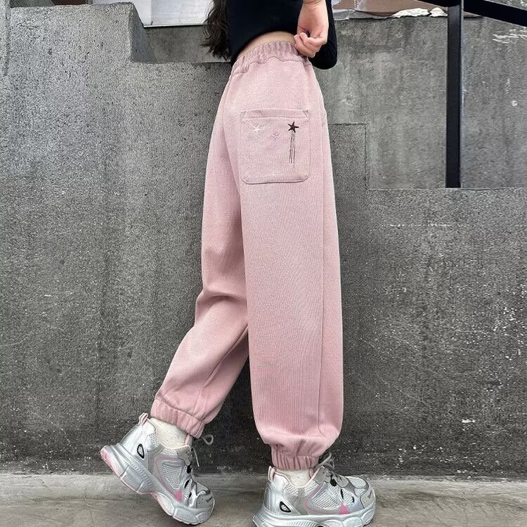 소녀 스웨트 팬츠 가을 2024 새로운 서양식 어린이 느슨한 캐주얼 바지 소녀의 봄과 가을 스포츠 바지