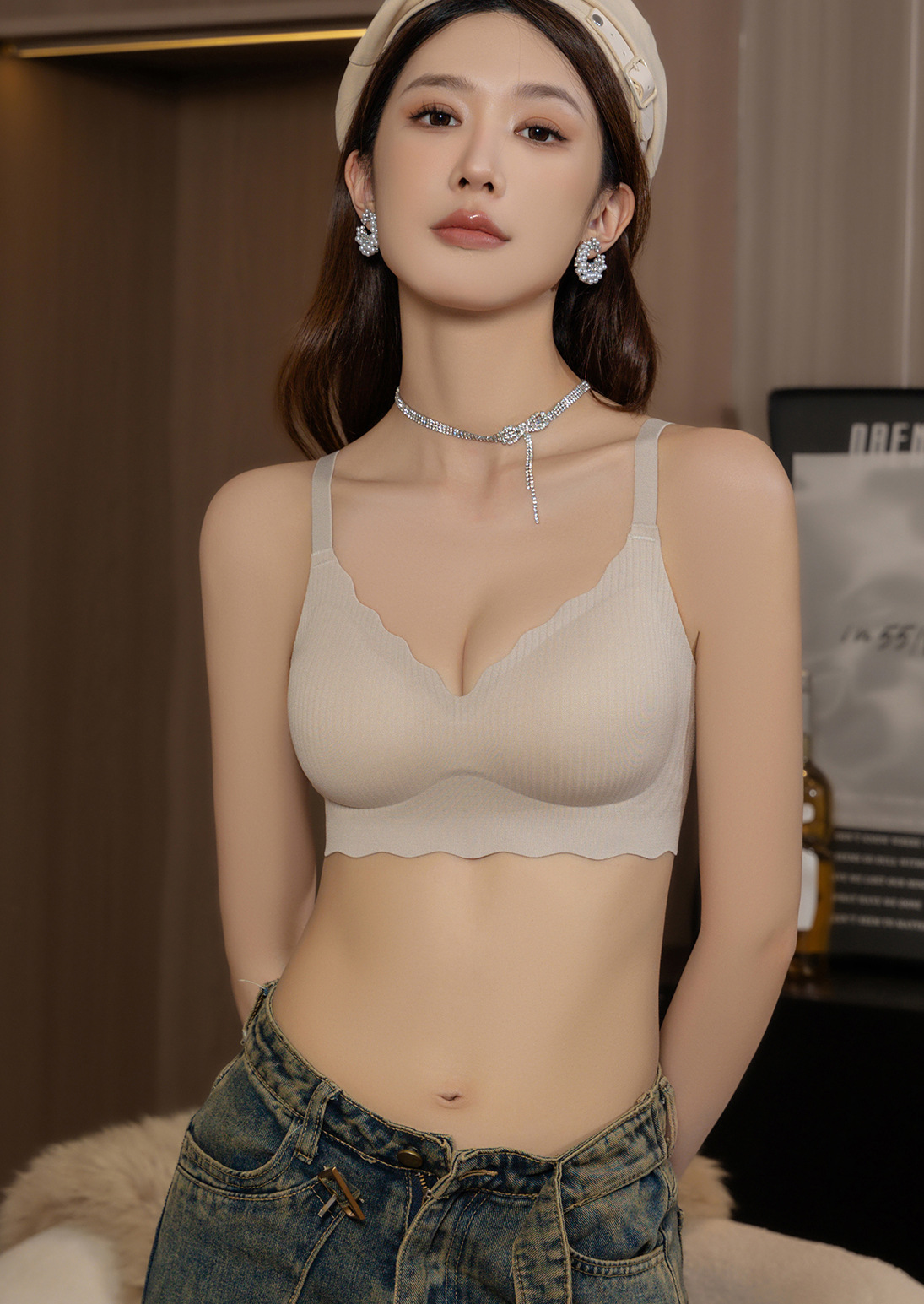 Tracless 속옷 여성의 여름 얇은 비 강철 반지 Parammary 유방 큰 가슴 작은 스포츠 뷰티 백 슬링 플러스 사이즈 텍스트 브래지어스토어 가기