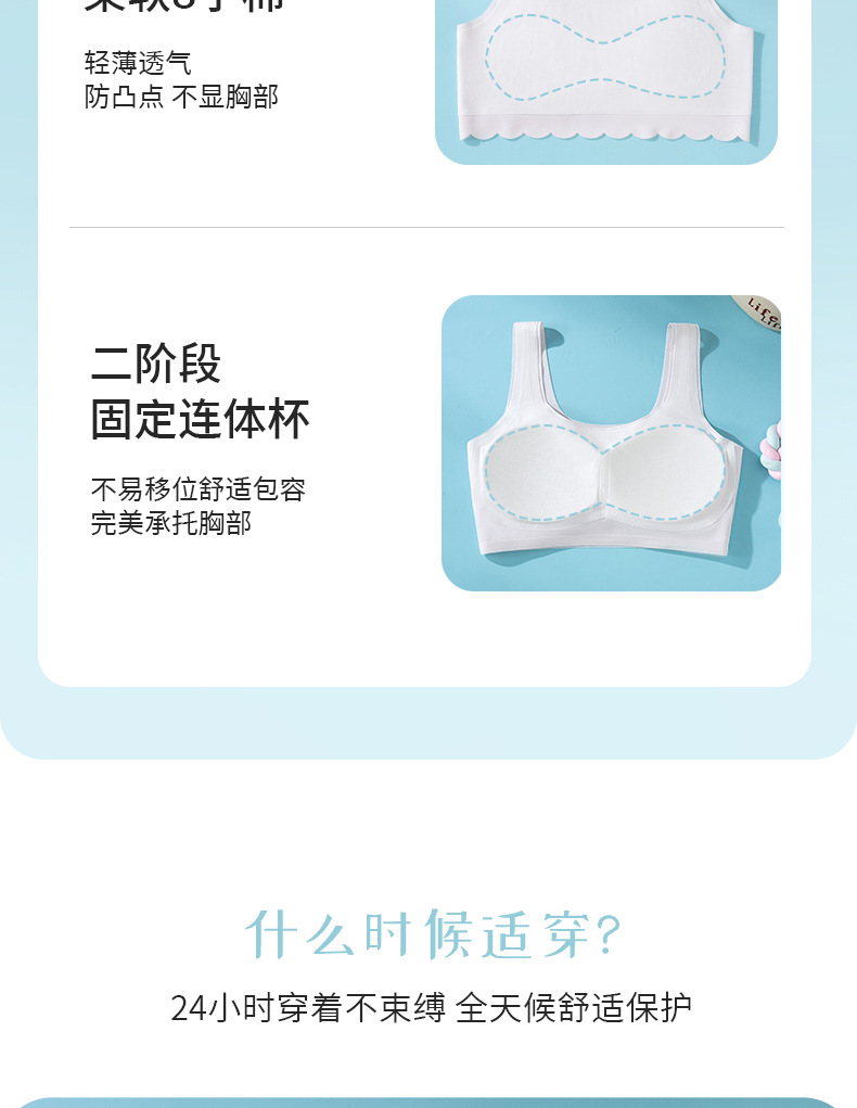 여아 속옷 1 차 발달 학생 소녀 조끼 통기성 어린이 여아용 브래지어 스틸 링 안티 범프