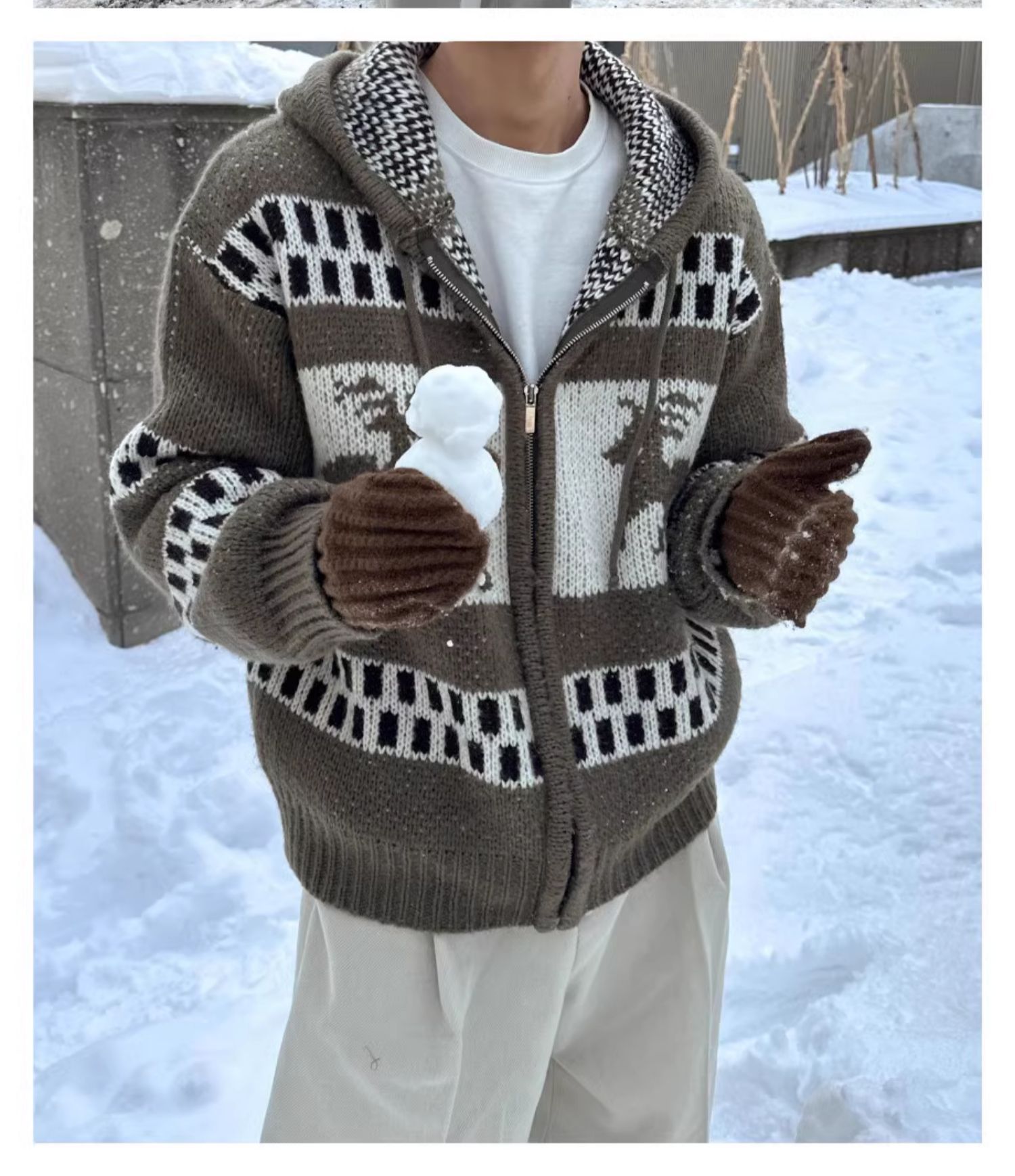 아메리칸 레트로 크리스마스 스웨터 남자 후드 겨울 페어 랜드 자카드 크리스마스 지퍼 게으른 스타일 카디건 니트 재킷