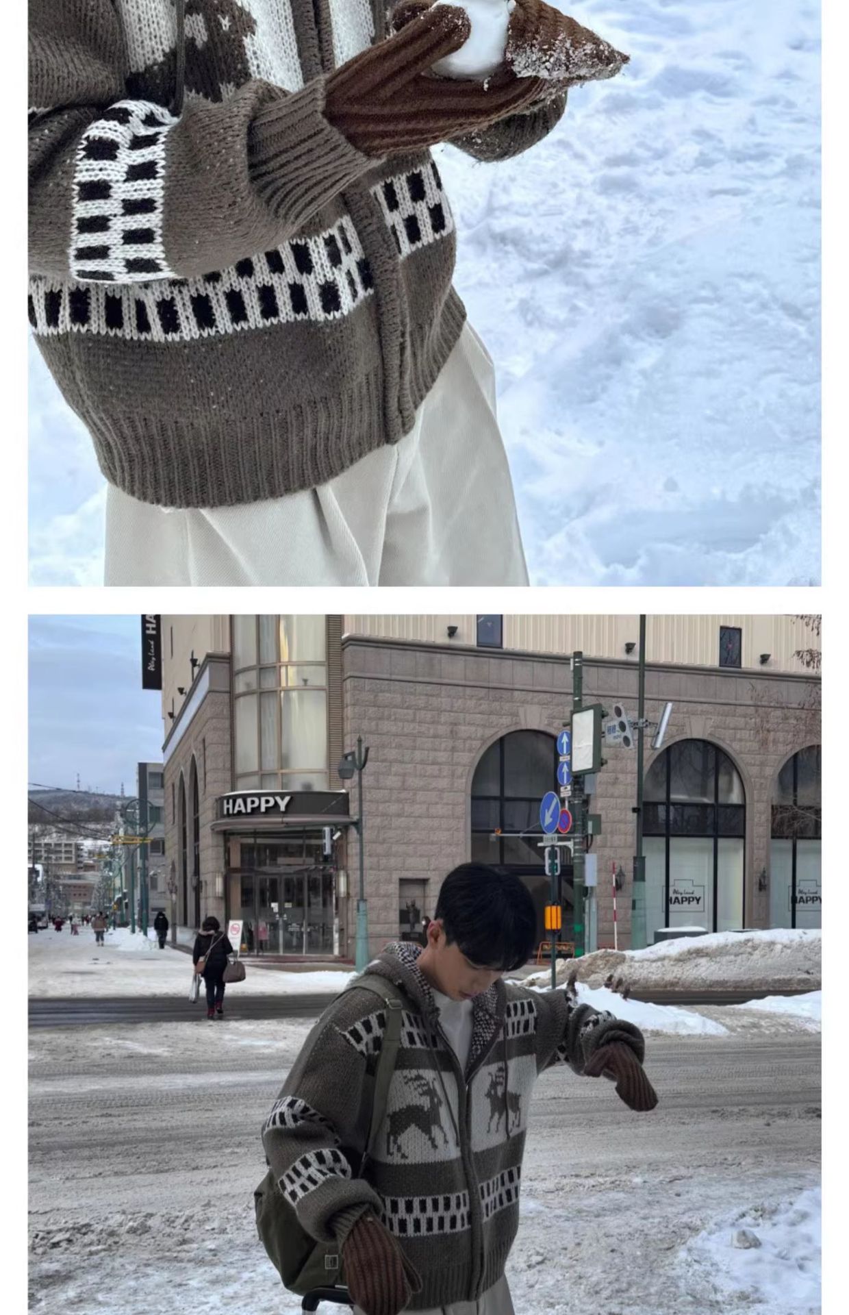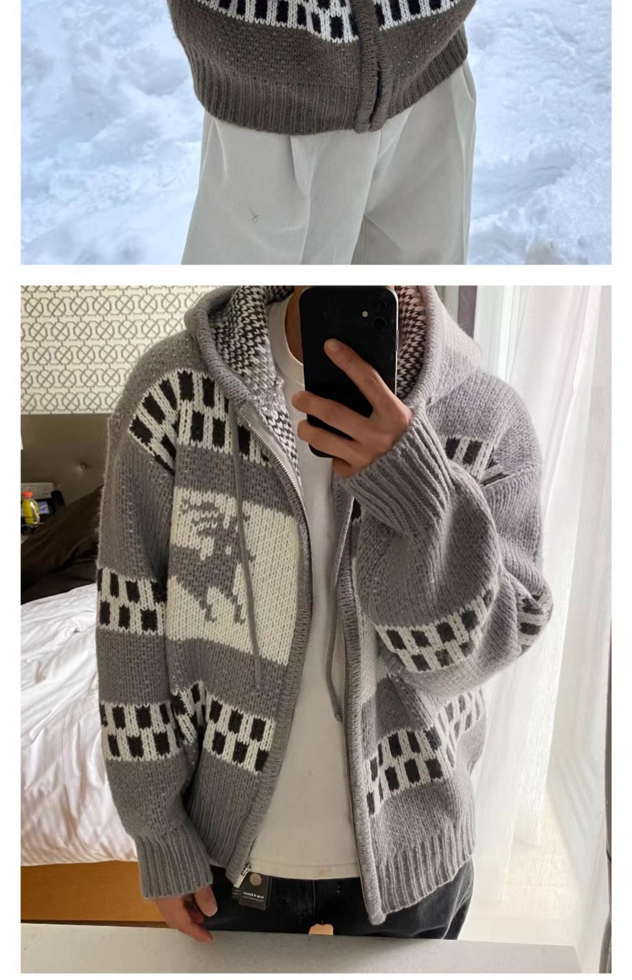 아메리칸 레트로 크리스마스 스웨터 남자 후드 겨울 페어 랜드 자카드 크리스마스 지퍼 게으른 스타일 카디건 니트 재킷스토어 가기