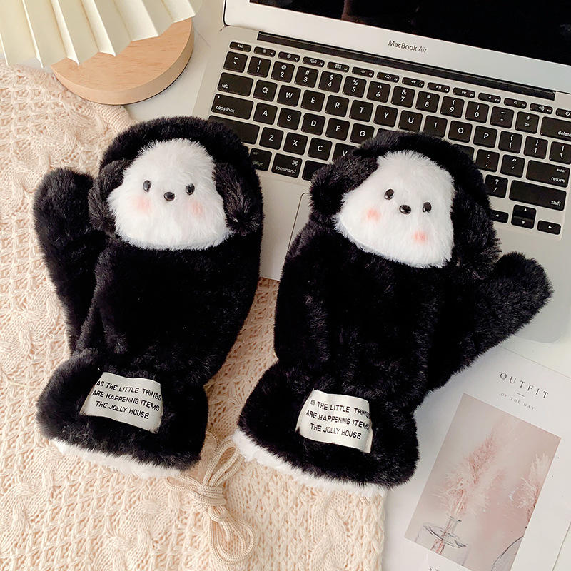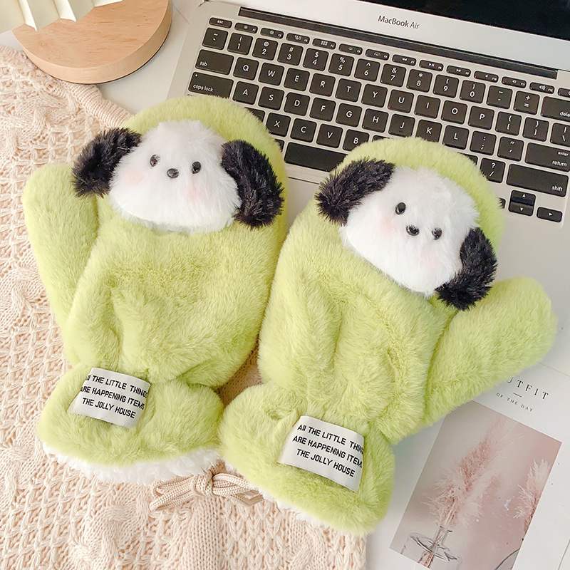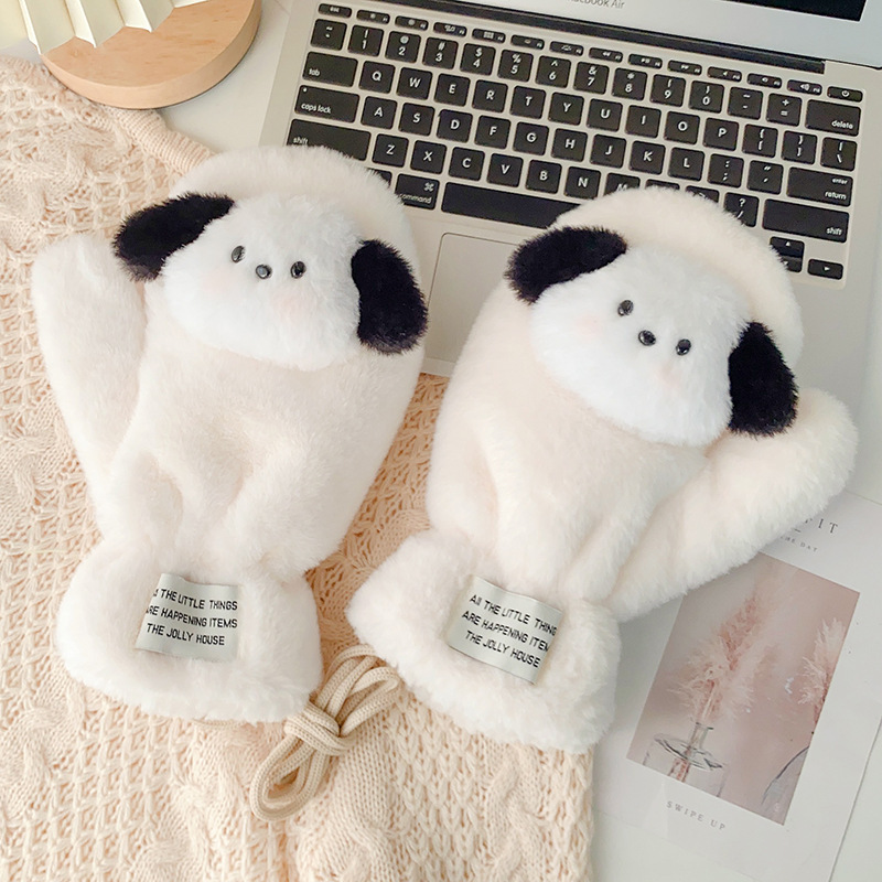 겨울 한국 스타일 만화 감기 따뜻한 봉제 두꺼운 내부 장갑 학생 승마 목 교수형 밧줄과 벨벳 장갑스토어 가기
