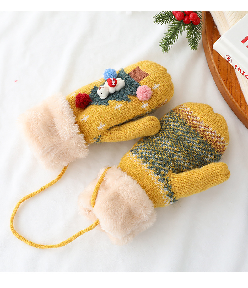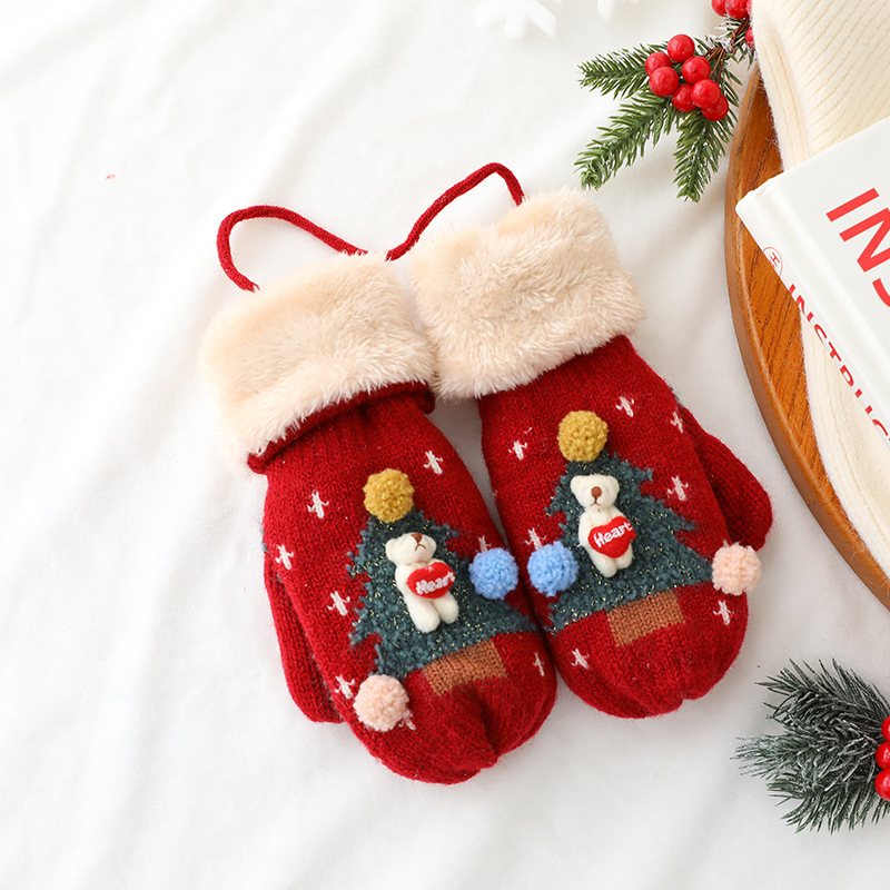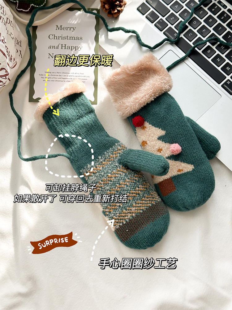 녹색 크리스마스 트리 울 장갑 여학생 귀여운 한국 스타일 겨울 따뜻한 기모 목 교수형 손가락스토어 가기