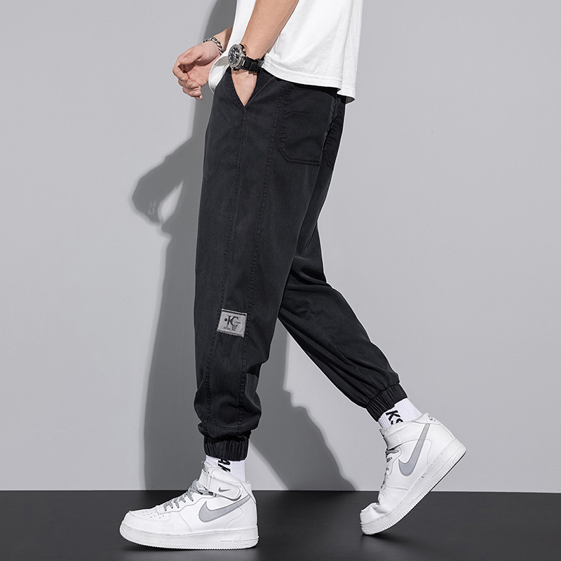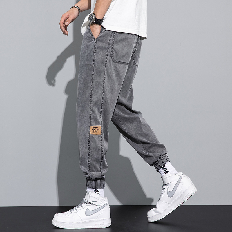 스트레치 다리 청바지 남성 봄과 가을 아이스 실크 얇은 캐주얼 툴링 패션 브랜드 쿨 루즈 자른 하렘 바지