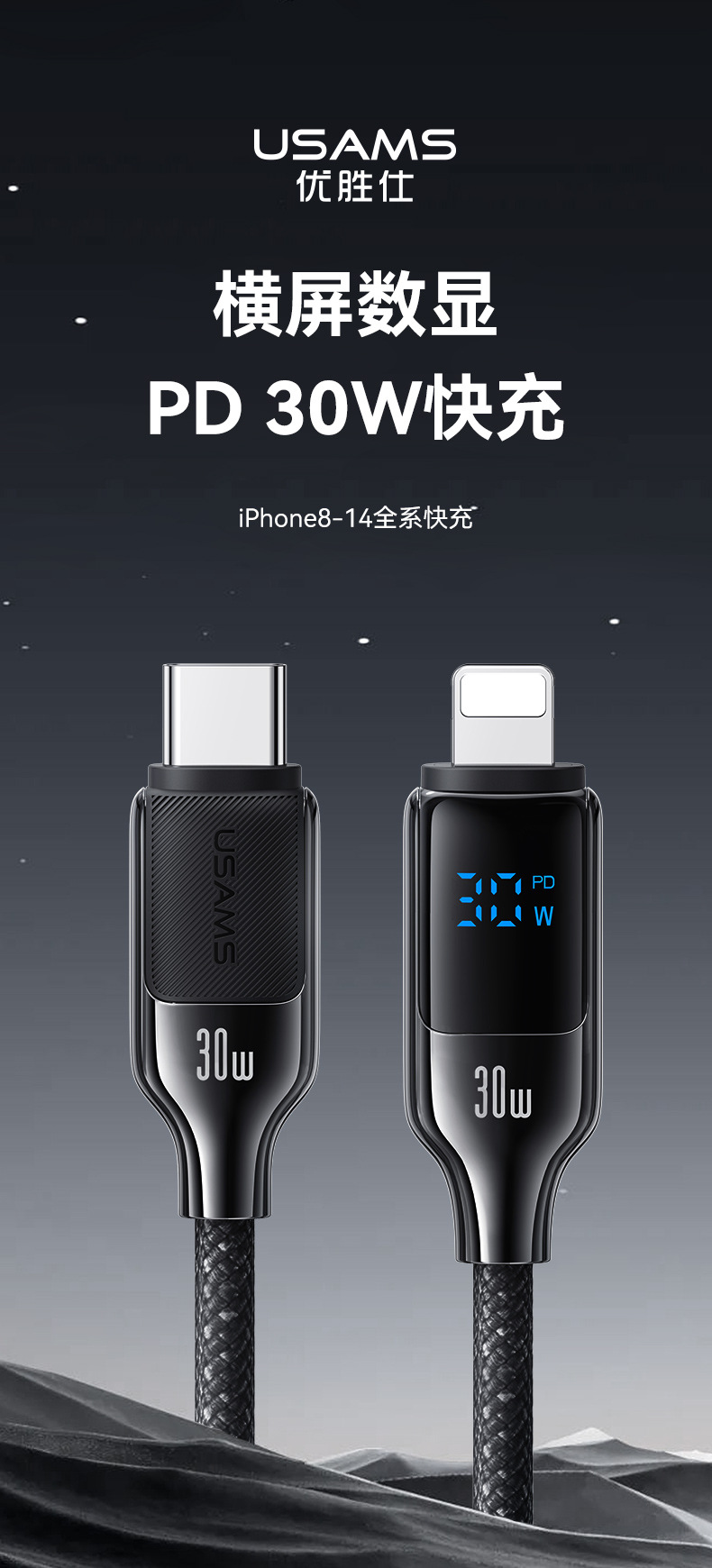 Yosheng 충전 라인 PD30W 전원 디지털 디스플레이 빠른 충전 라인 유형-c 적용 애플 16 휴대 전화 데이터 라인 14스토어 가기