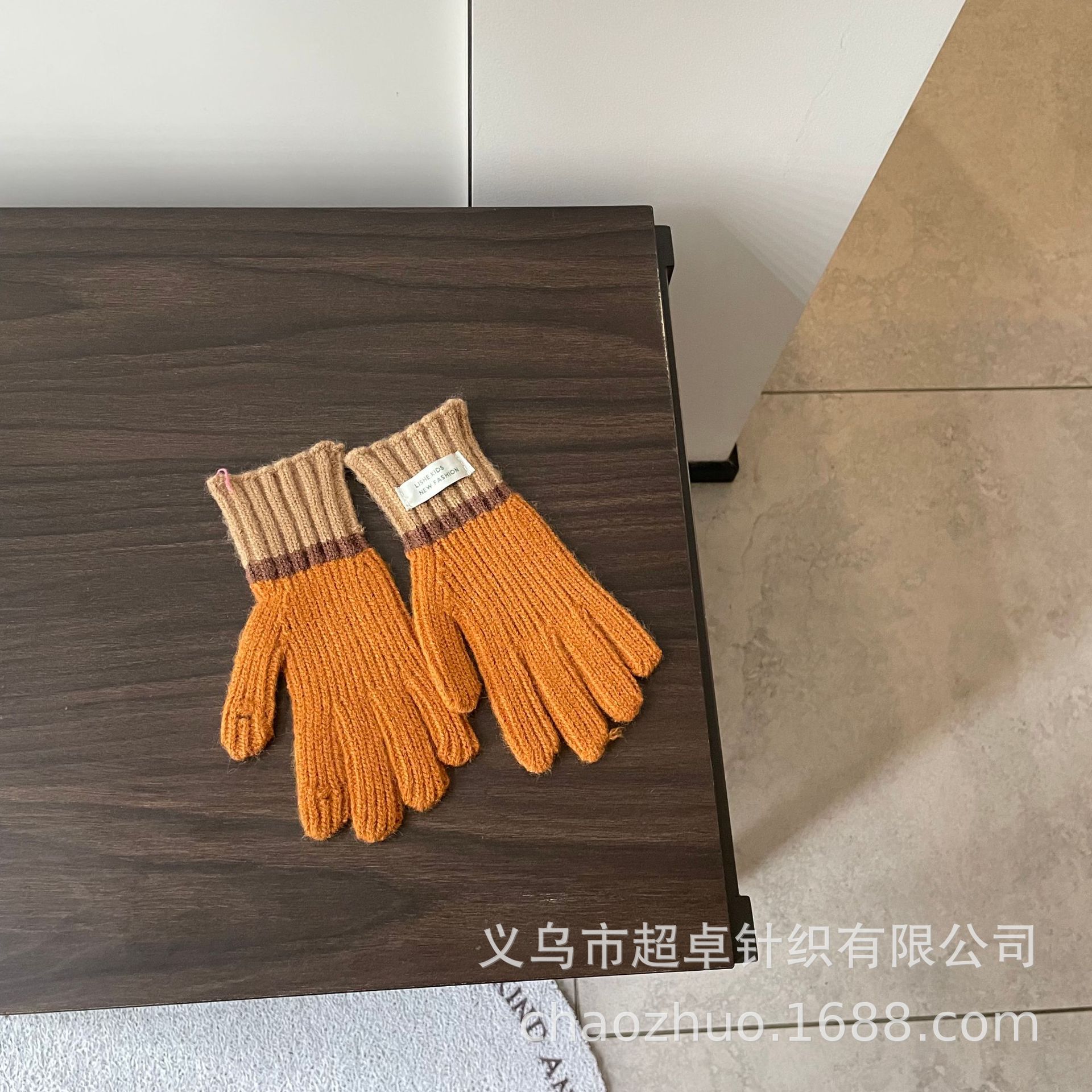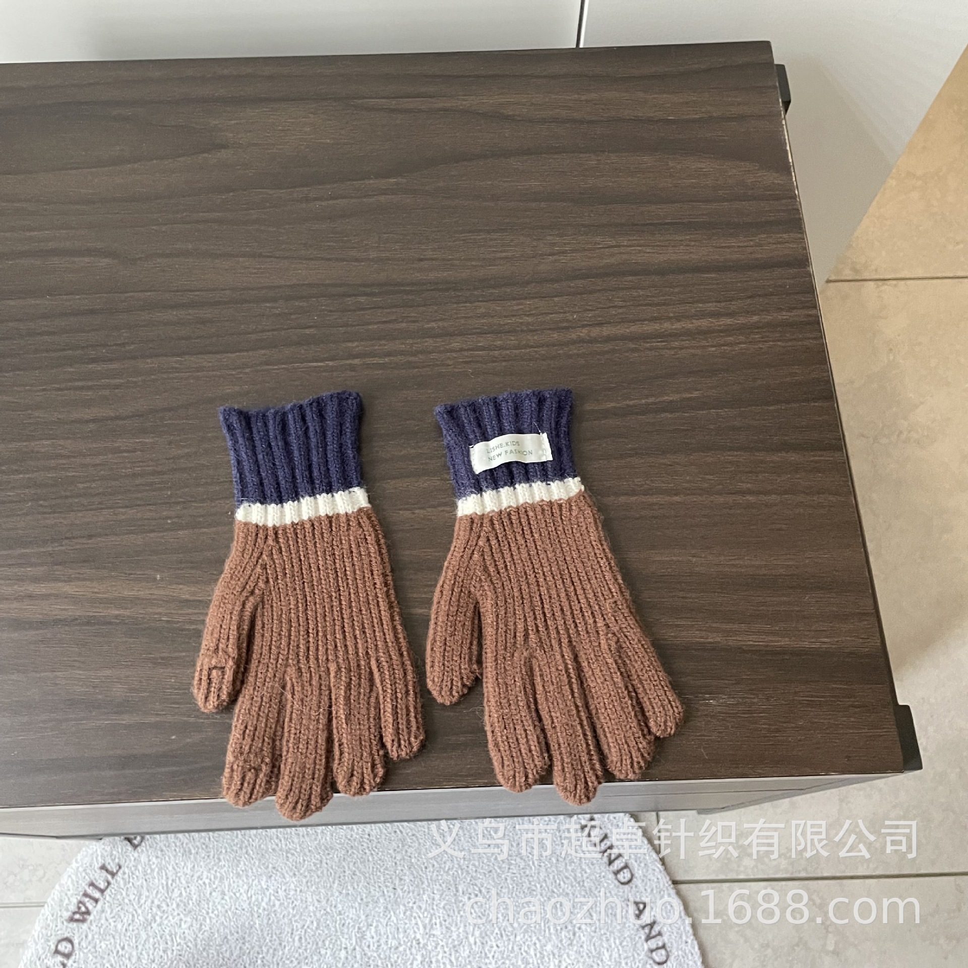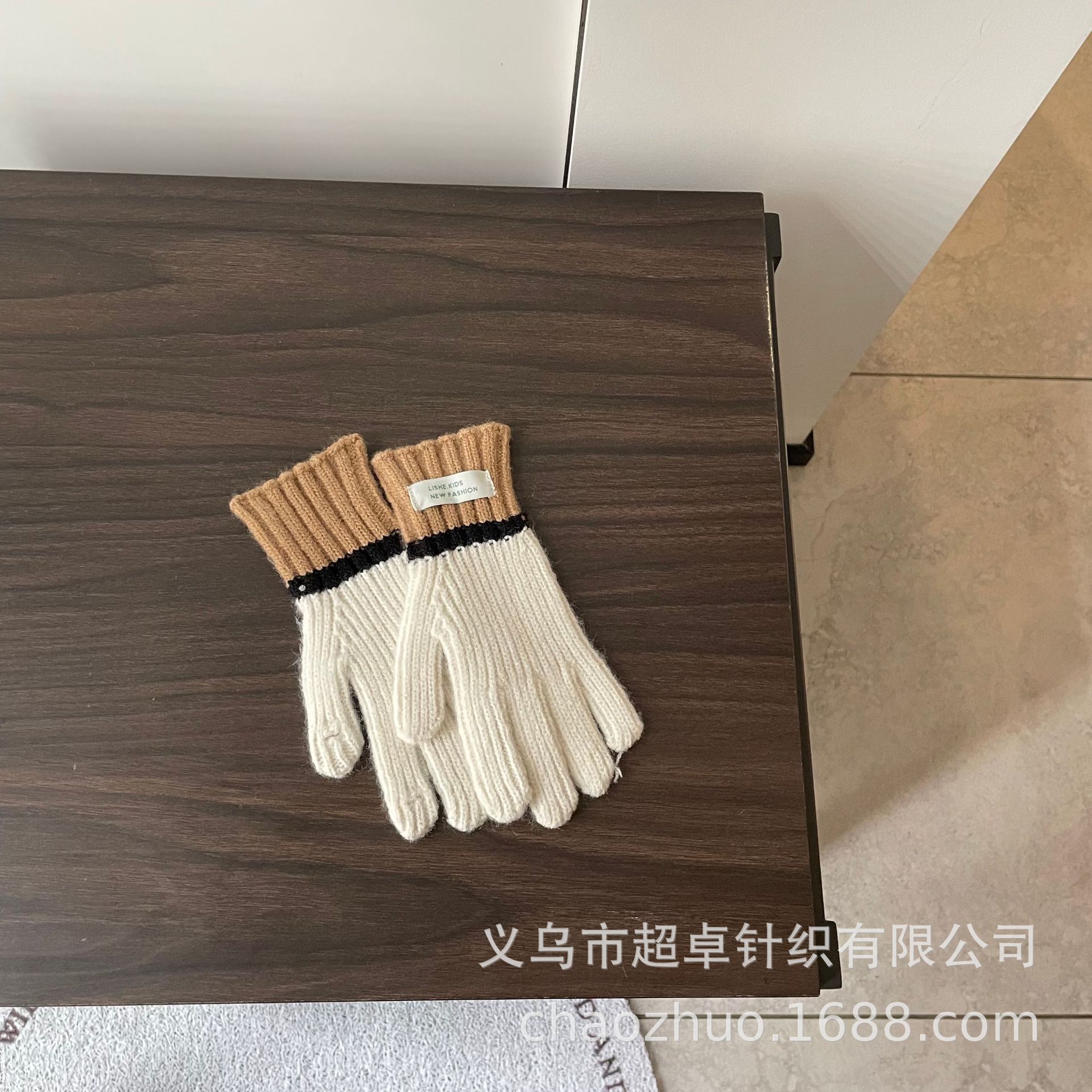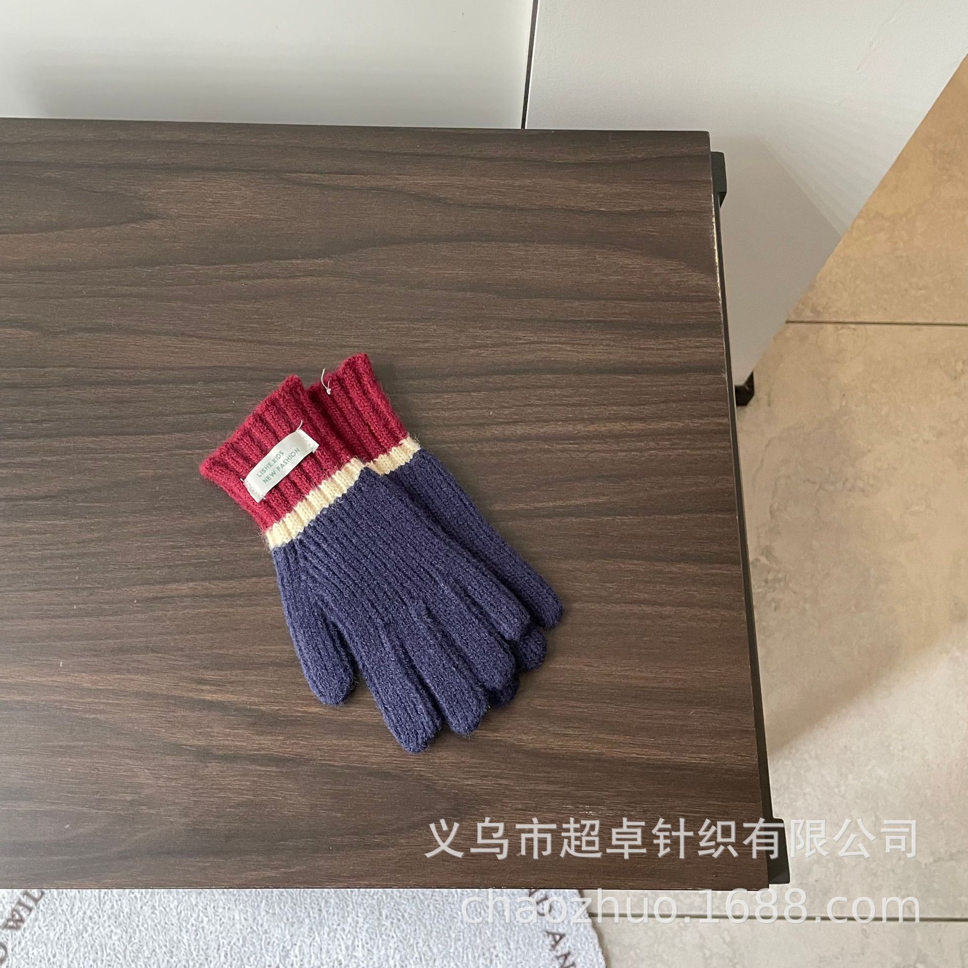儿童拼色针织手套