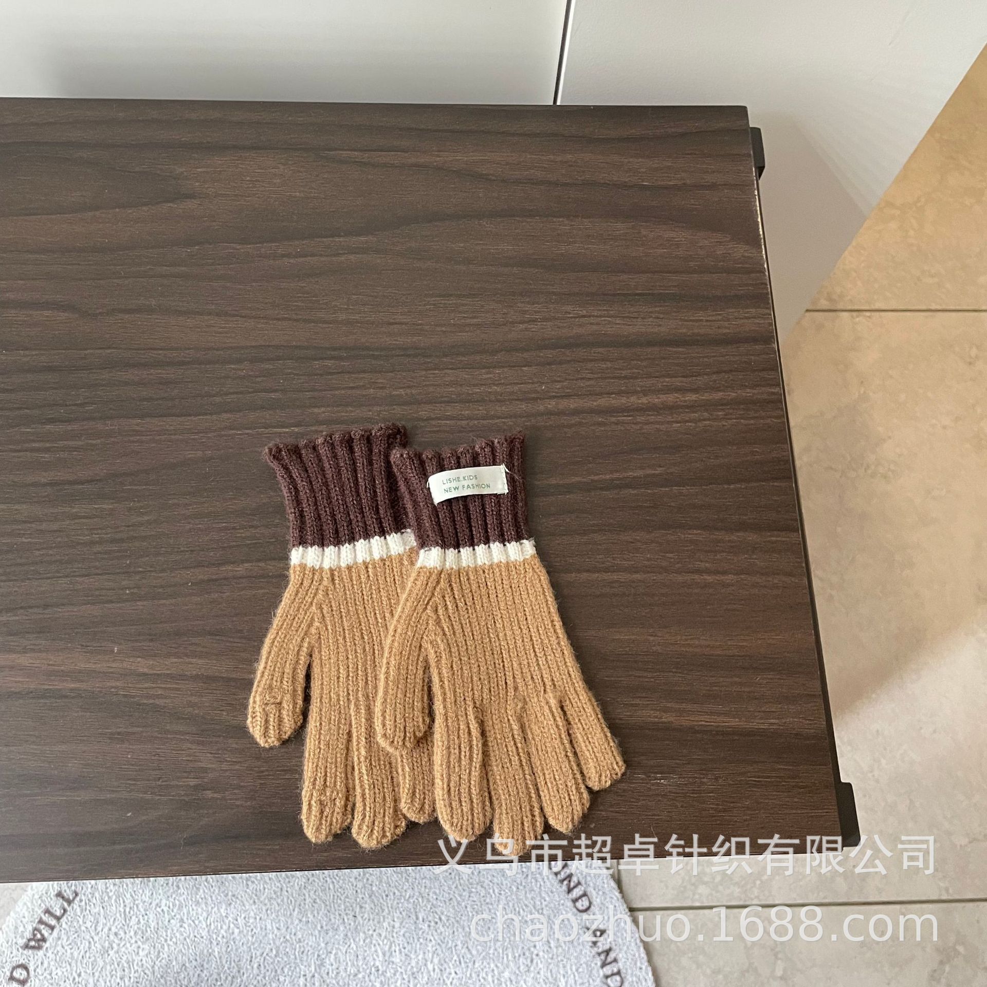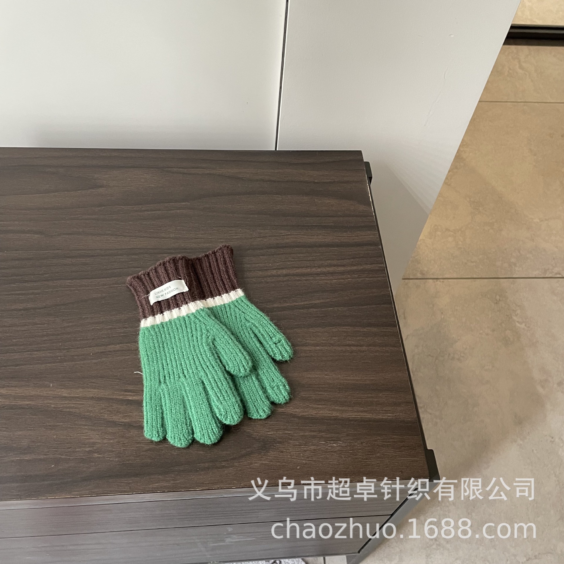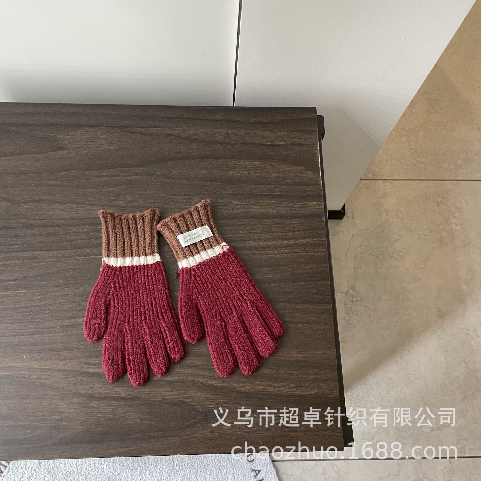 儿童拼色针织手套