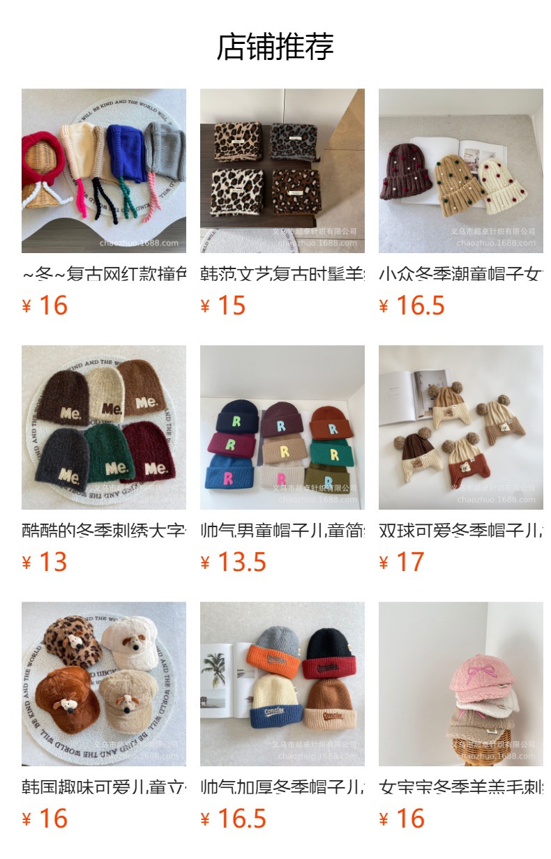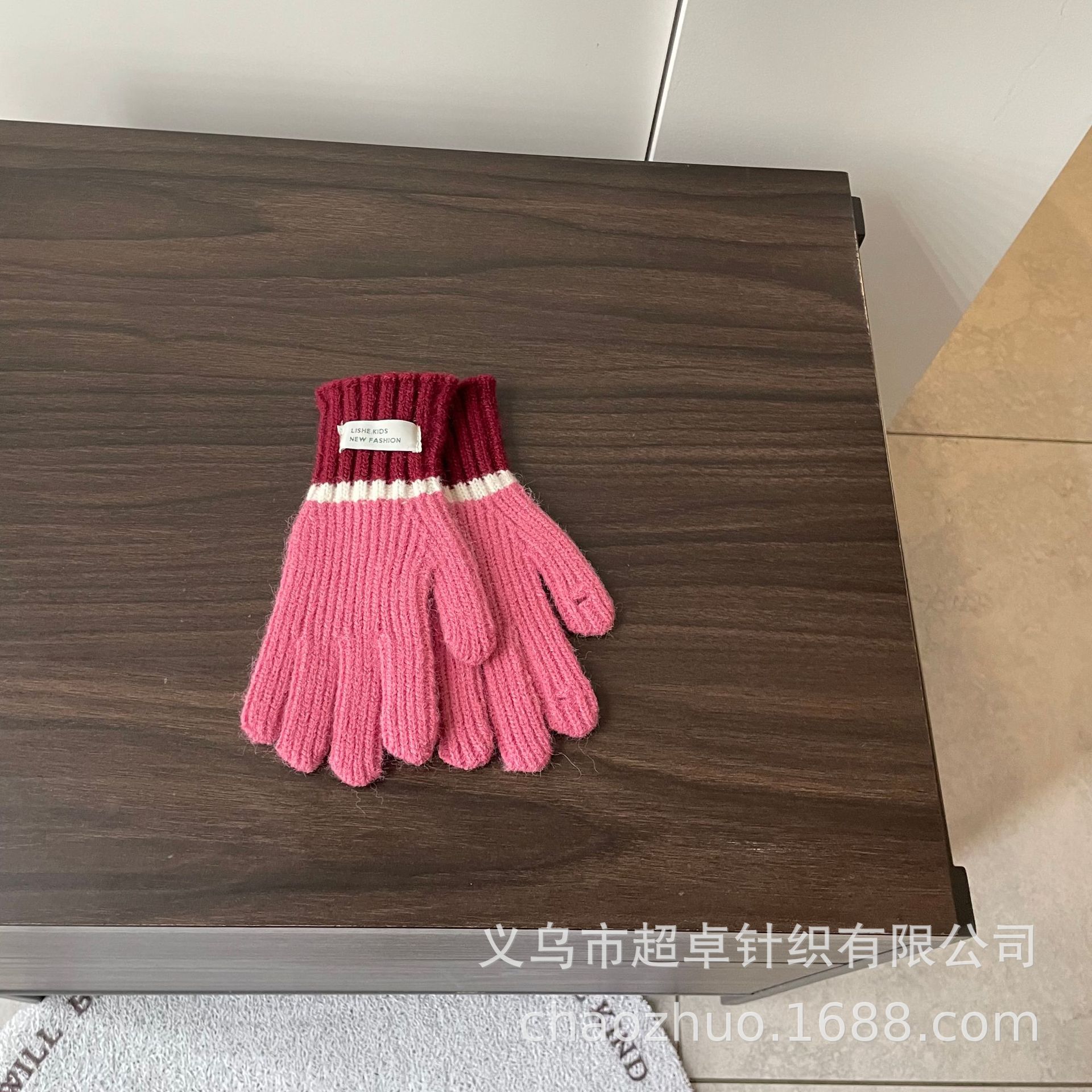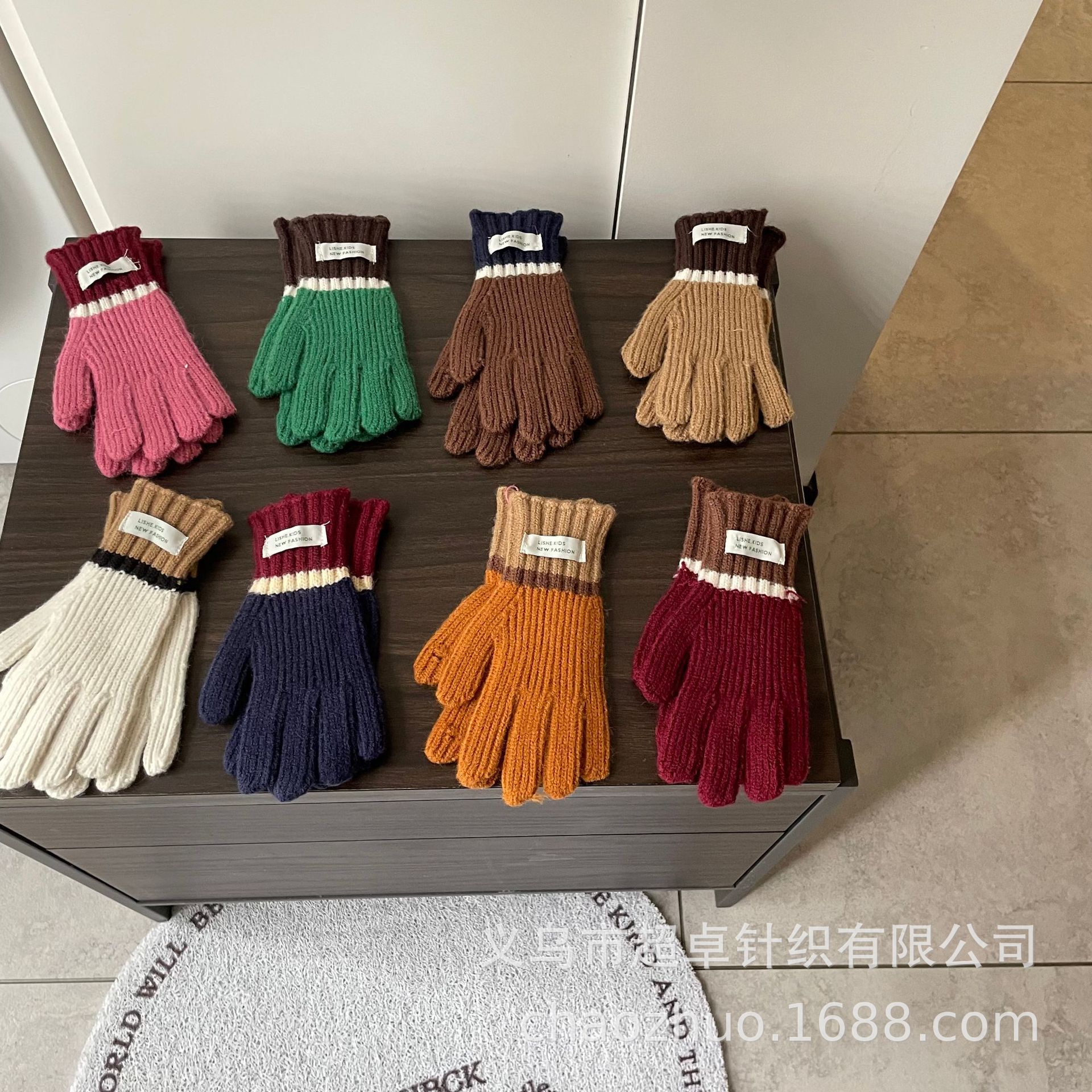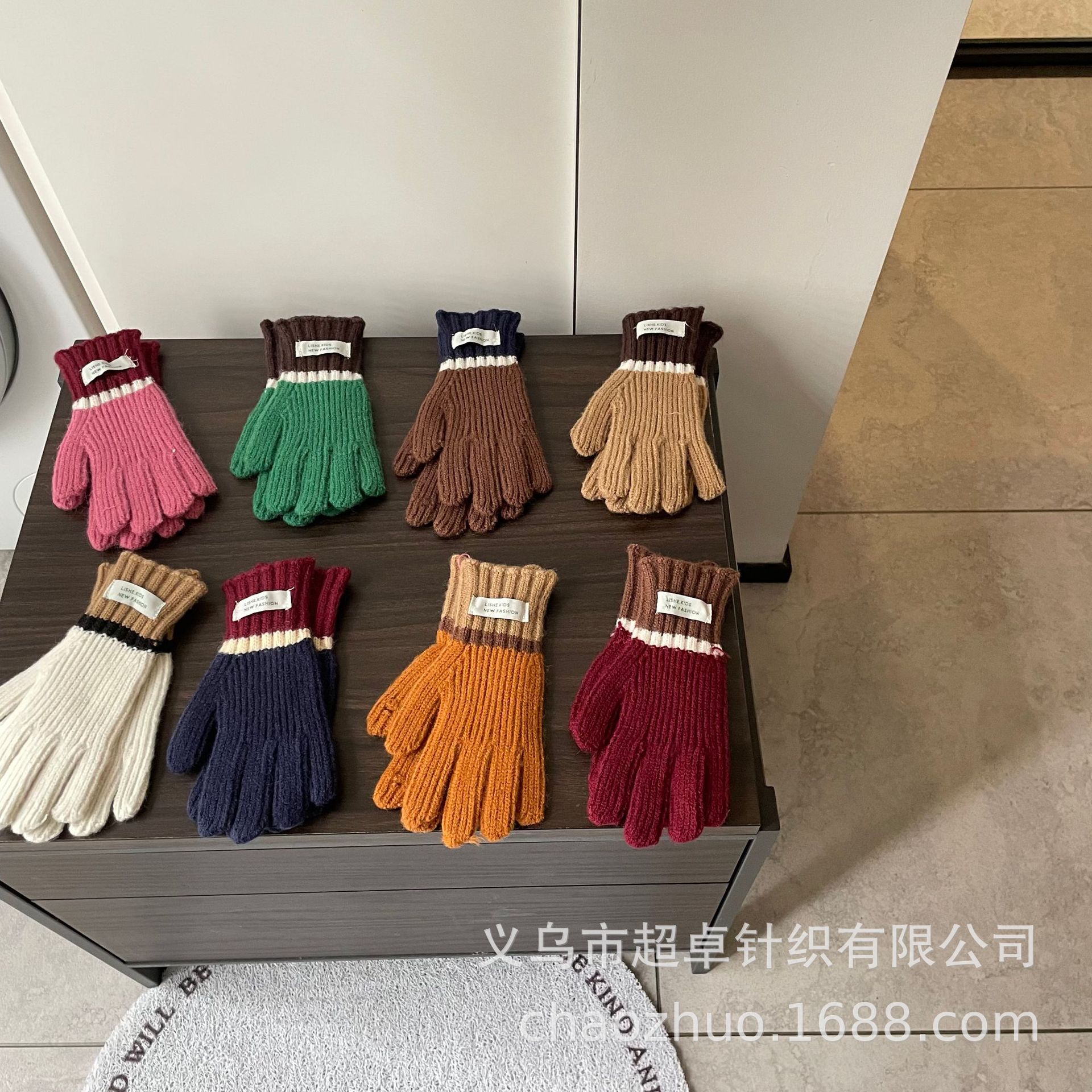 儿童拼色针织手套