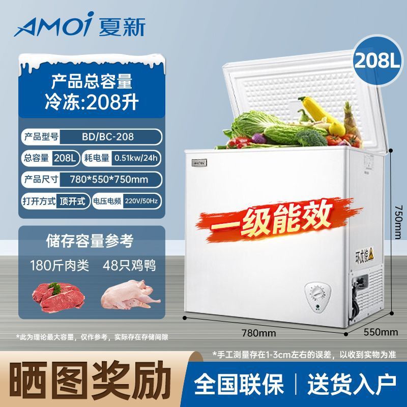 Xia Xin 냉동고 소형 가정용 완전 냉동 및 냉동 이중 목적 대용량 상업용 냉장고 신선한 보관 캐비닛 미니 절전스토어 가기