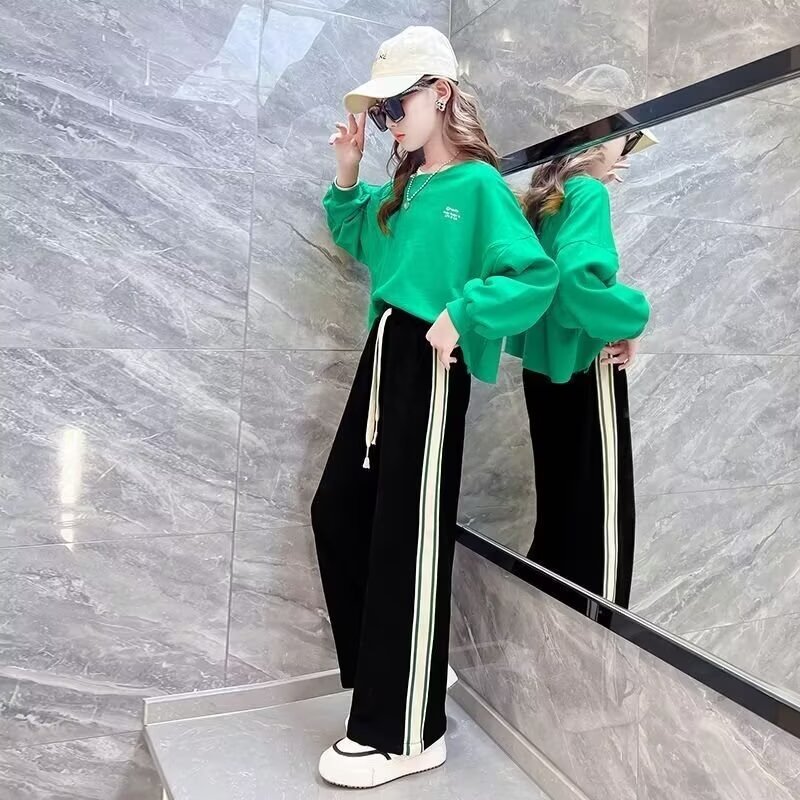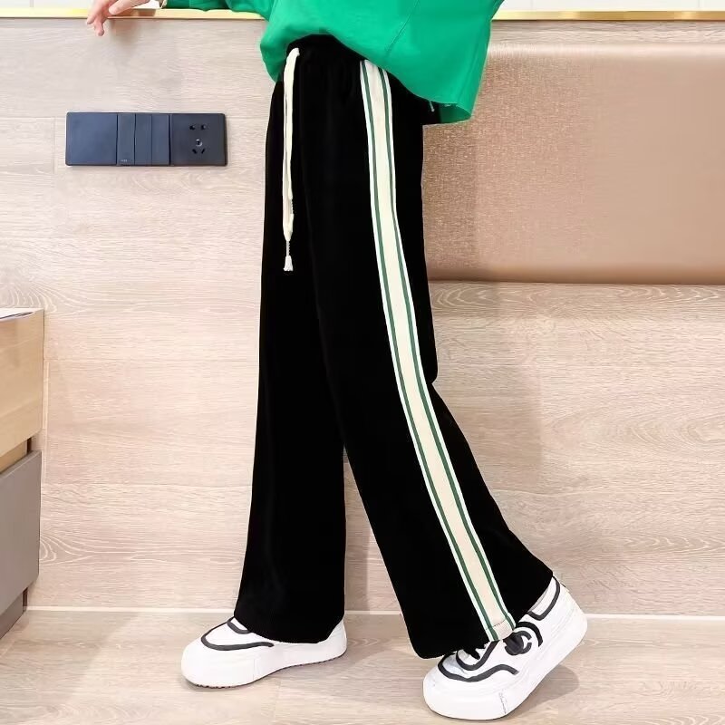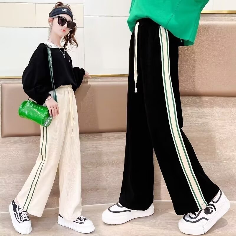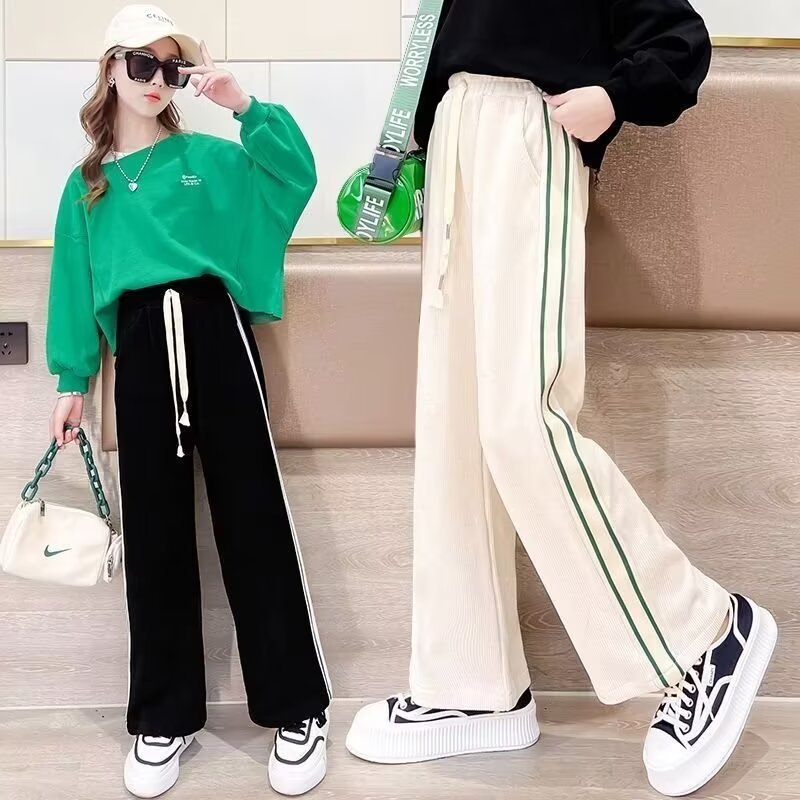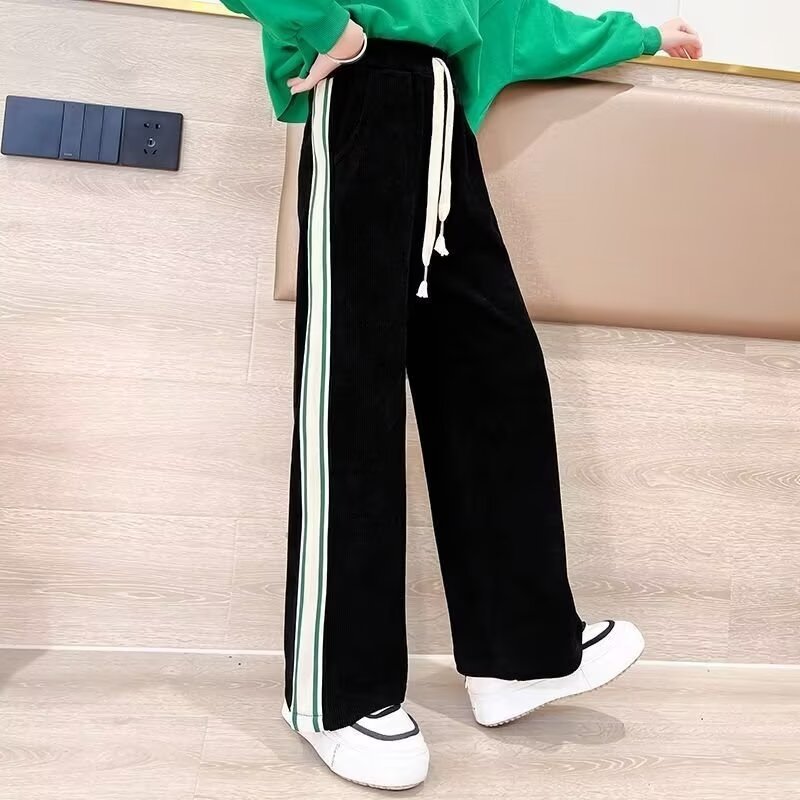 2025년 신상 여아 와이드 팬츠 봄 가을 아동 패션 코듀로이 바지 중대형 아동용 스타일리시 스트레이트 팬츠
