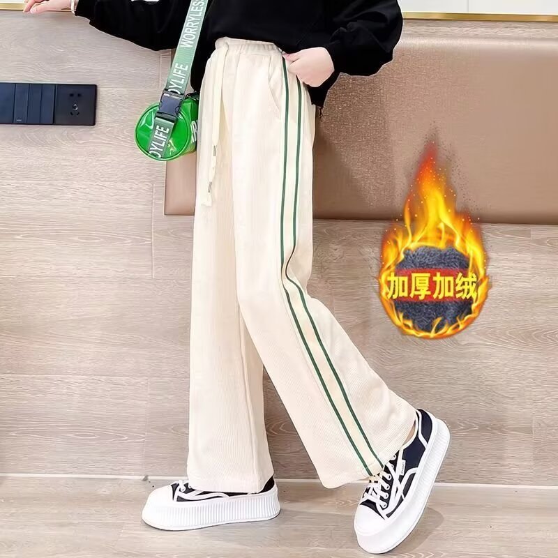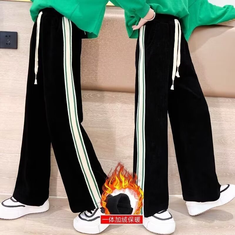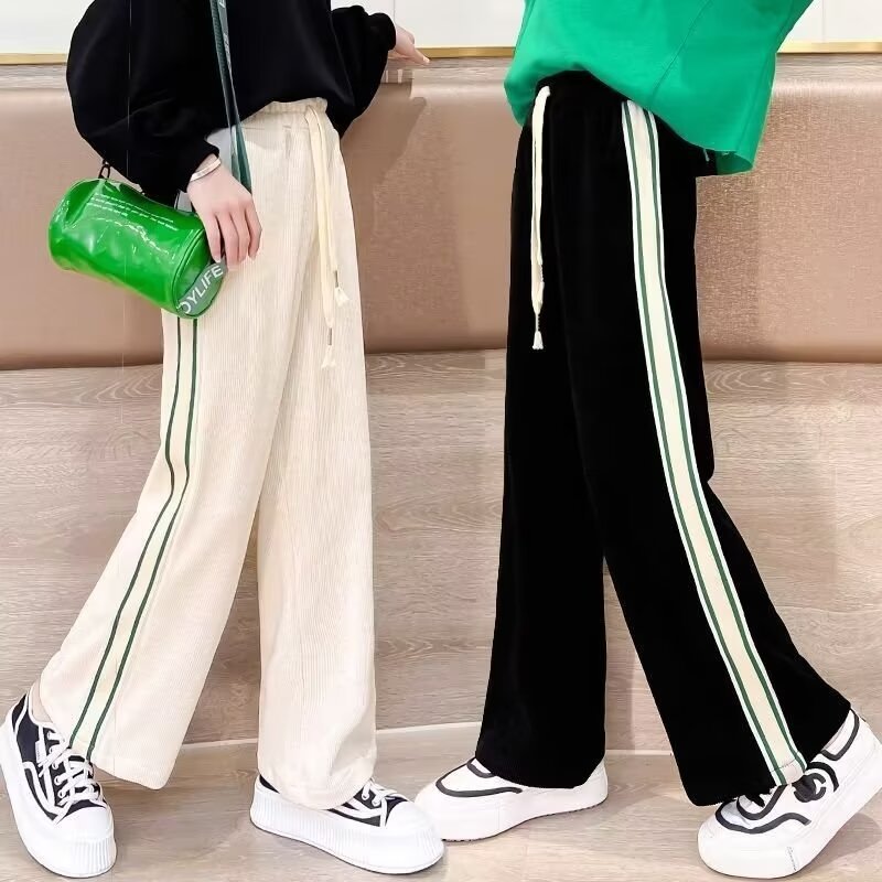 2025년 신상 여아 와이드 팬츠 봄 가을 아동 패션 코듀로이 바지 중대형 아동용 스타일리시 스트레이트 팬츠스토어 가기