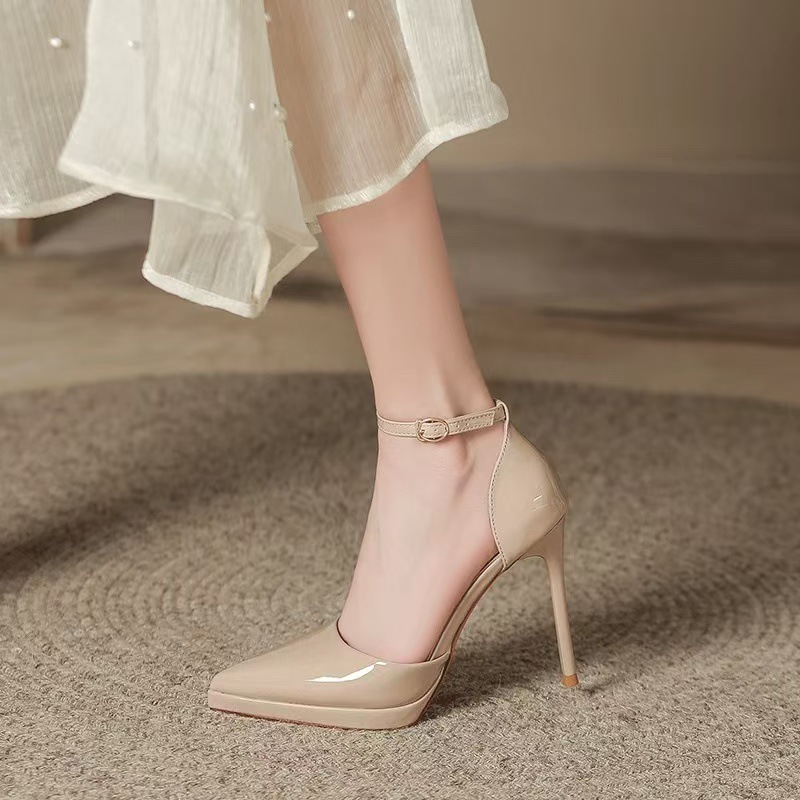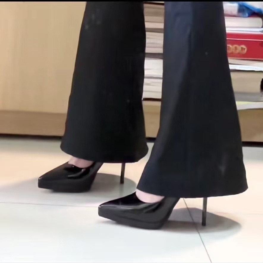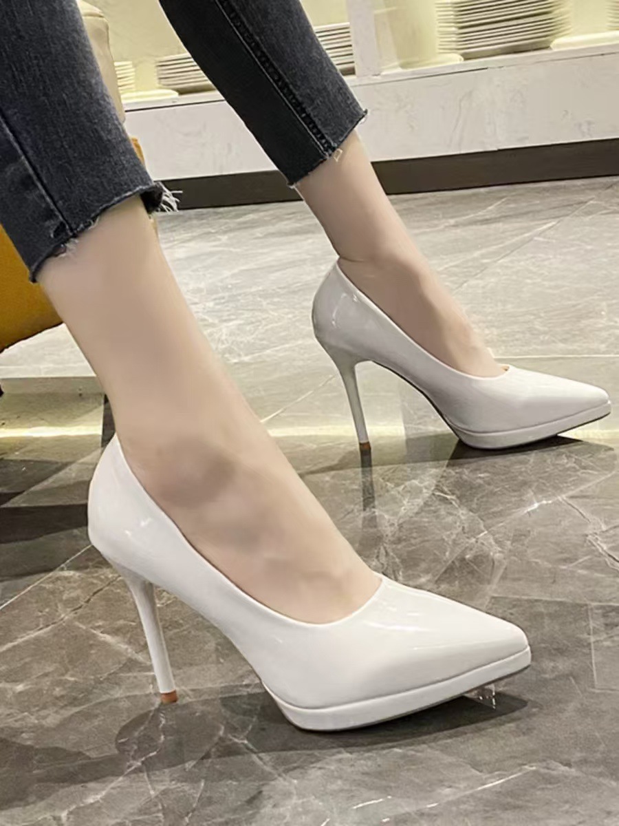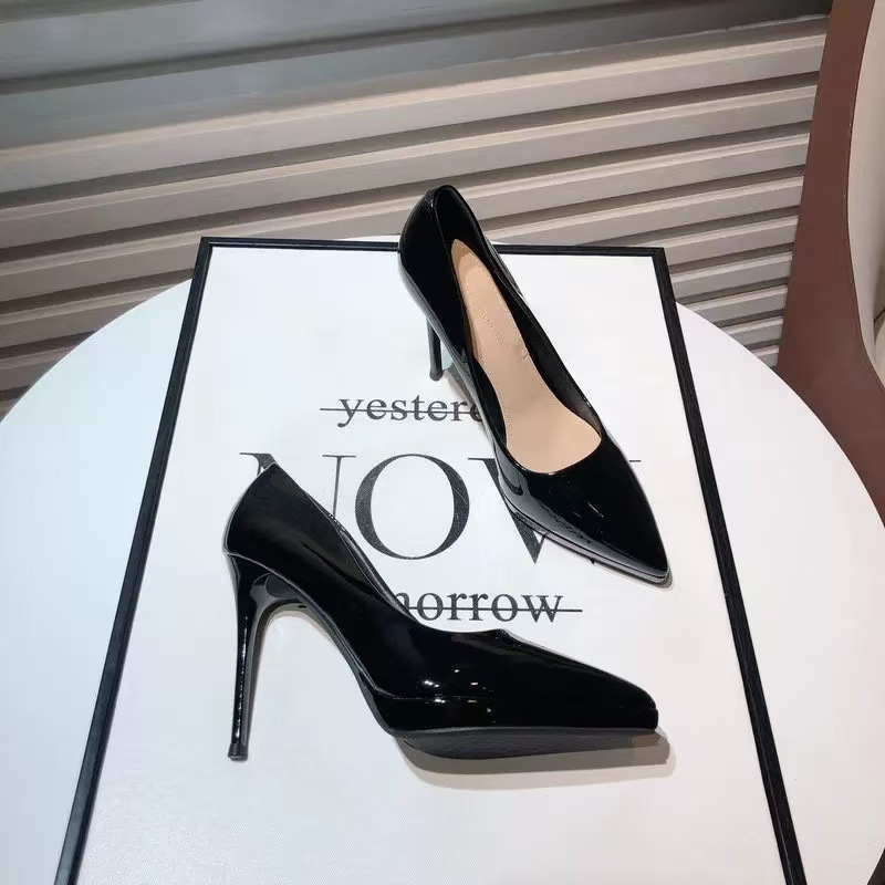 여성을위한 대형 부드러운 가죽 하이힐 2025 새로운 특허 가죽 뾰족한 섹시한 스틸레토 신발 블랙 전문 작업 신발스토어 가기