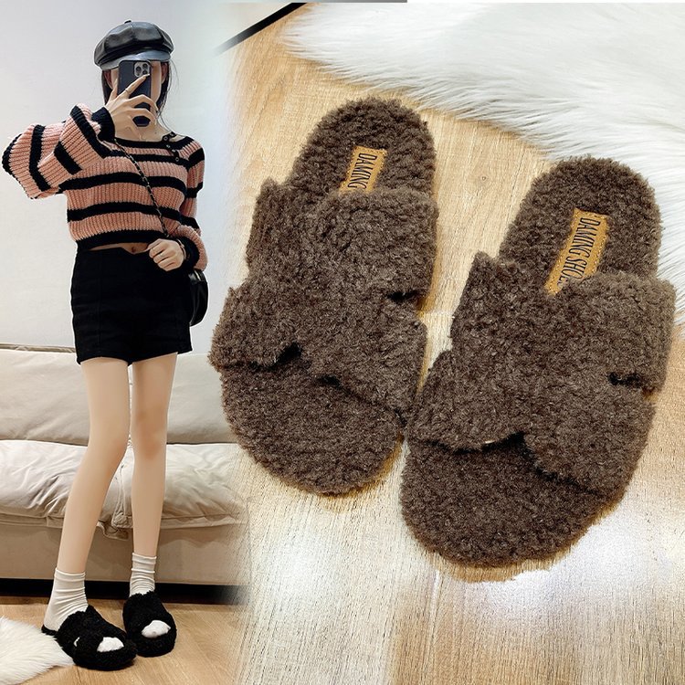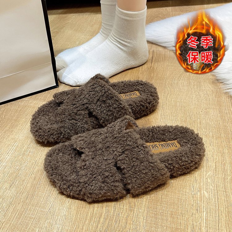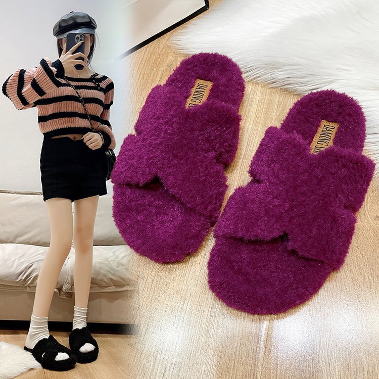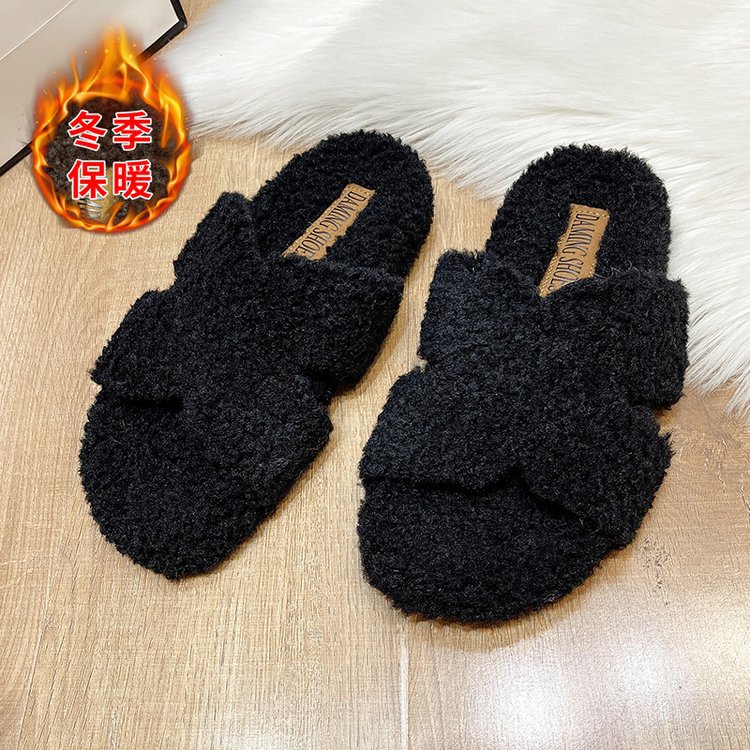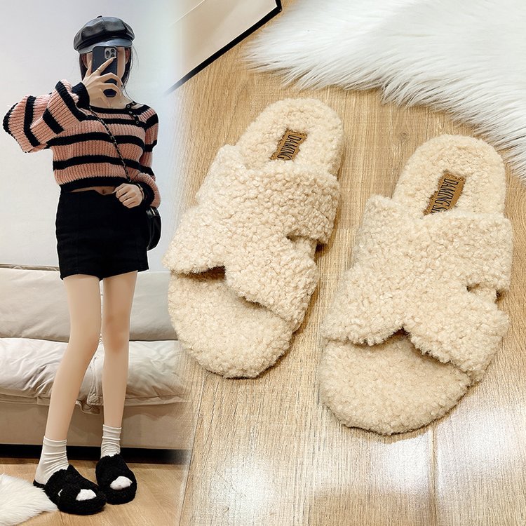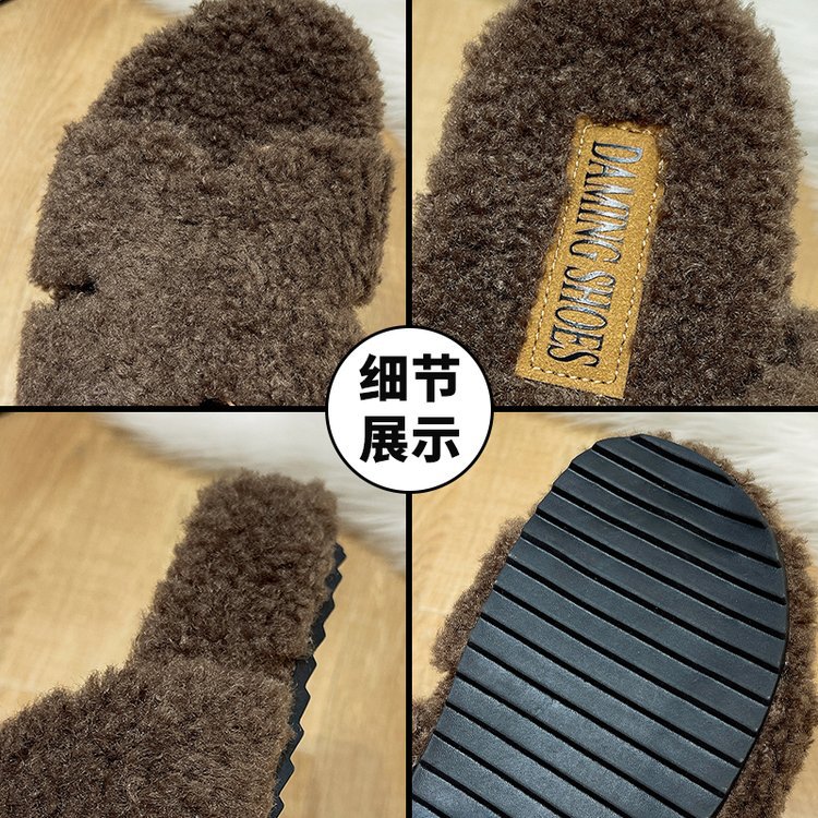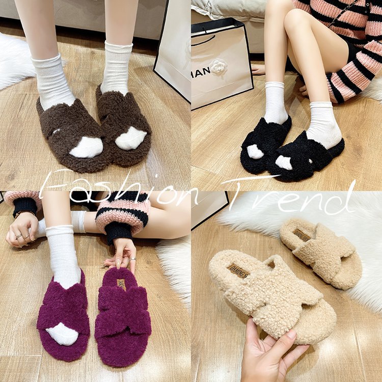 유행 짧은 벨벳 모피 슬리퍼 여성 외부 착용 2024 새로운 가을과 겨울 유행 플랫 홈 따뜻한 면 슬리퍼스토어 가기
