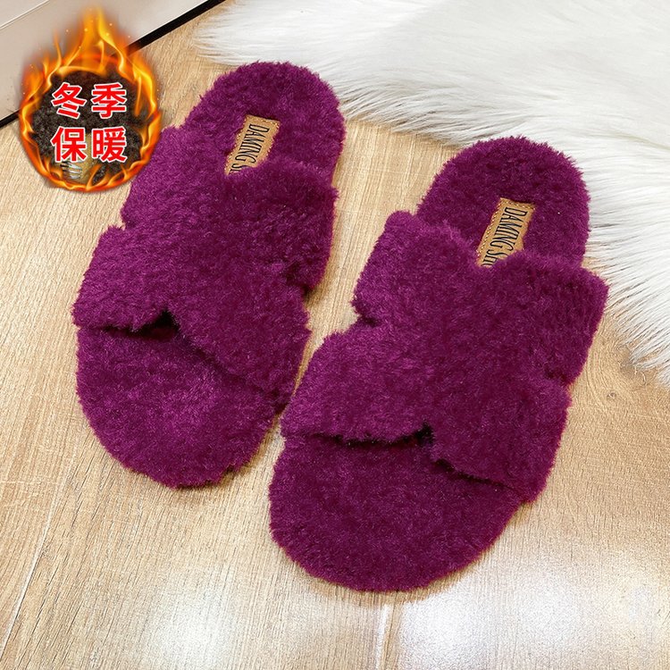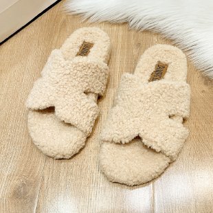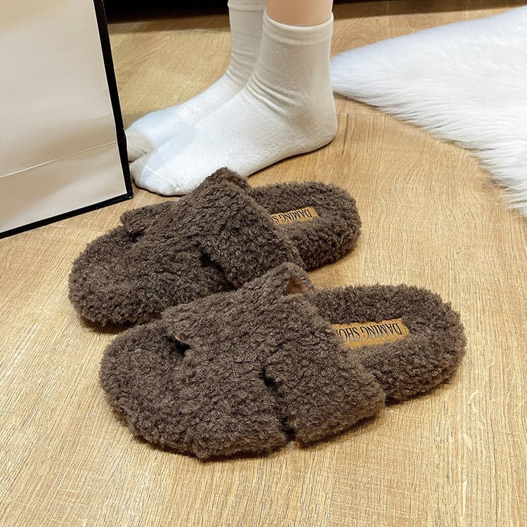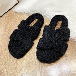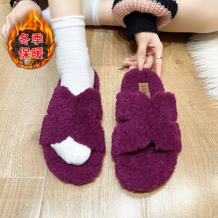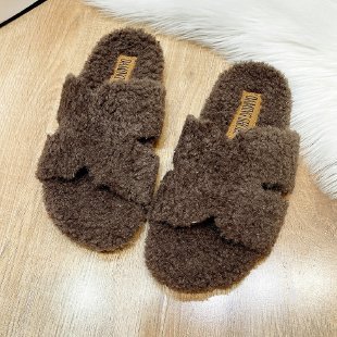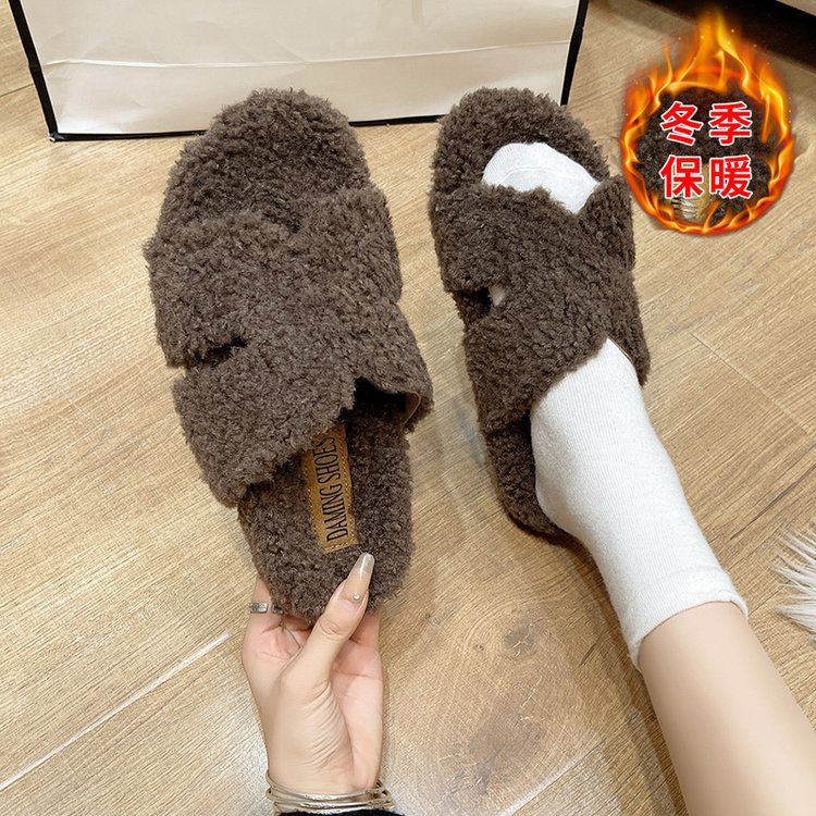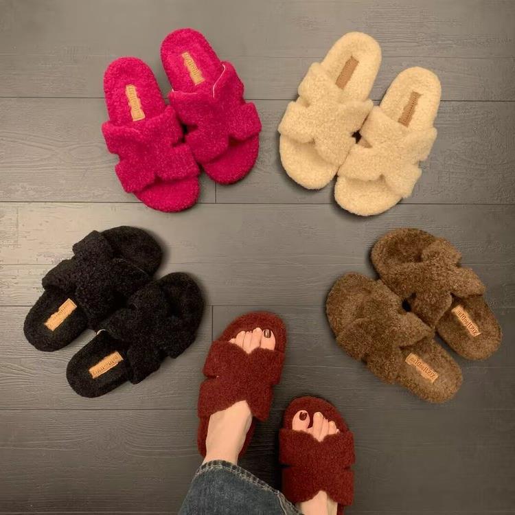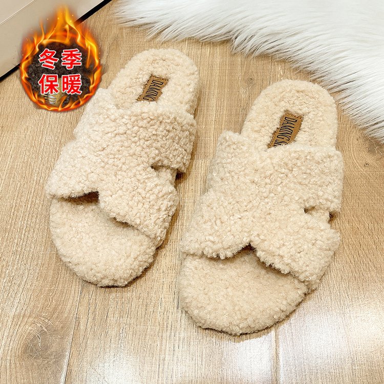 유행 짧은 벨벳 모피 슬리퍼 여성 외부 착용 2024 새로운 가을과 겨울 유행 플랫 홈 따뜻한 면 슬리퍼스토어 가기