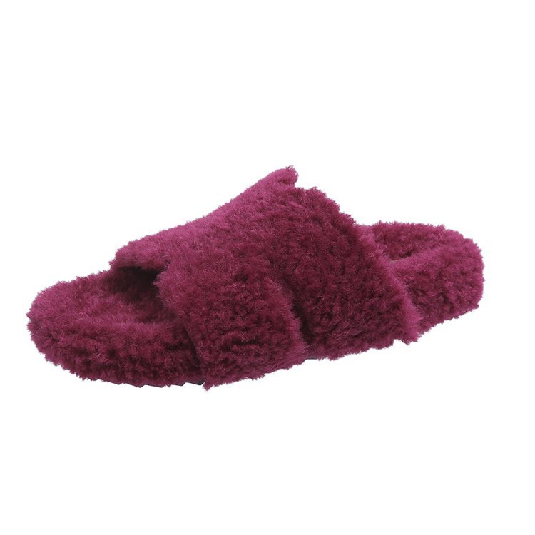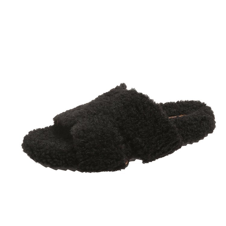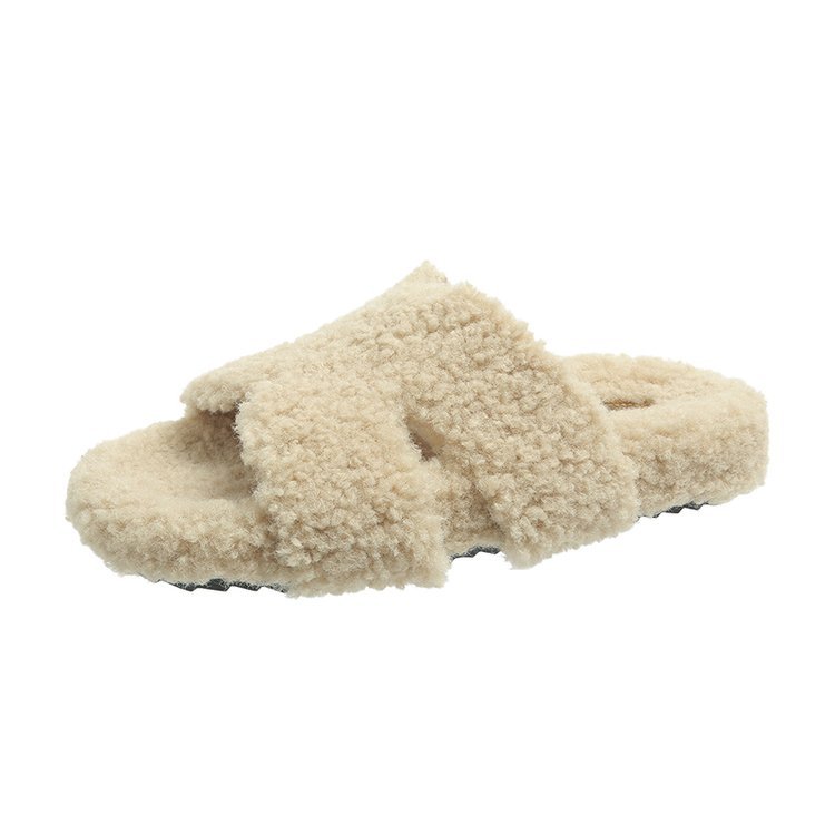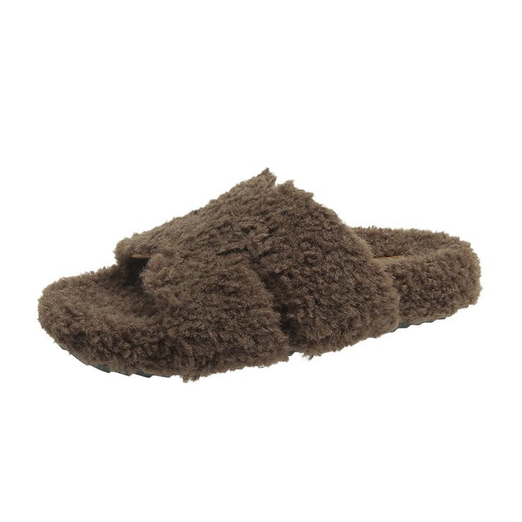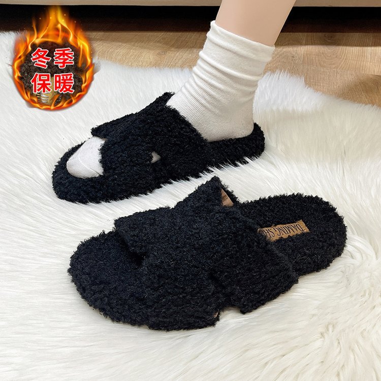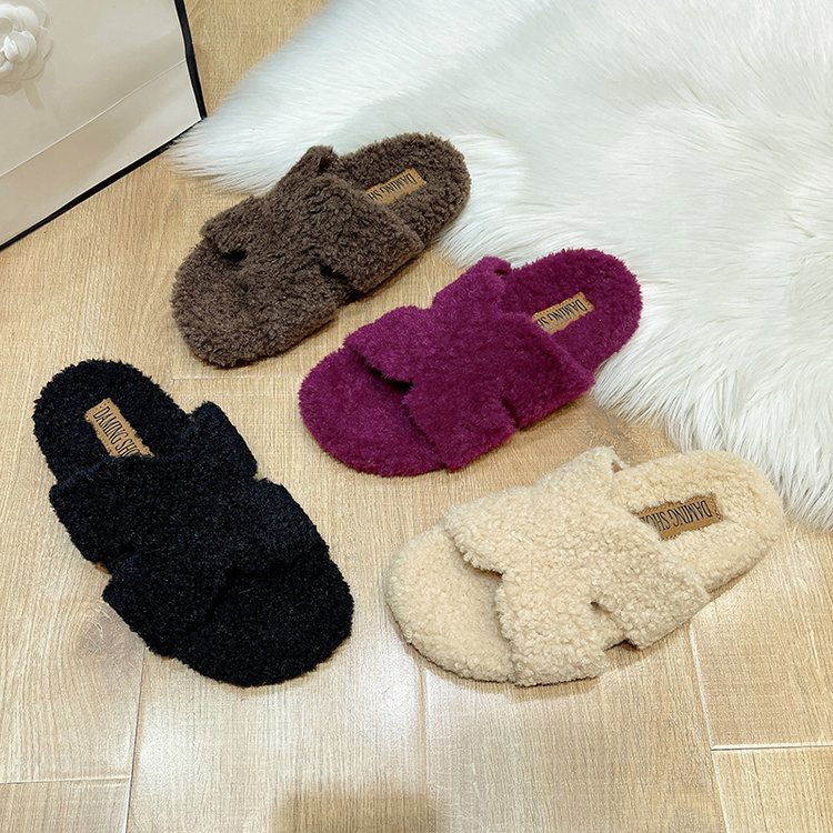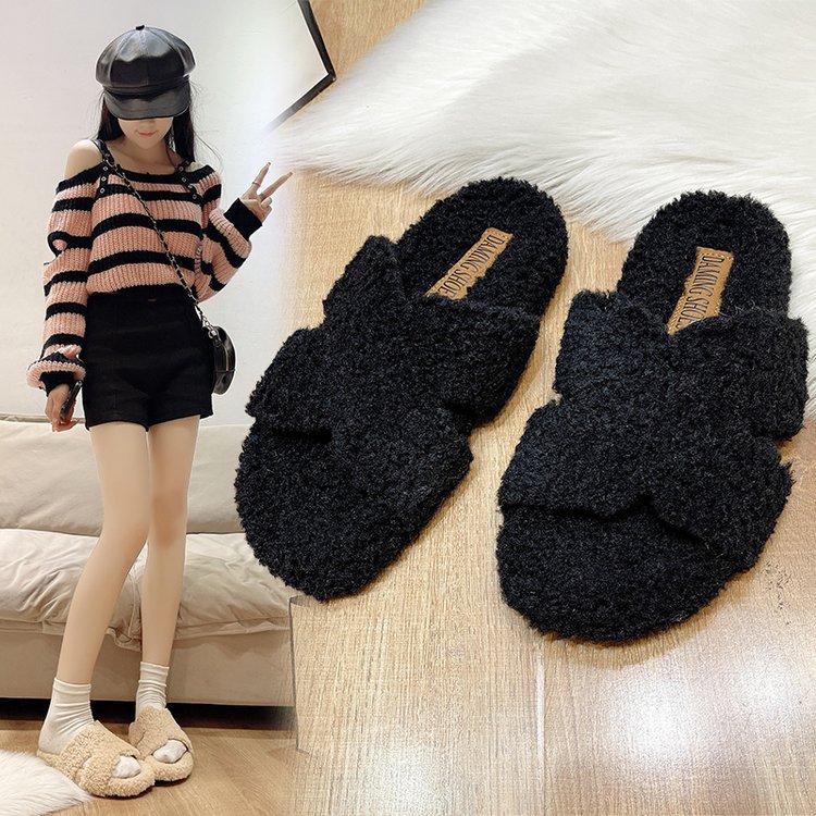 유행 짧은 벨벳 모피 슬리퍼 여성 외부 착용 2024 새로운 가을과 겨울 유행 플랫 홈 따뜻한 면 슬리퍼