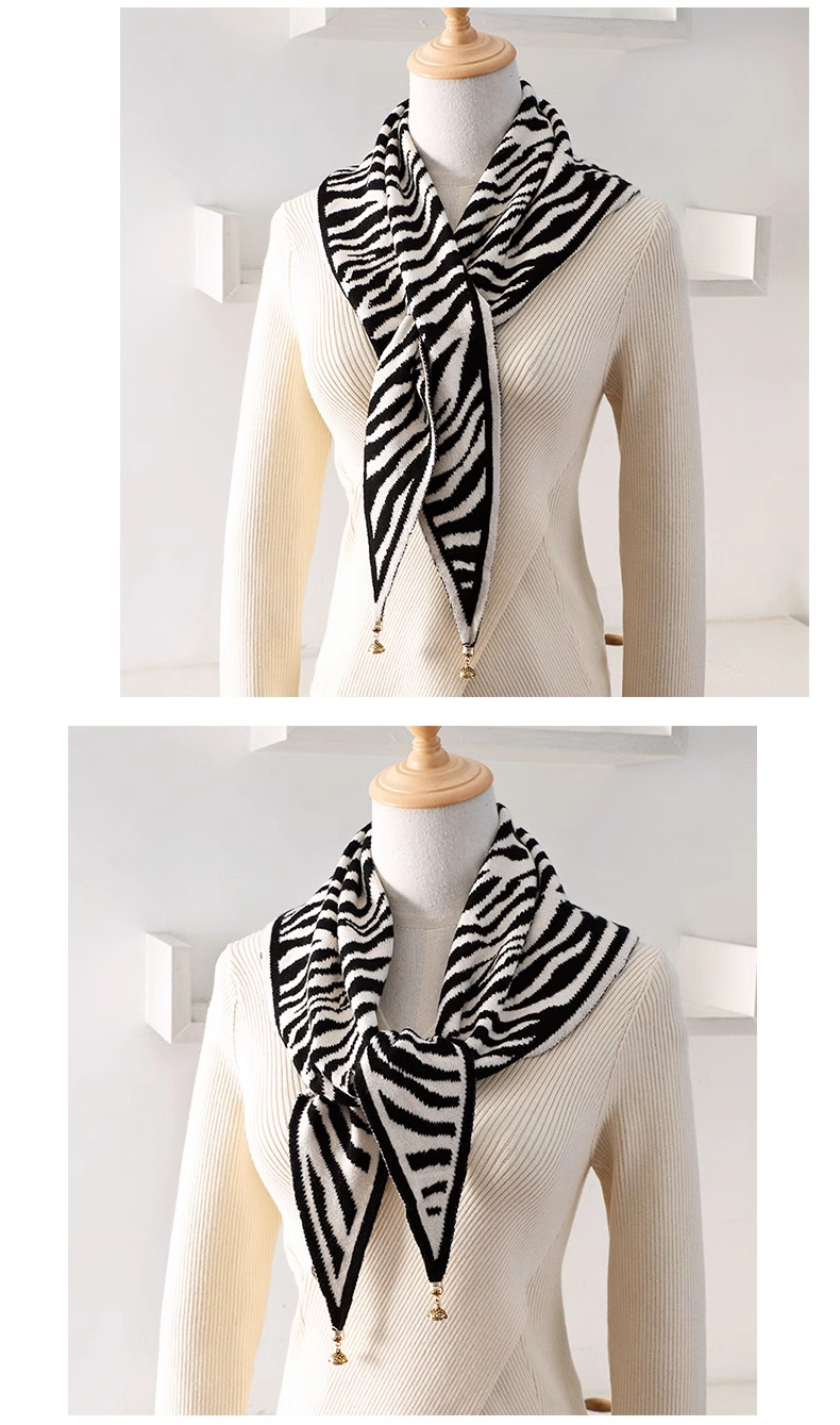 • 지브라 프린트 니트 메탈 버튼 트라이앵글 스카프