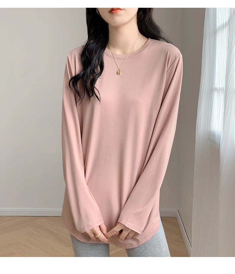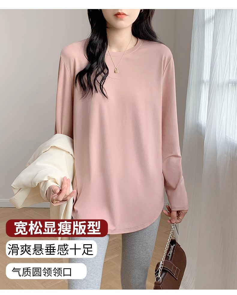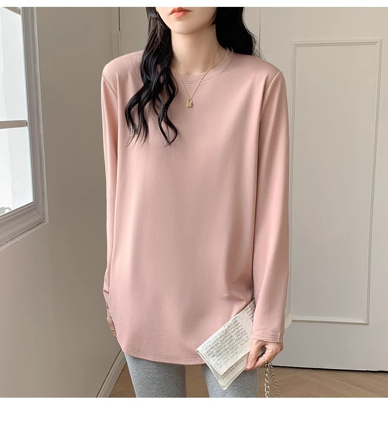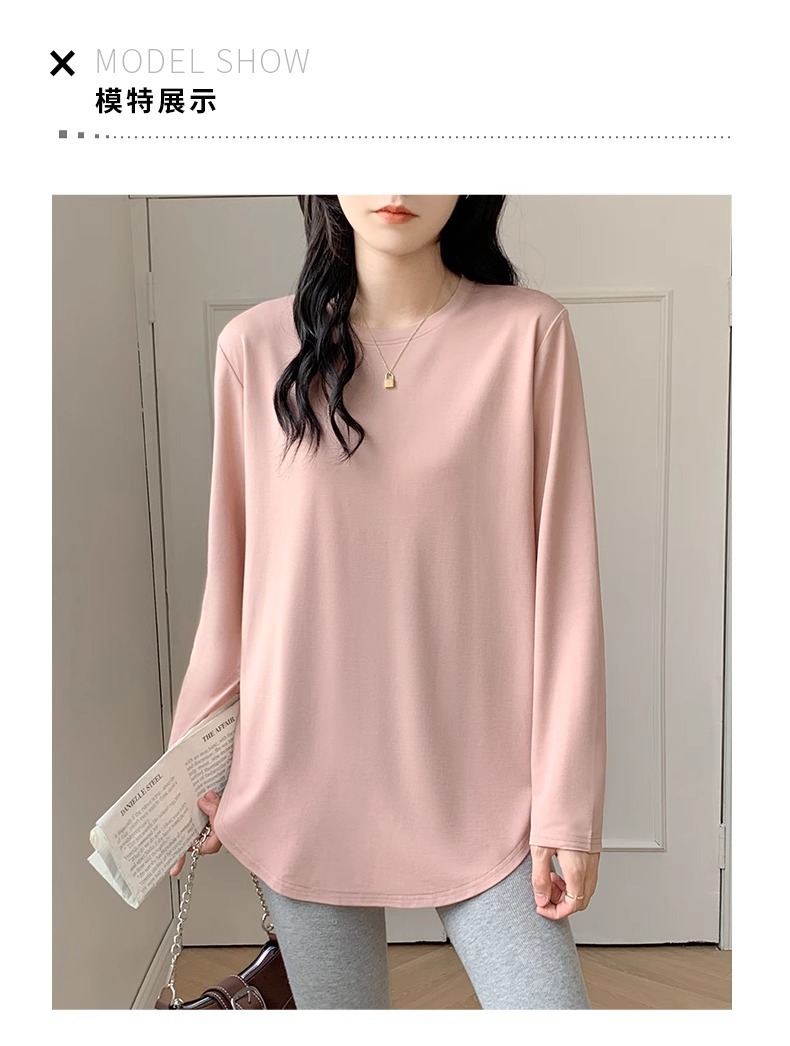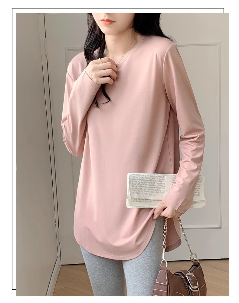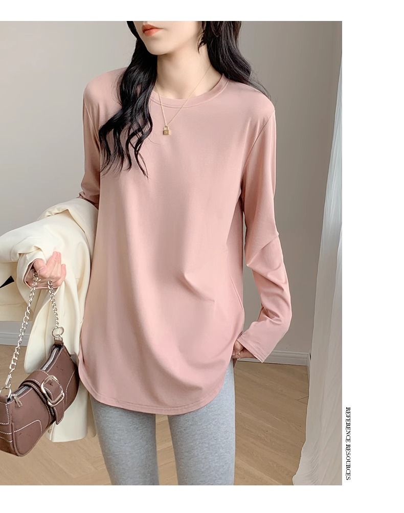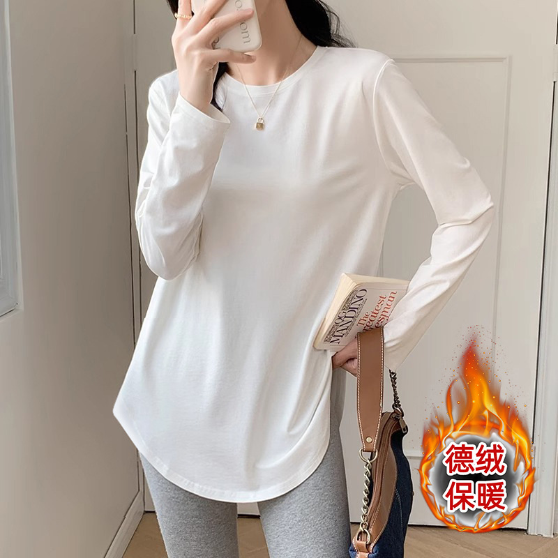 가을과 겨울 양면 벨벳 긴 서양 시대 감소 엉덩이 긴 소매 곡선 헴 티셔츠 따뜻한 최고 여성 의류스토어 가기