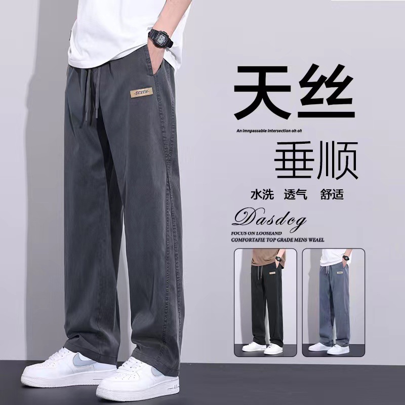 핫 텐셀 청바지 남자 2025 새로운 도착 패션 브랜드 와이드 레그 미국 스타일 느슨한 스트레이트 캐주얼 바지 여름 얇은스토어 가기